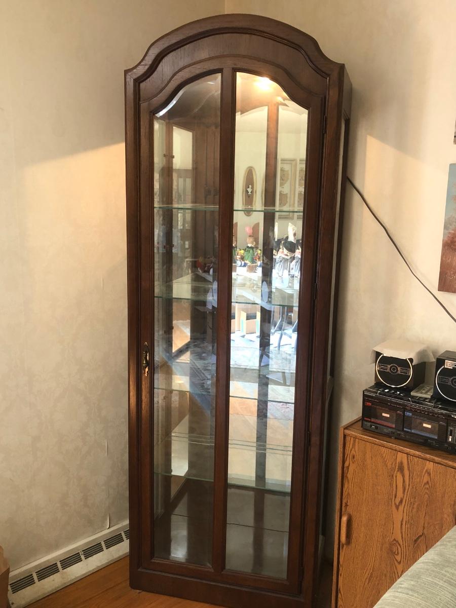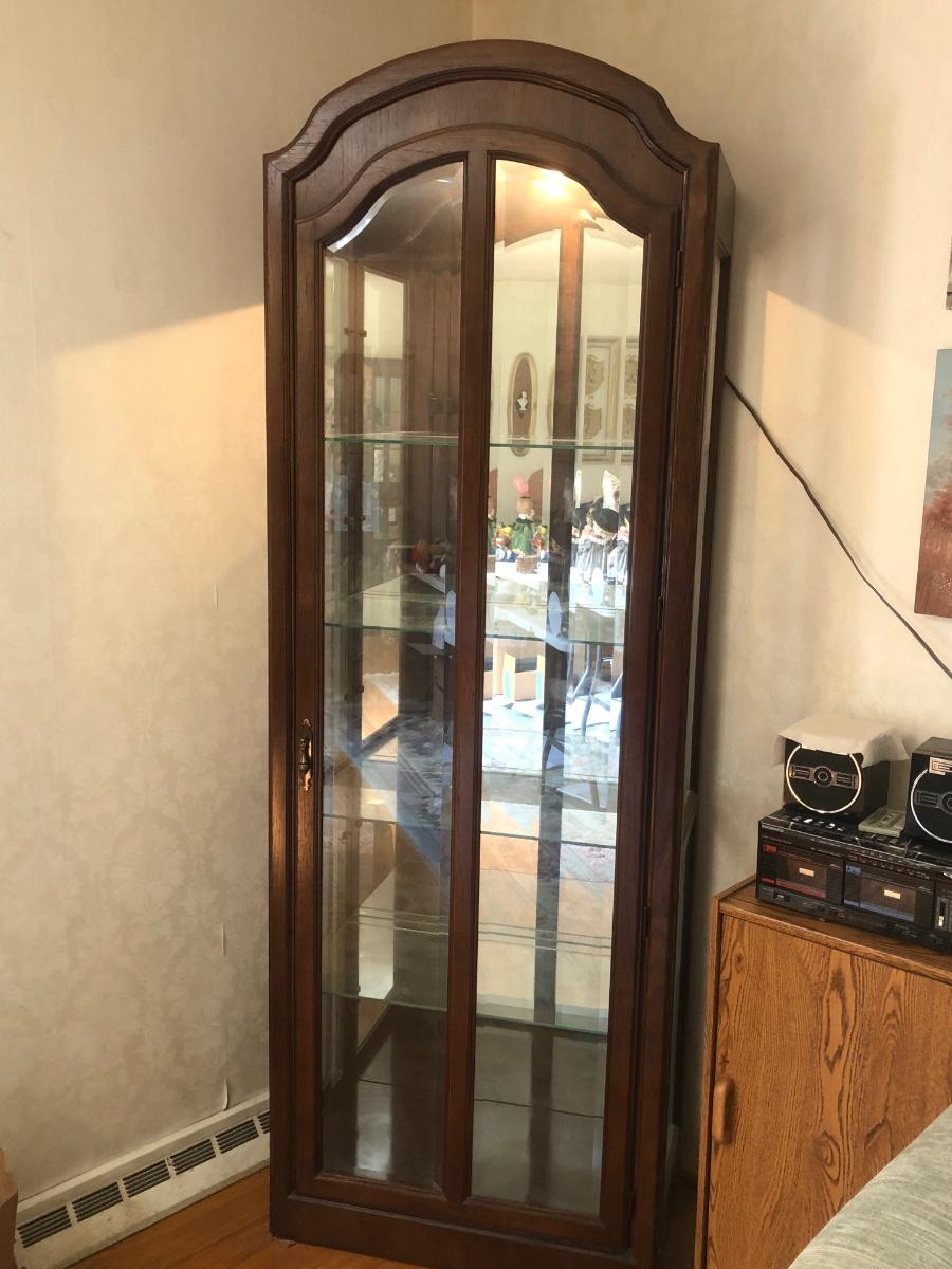 LOT 7M: Vintage Arch Top Four Glass Shelf Lighted Display Cabinet
