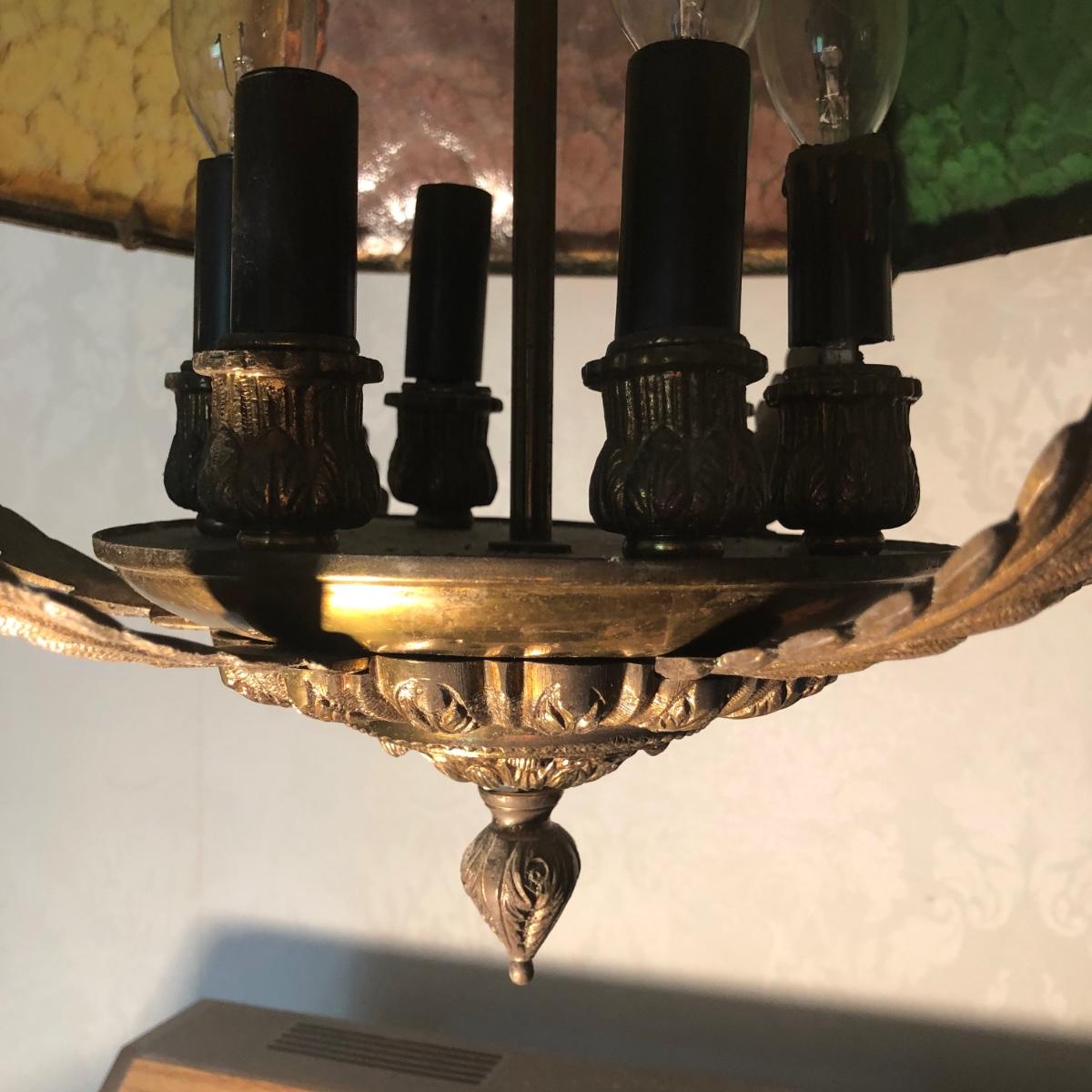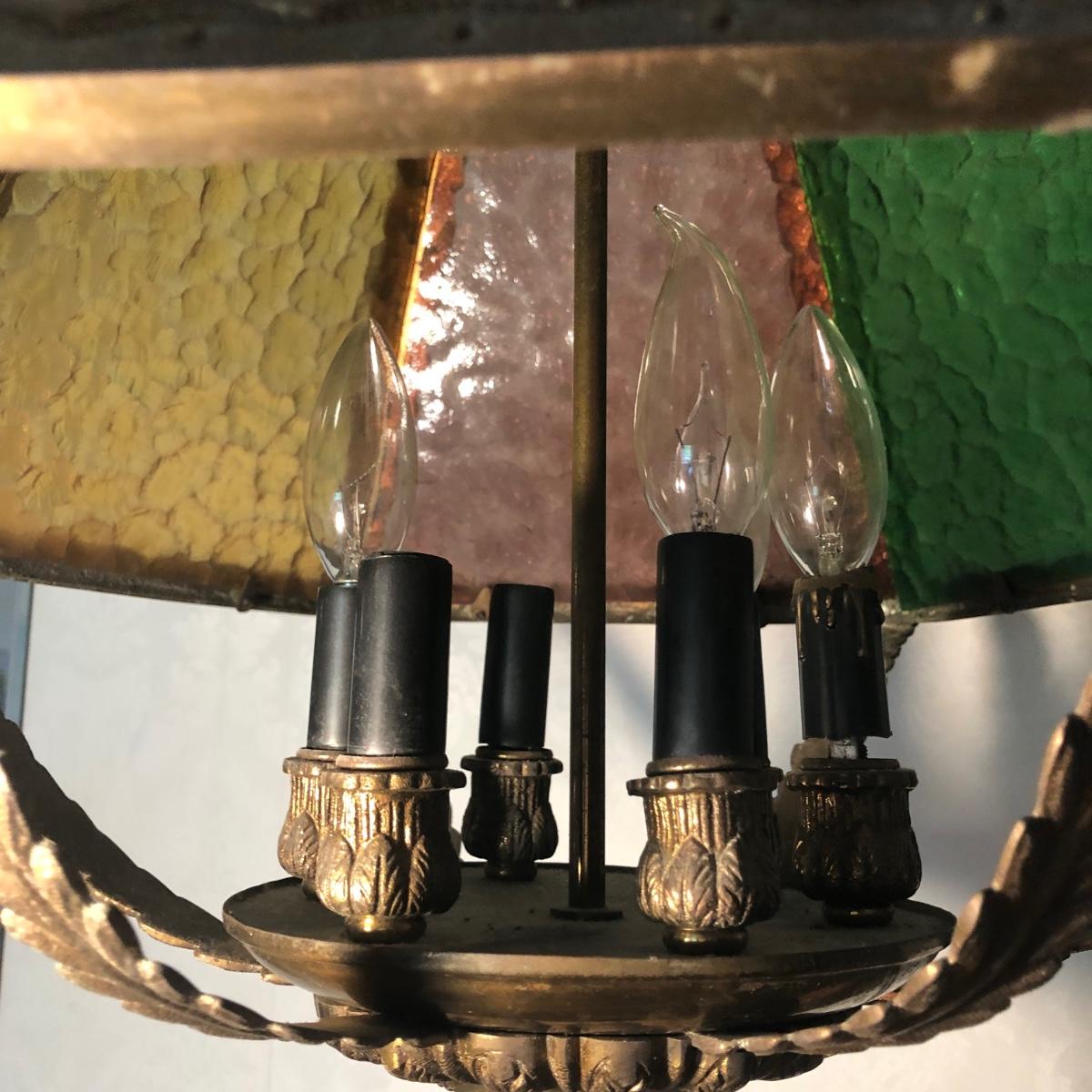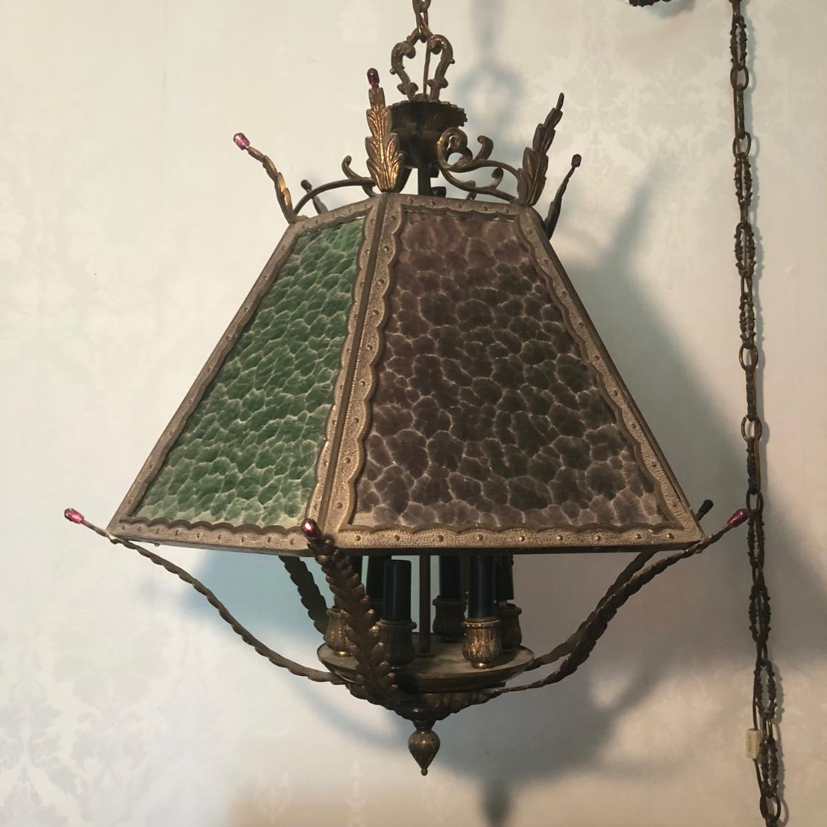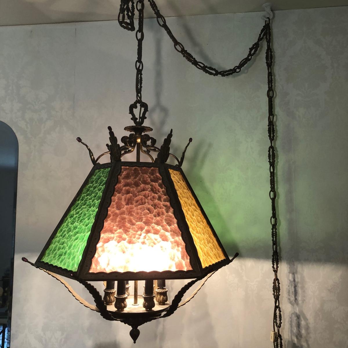 Lamp is in working order. Measures 20W x 25H, not including the chain.