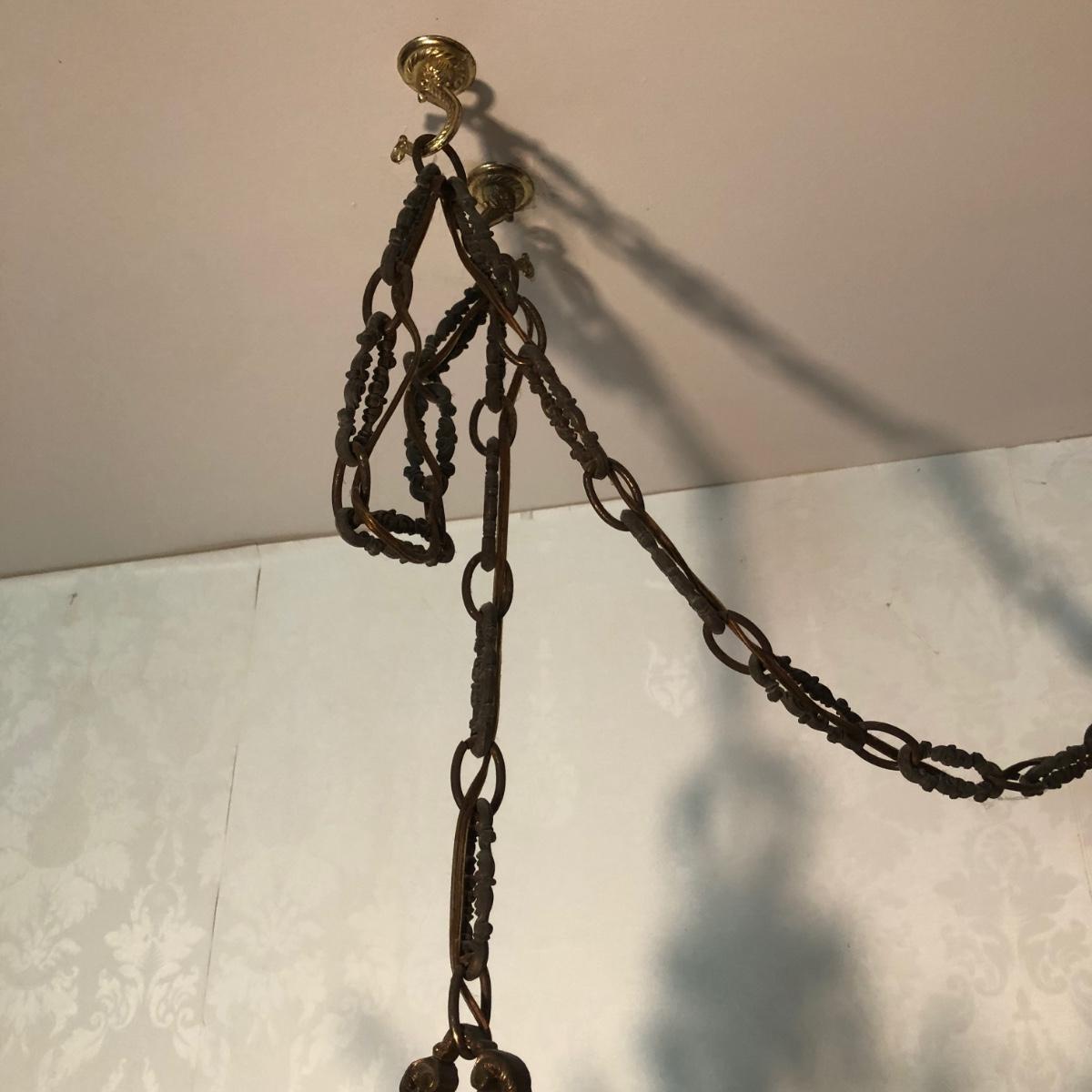 LOT 10M: Vintage Gothic Iron Hanging Lamp