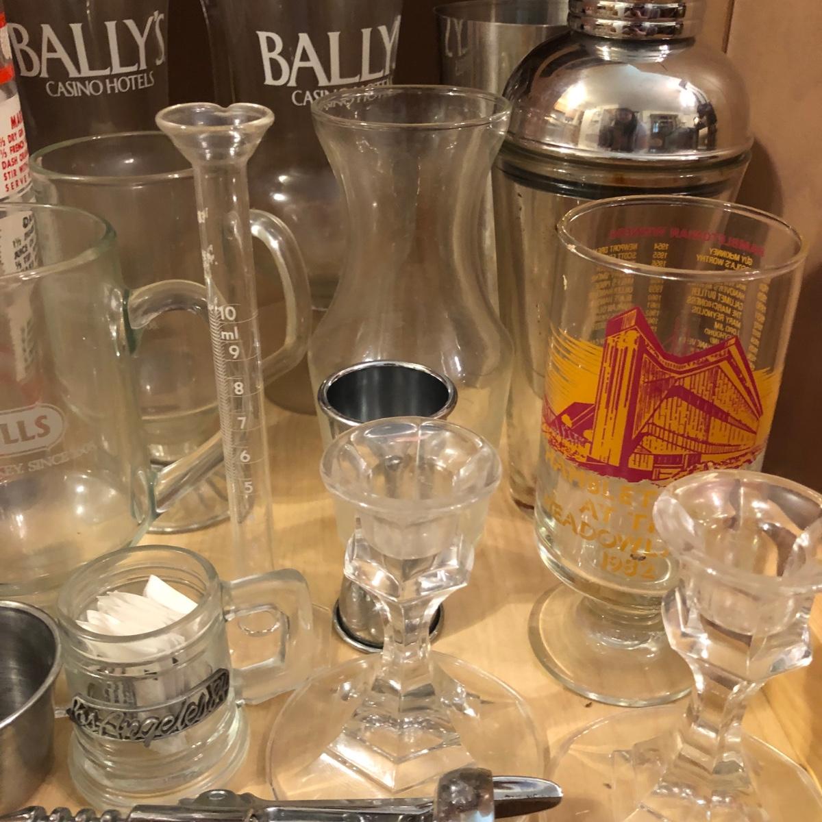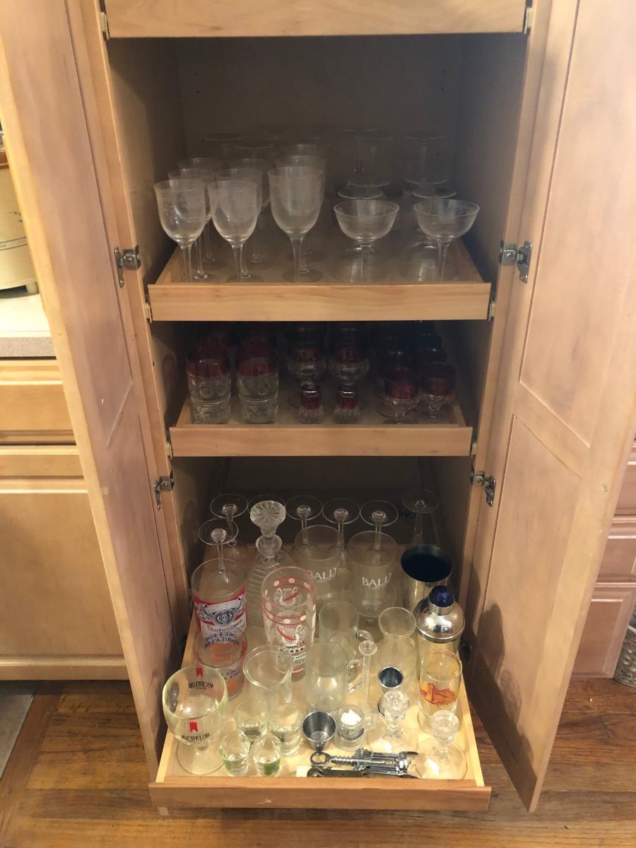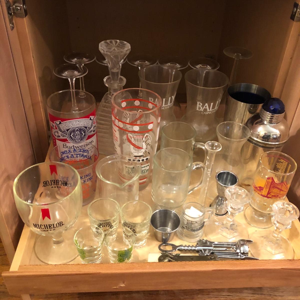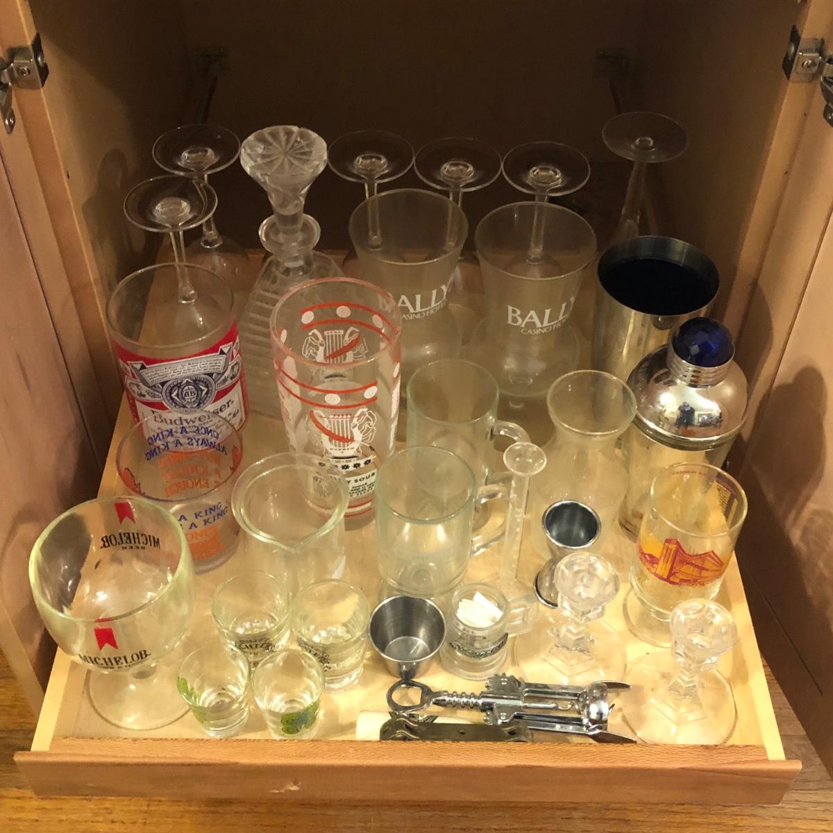 LOT 19M: Ruby Rimmed Glassware, Etched Stemware, Bar Glasses & More