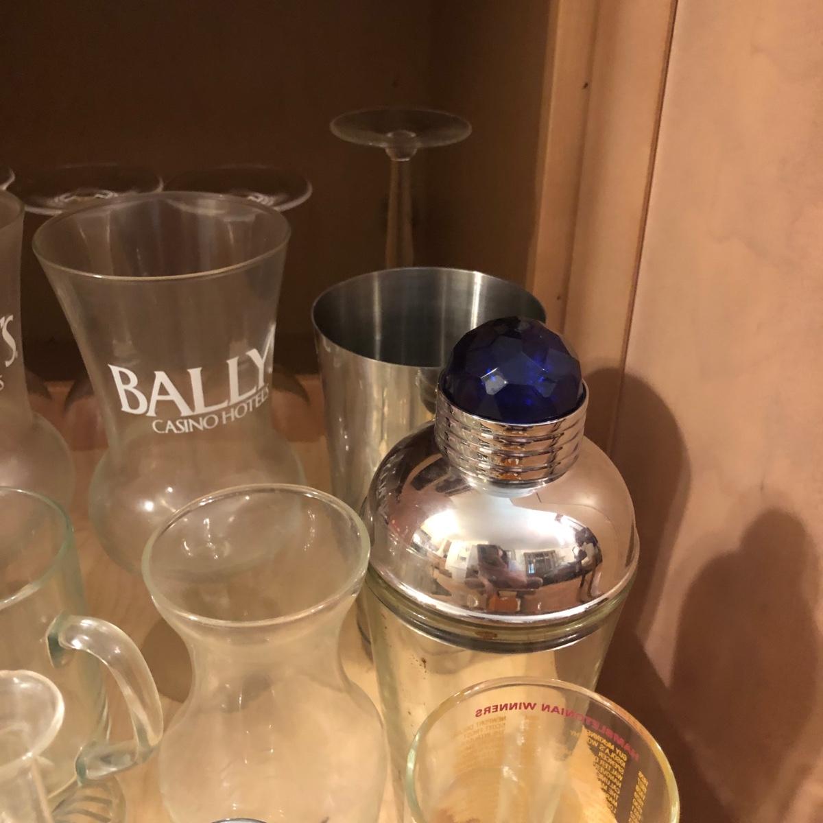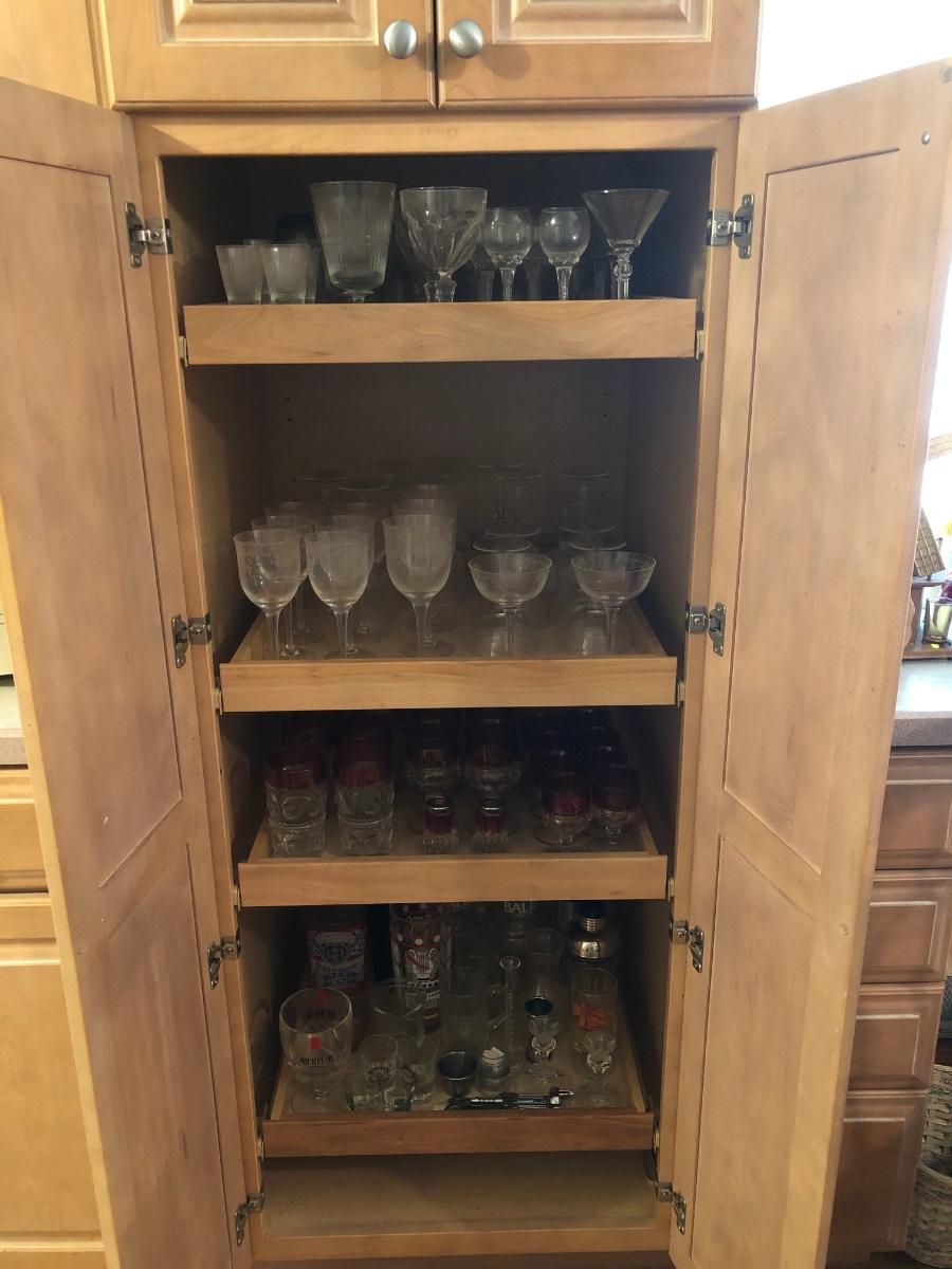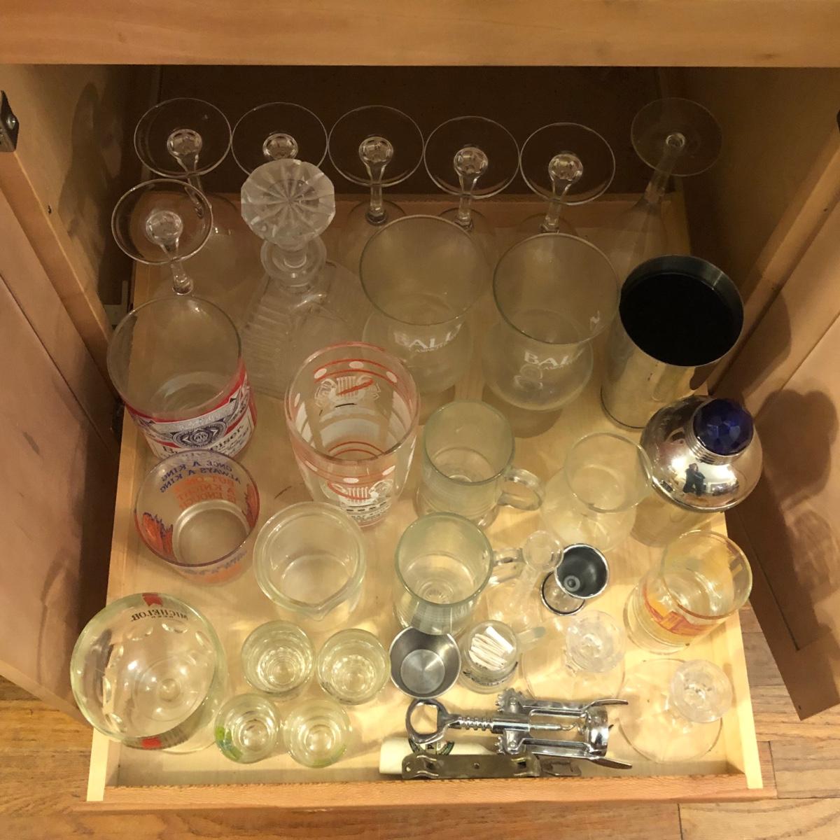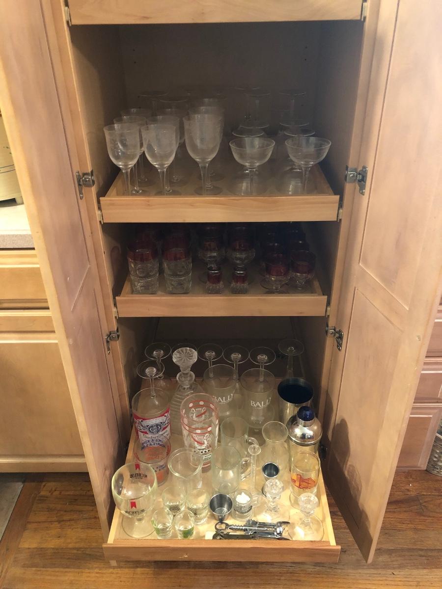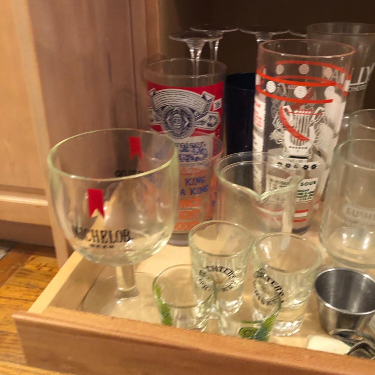 LOT 19M: Ruby Rimmed Glassware, Etched Stemware, Bar Glasses & More