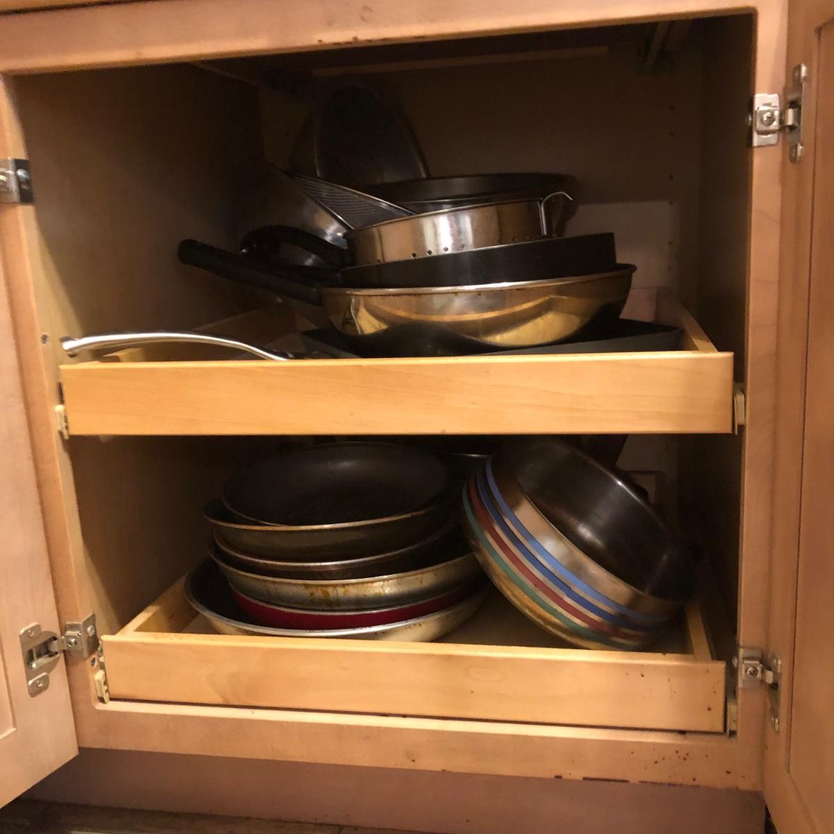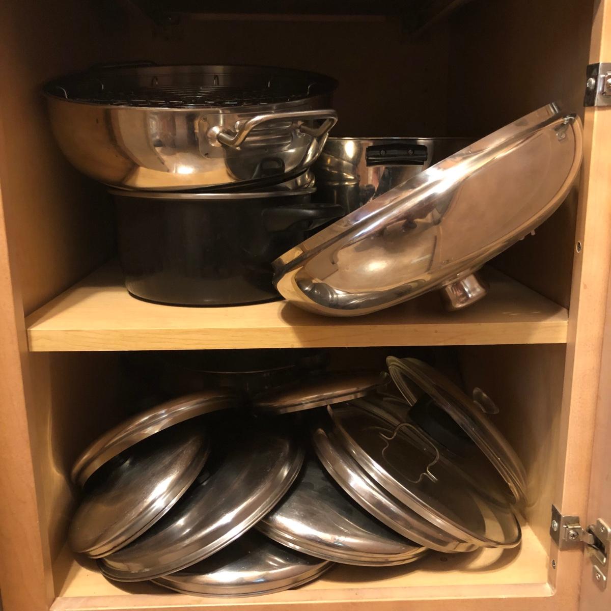 LOT 20M: Pots, Pans, & Lids: Contents of 2 Cabinets