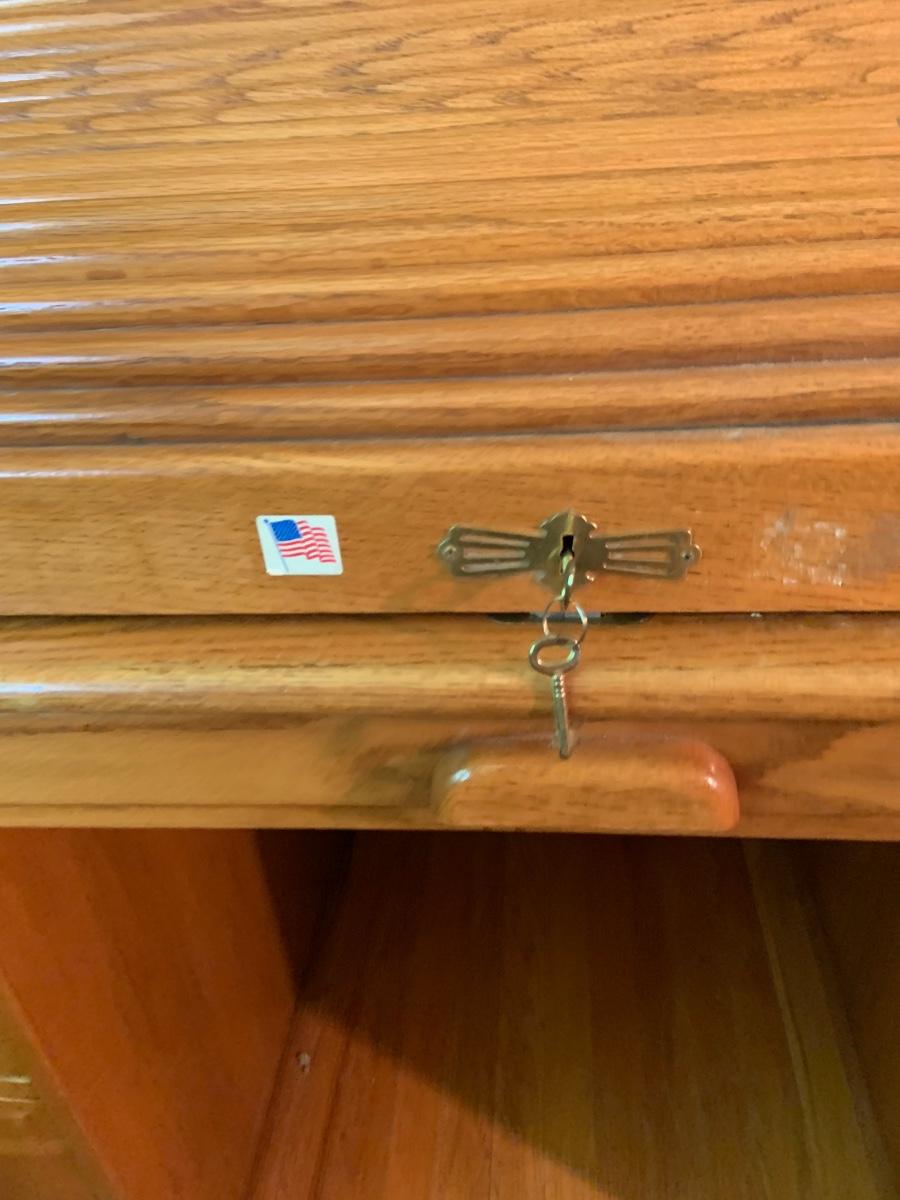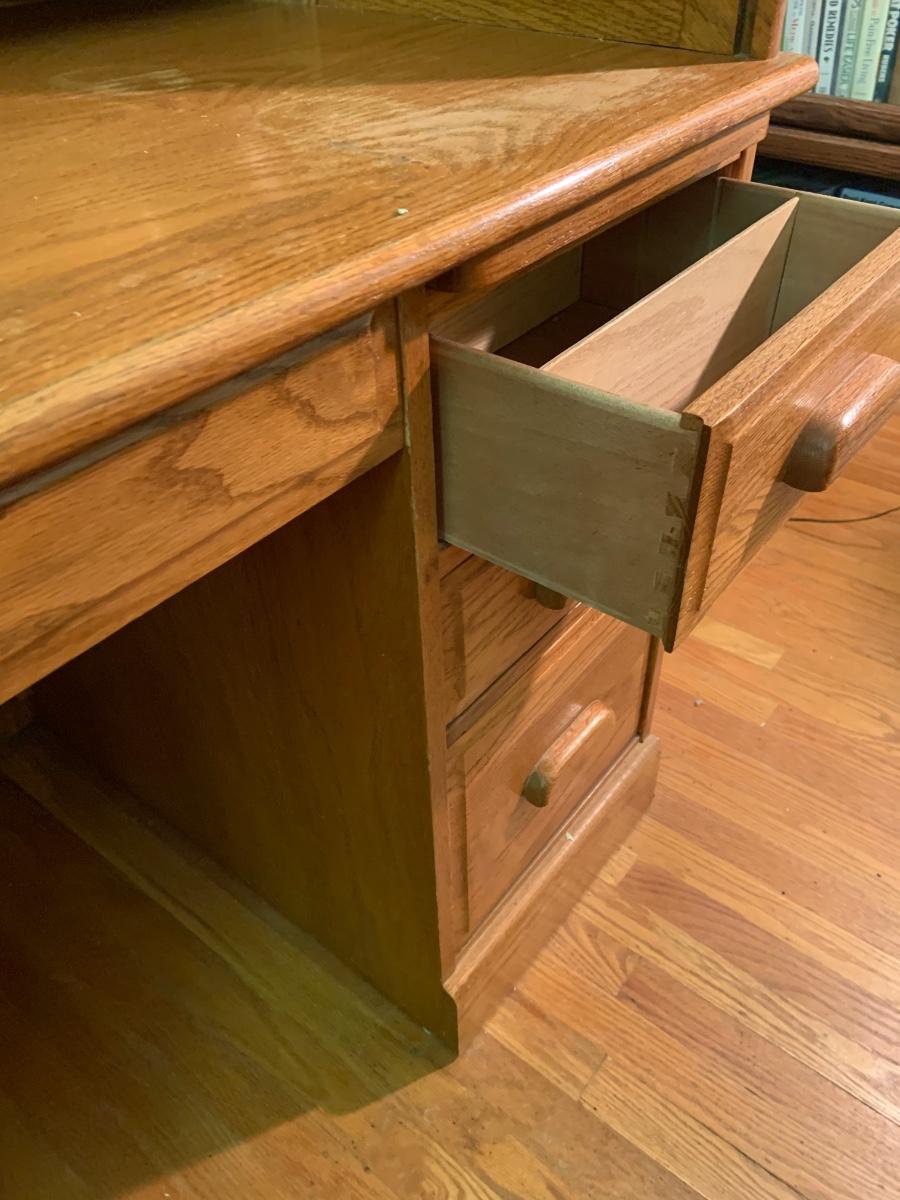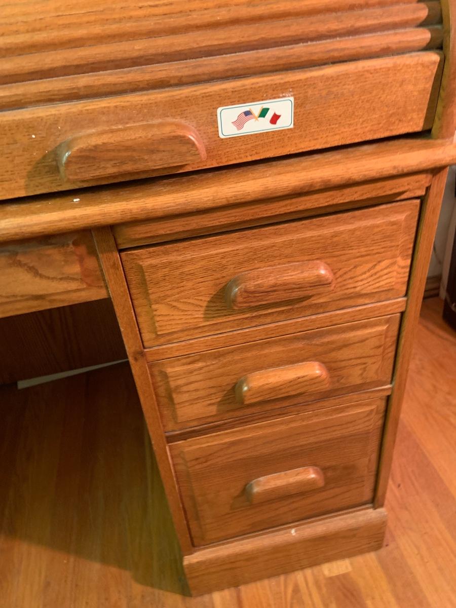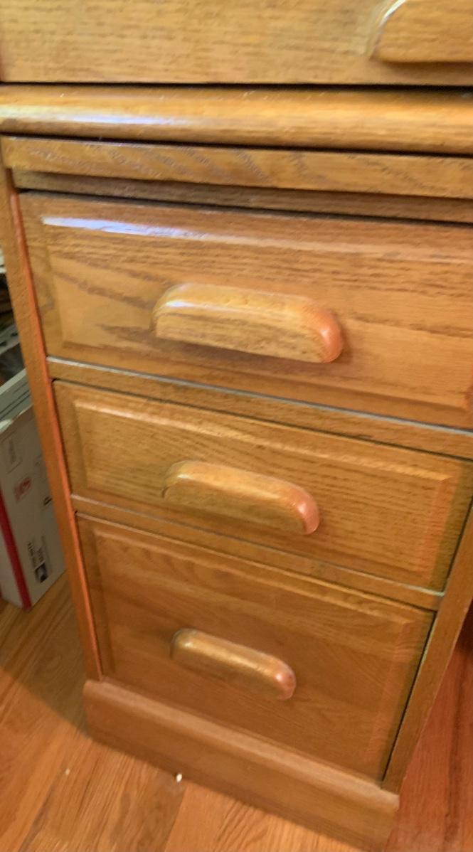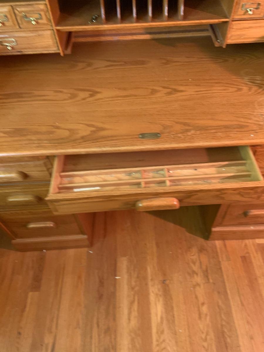 The Desk Measures approximatly 54" x 29" x 46" Please see all pictures as they are the best representation of the items. The pictures show condition, measurements if taken, and what is included in the lot. Due to the large amount that we photograph and the time frame, we are not always able to take measurements. All items unless noted, are pre-owned and have been used. If you purchased furniture, you must bring help. We do not allow one person to carry large furniture out on their own. Bring help, tools and a truck for the safety of our client’s homes, and your personal safety. Any damages that result to the property including walls, and floors due to moving of the furniture will be charged to the buyer. Company policy. Thank you.