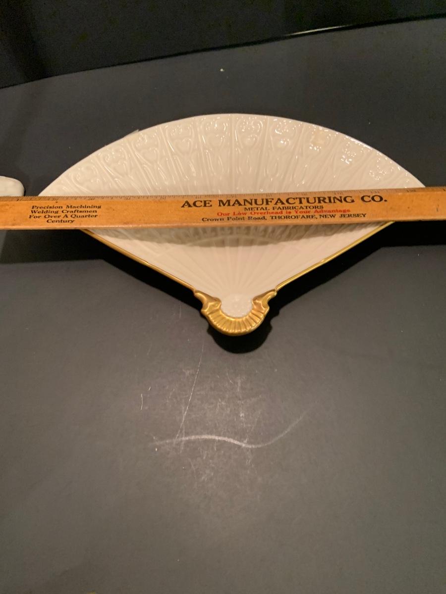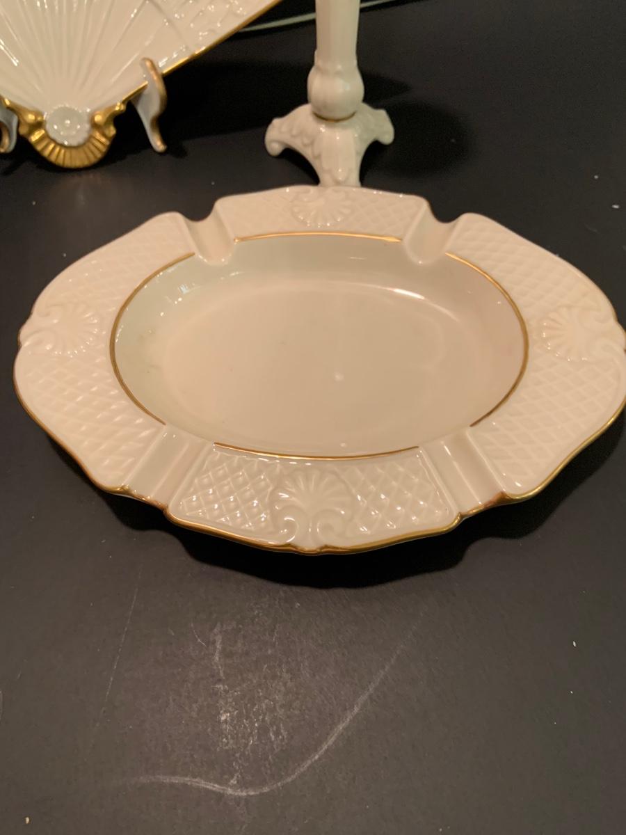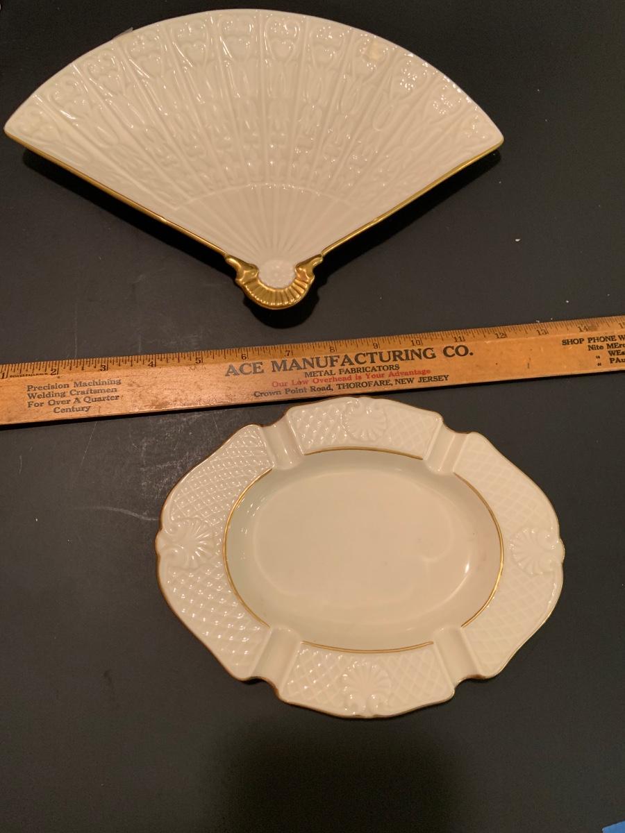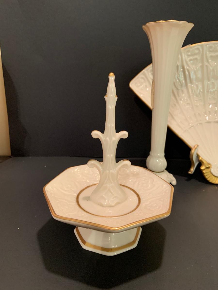 LOT:36G: Lenox China Gold Trimmed Fan Plate, Ashtray, Bud Vases and Ring Holder