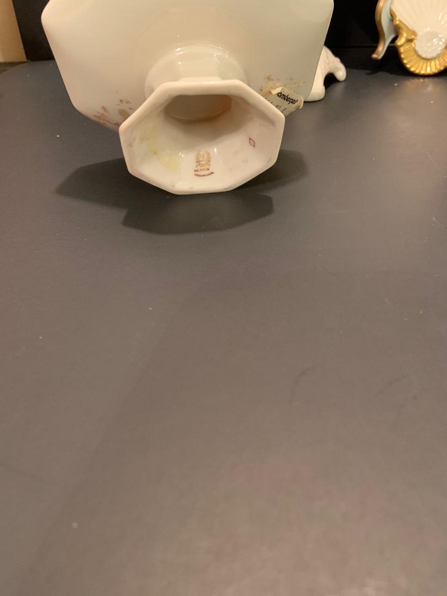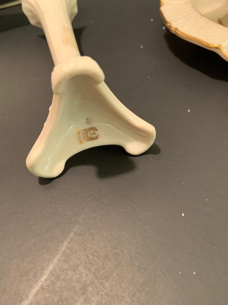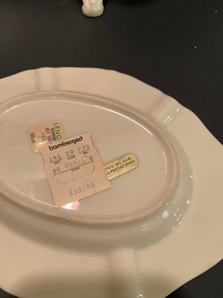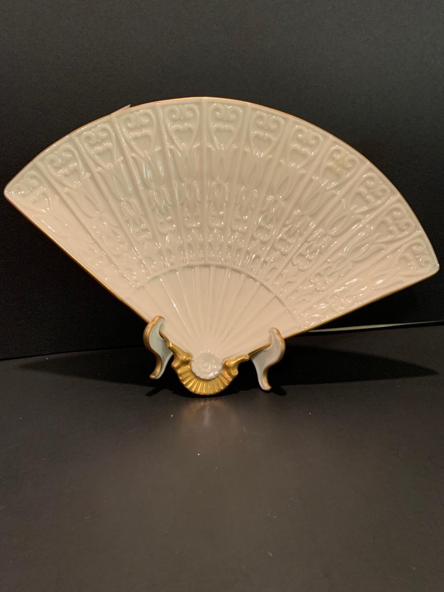 LOT:36G: Lenox China Gold Trimmed Fan Plate, Ashtray, Bud Vases and Ring Holder