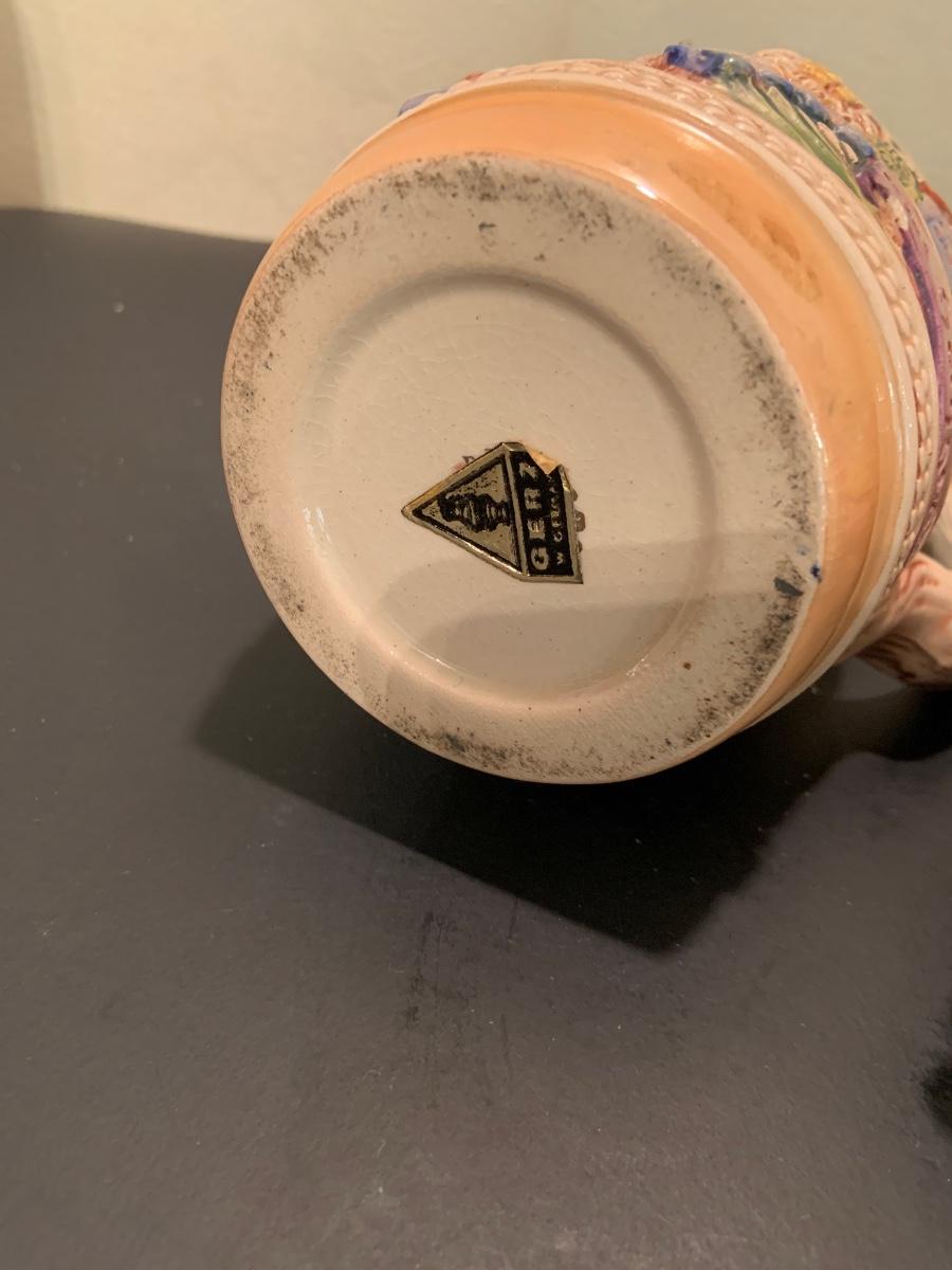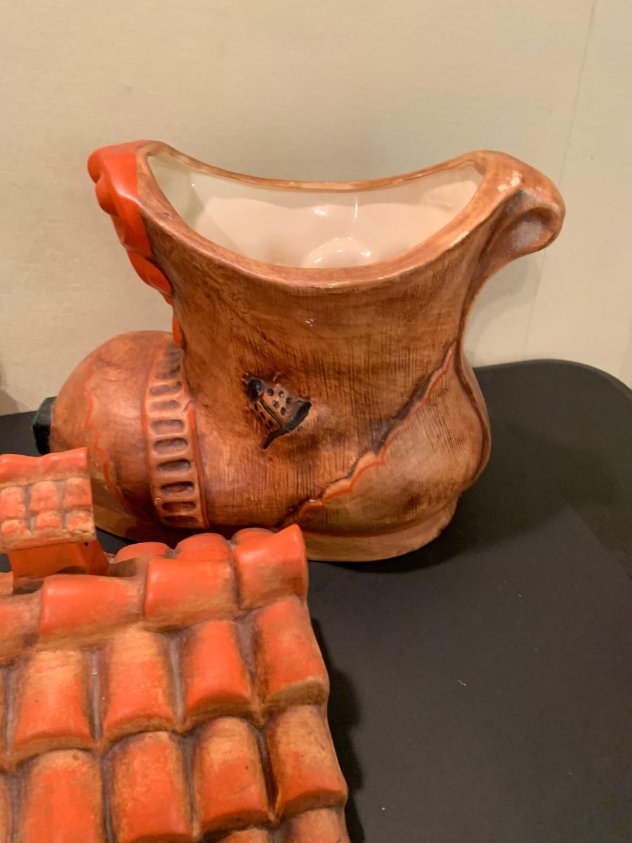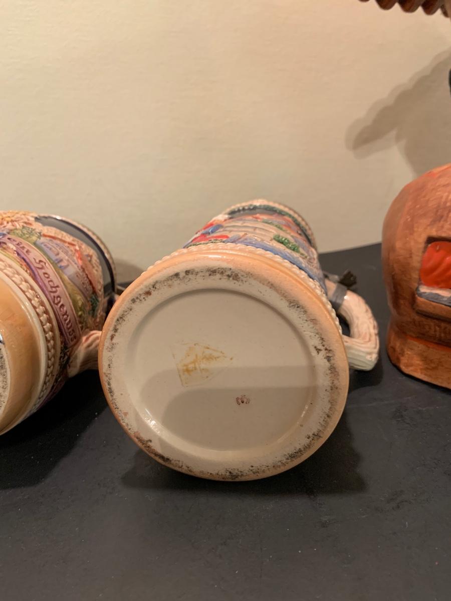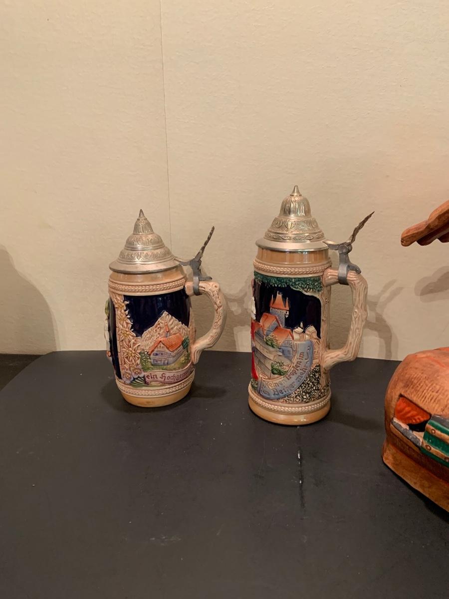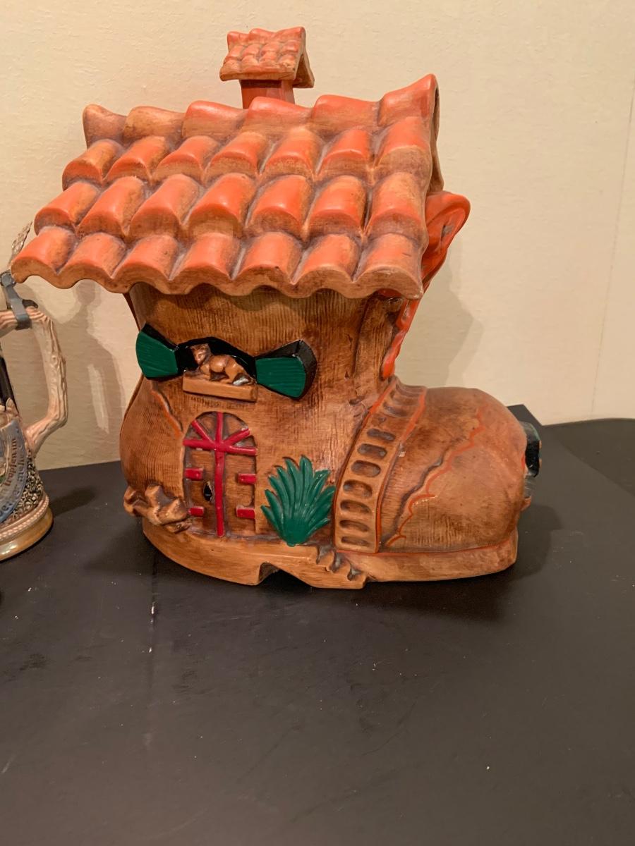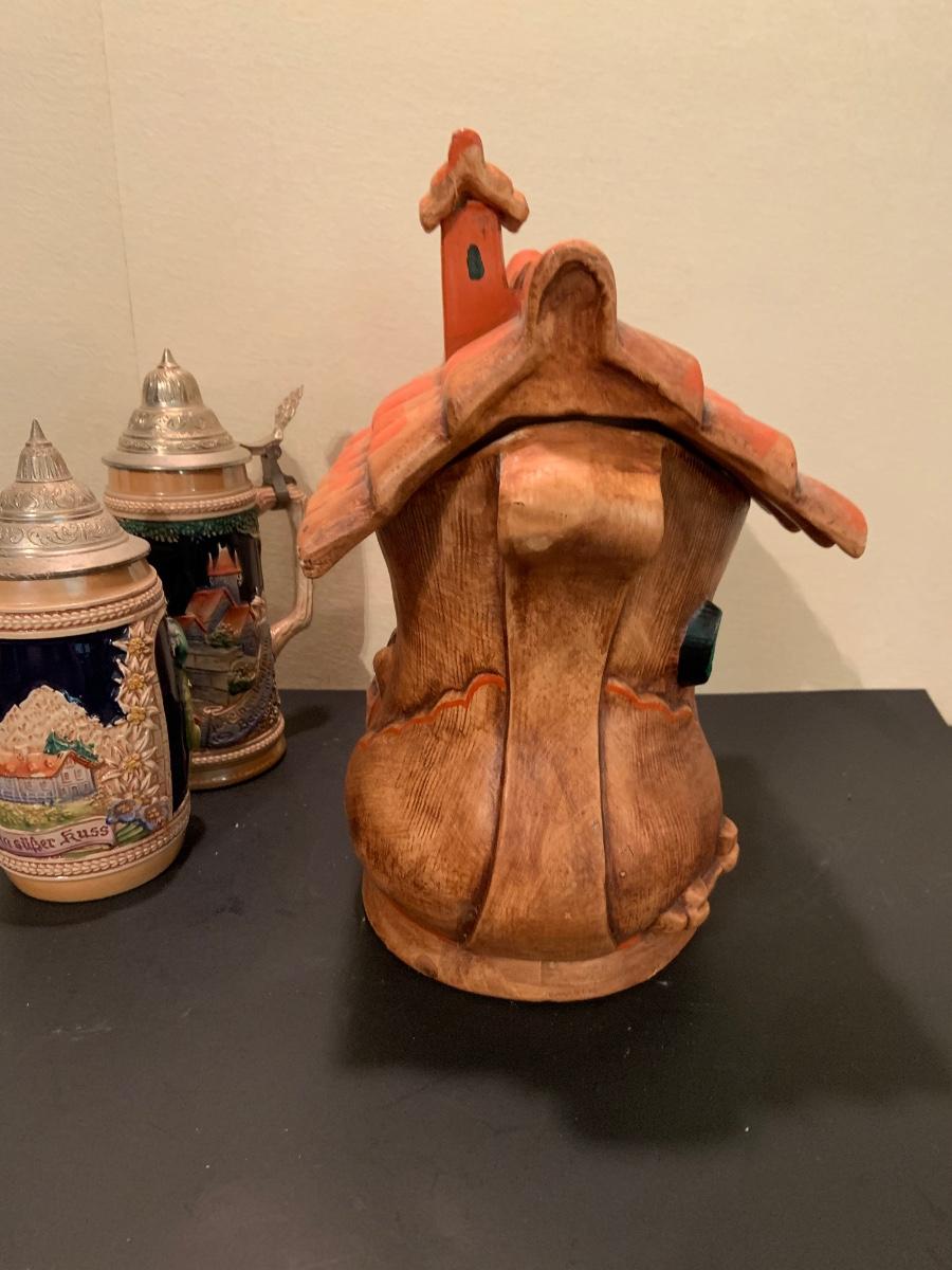 LOT:48G: Vintage Folk Style Old Lady Who Lived in a Shoe Ceramic Cookie Jar and 2 German Beer Steins