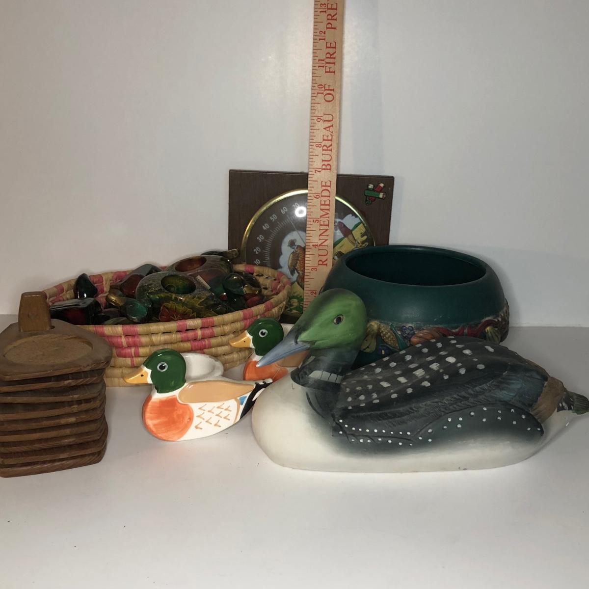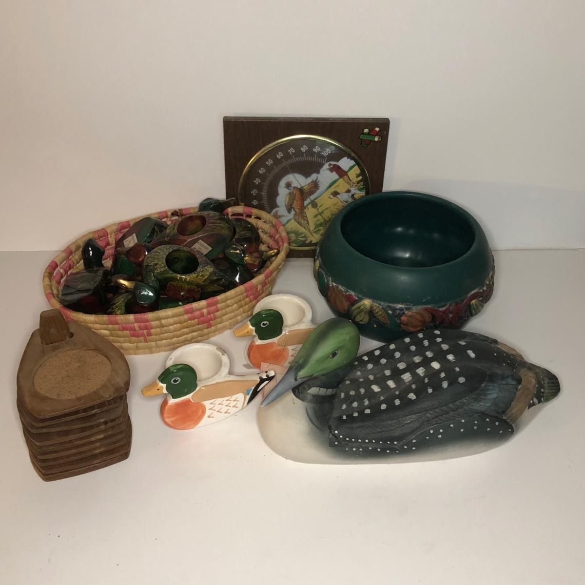 LOT 68M: Duck Collection: Decanter, Napkin Rings, Candle Holders & More