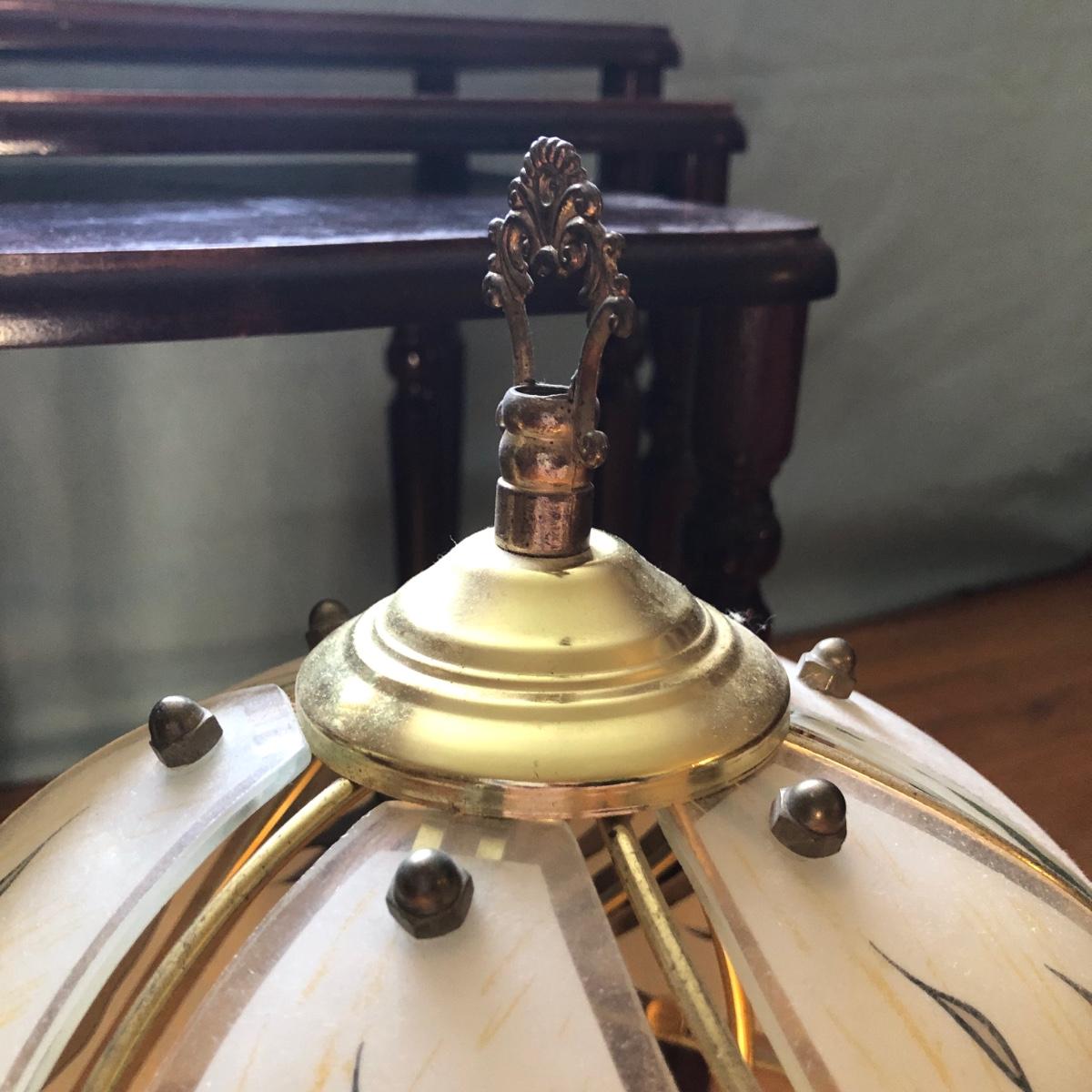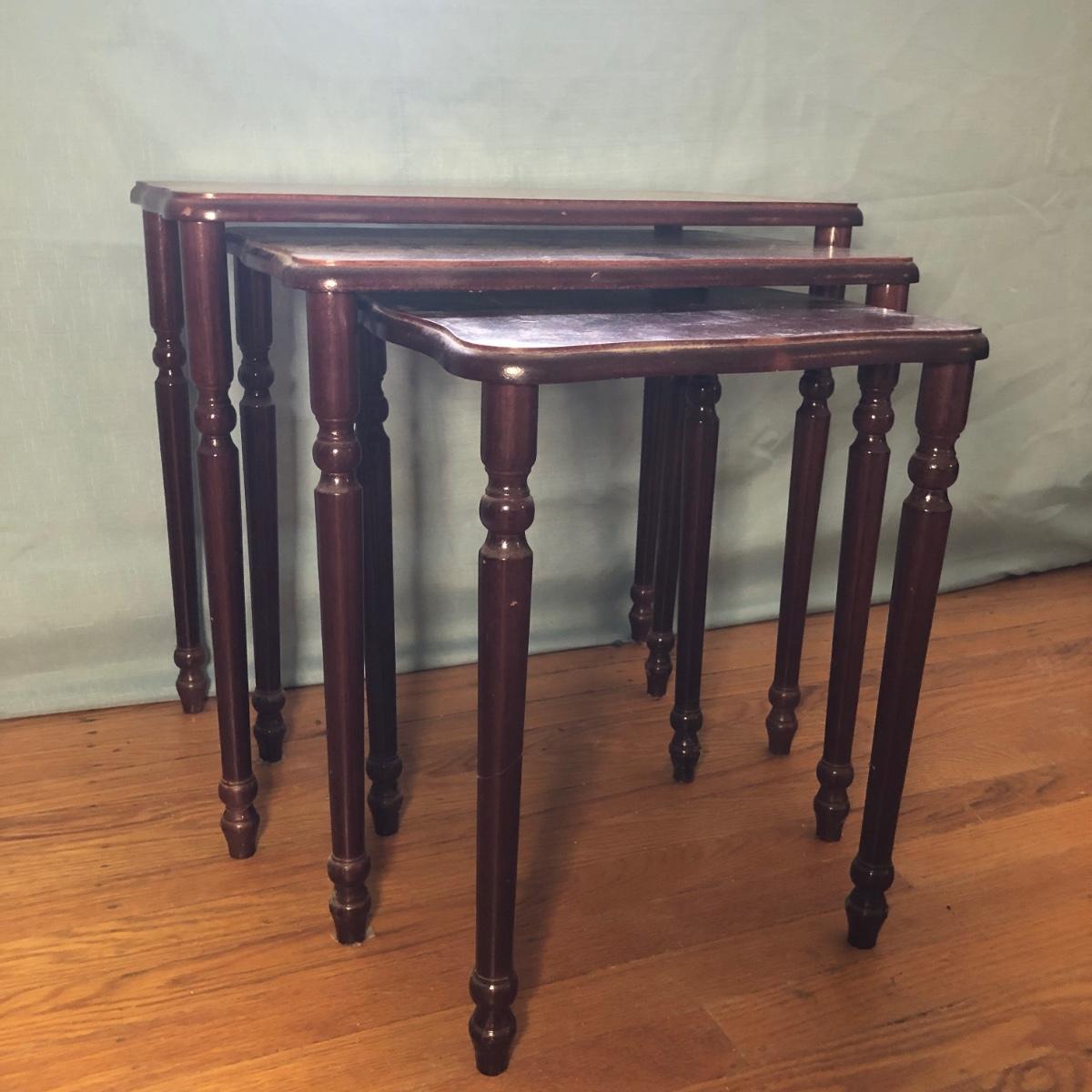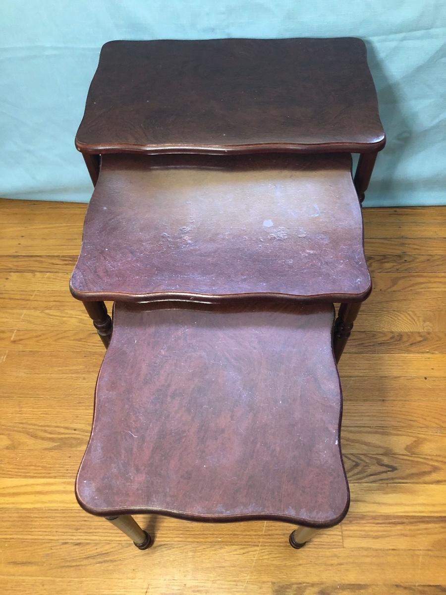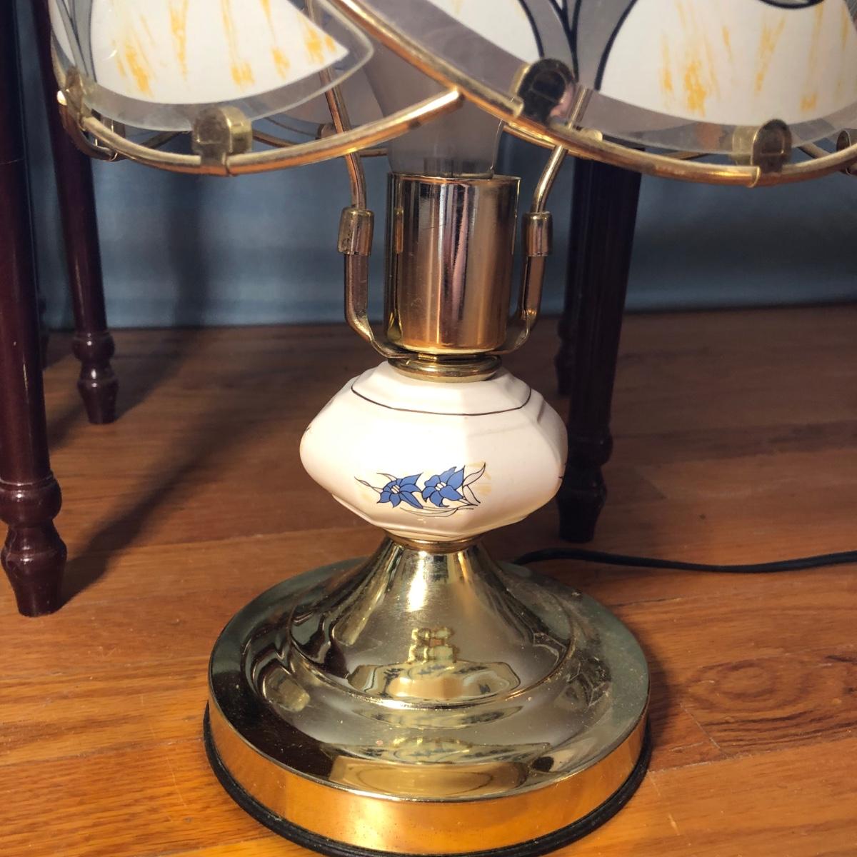 LOT 80M: Nesting Accent Tables & Blue Flower Glass Shade Lamps