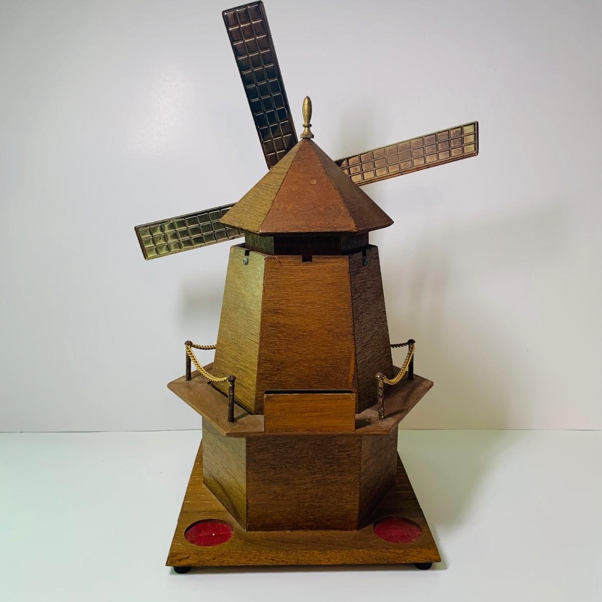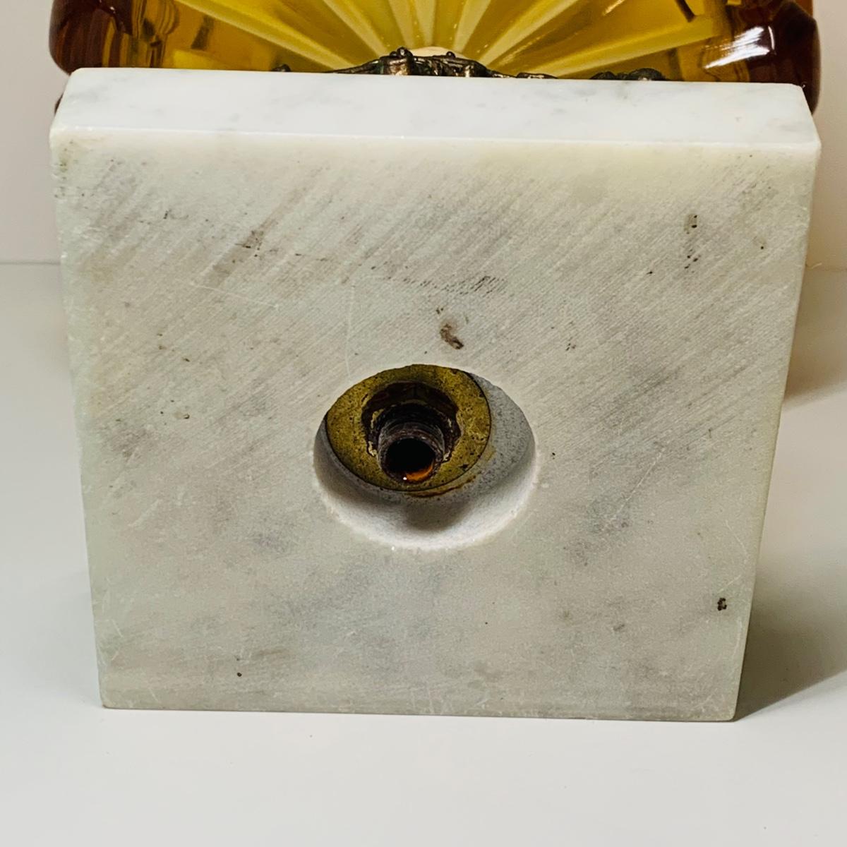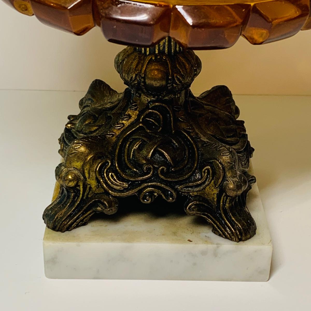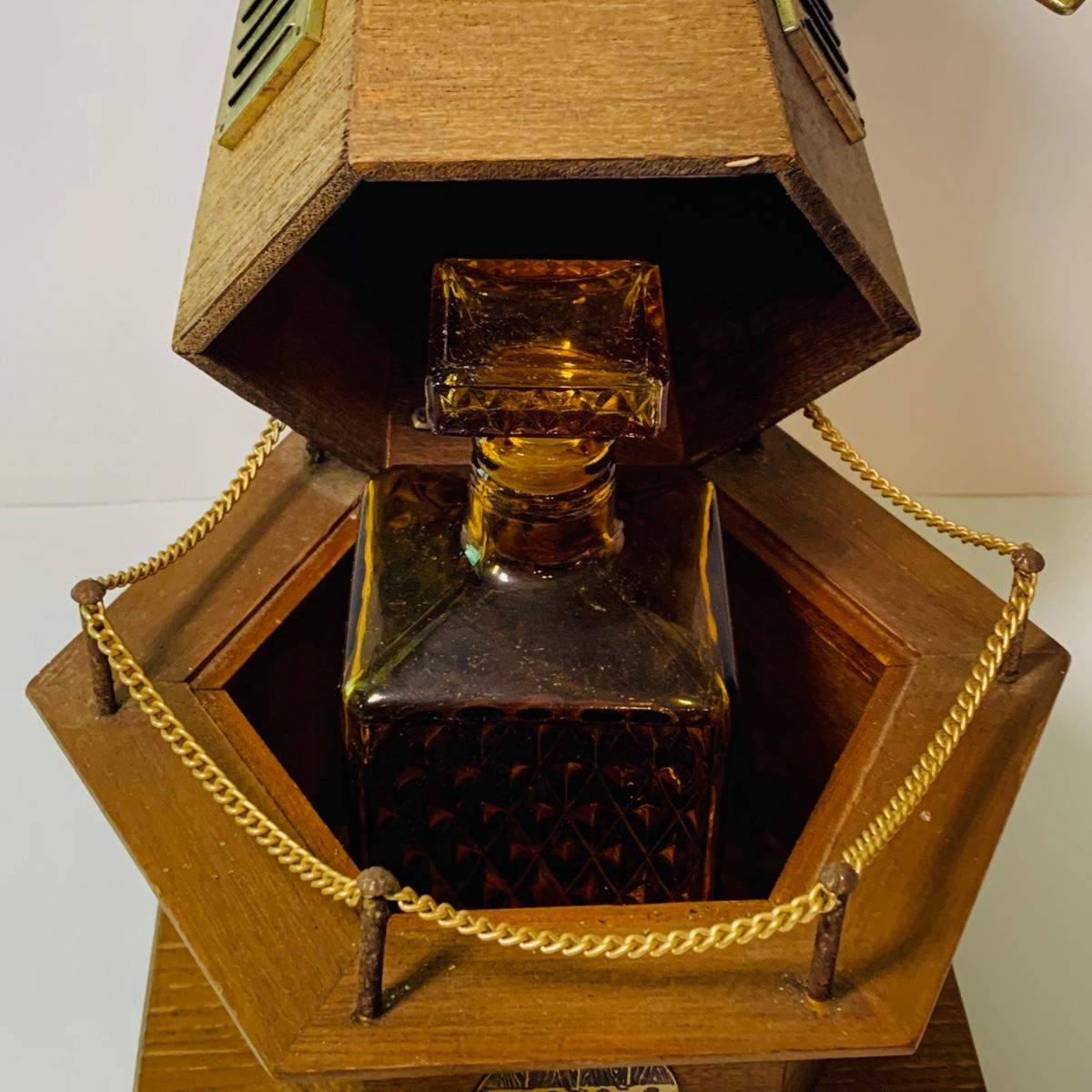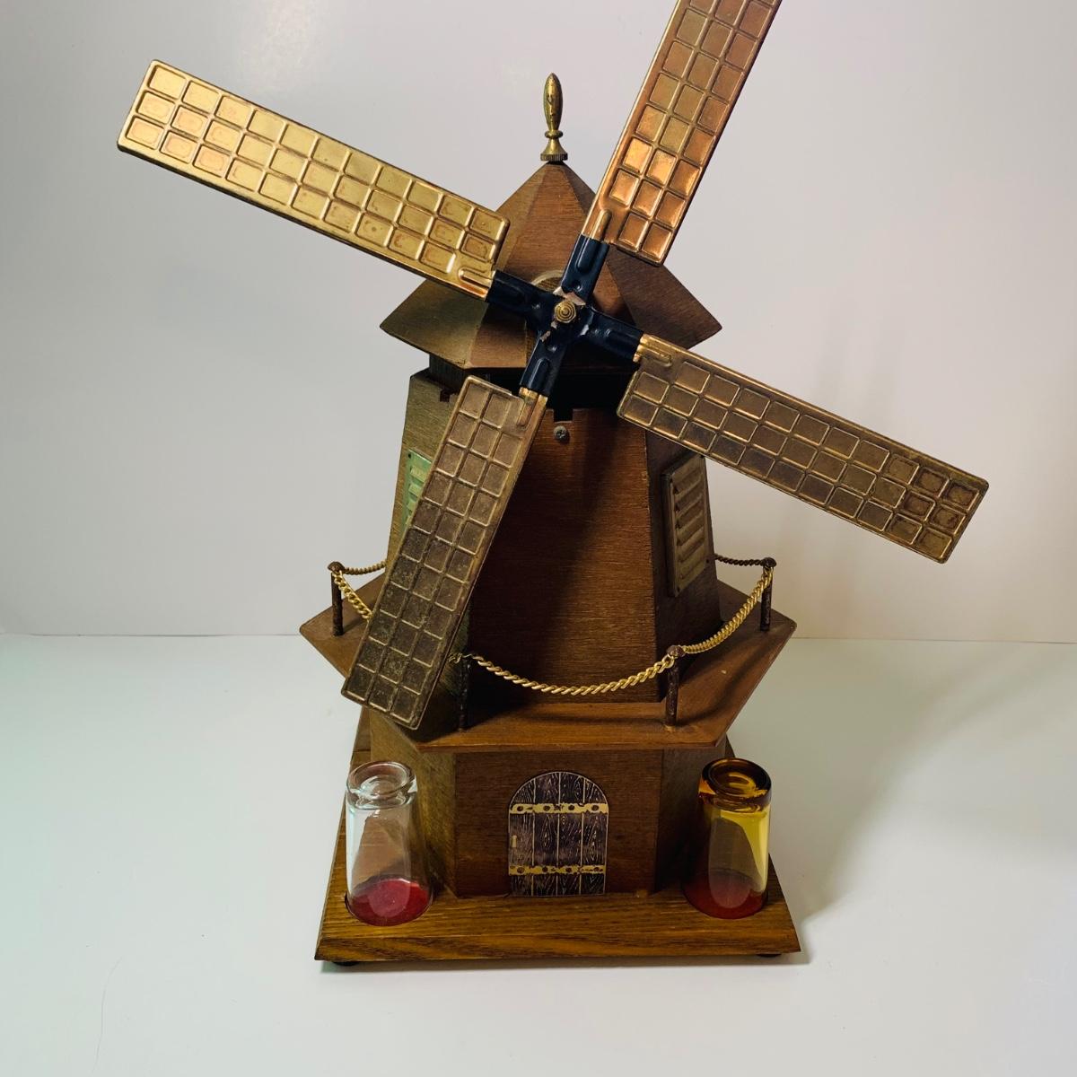 LOT 82: Vintage Windmill Decanter Set with Amber Glass Decanter & a Covered Candy Dish with a Metal & Marble Base and More