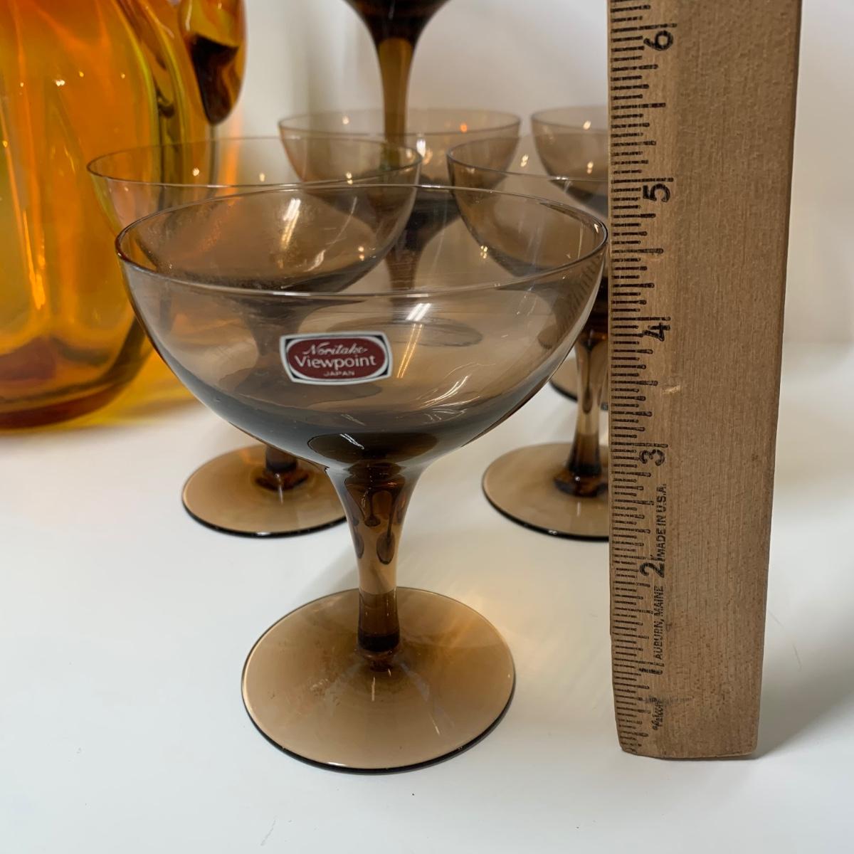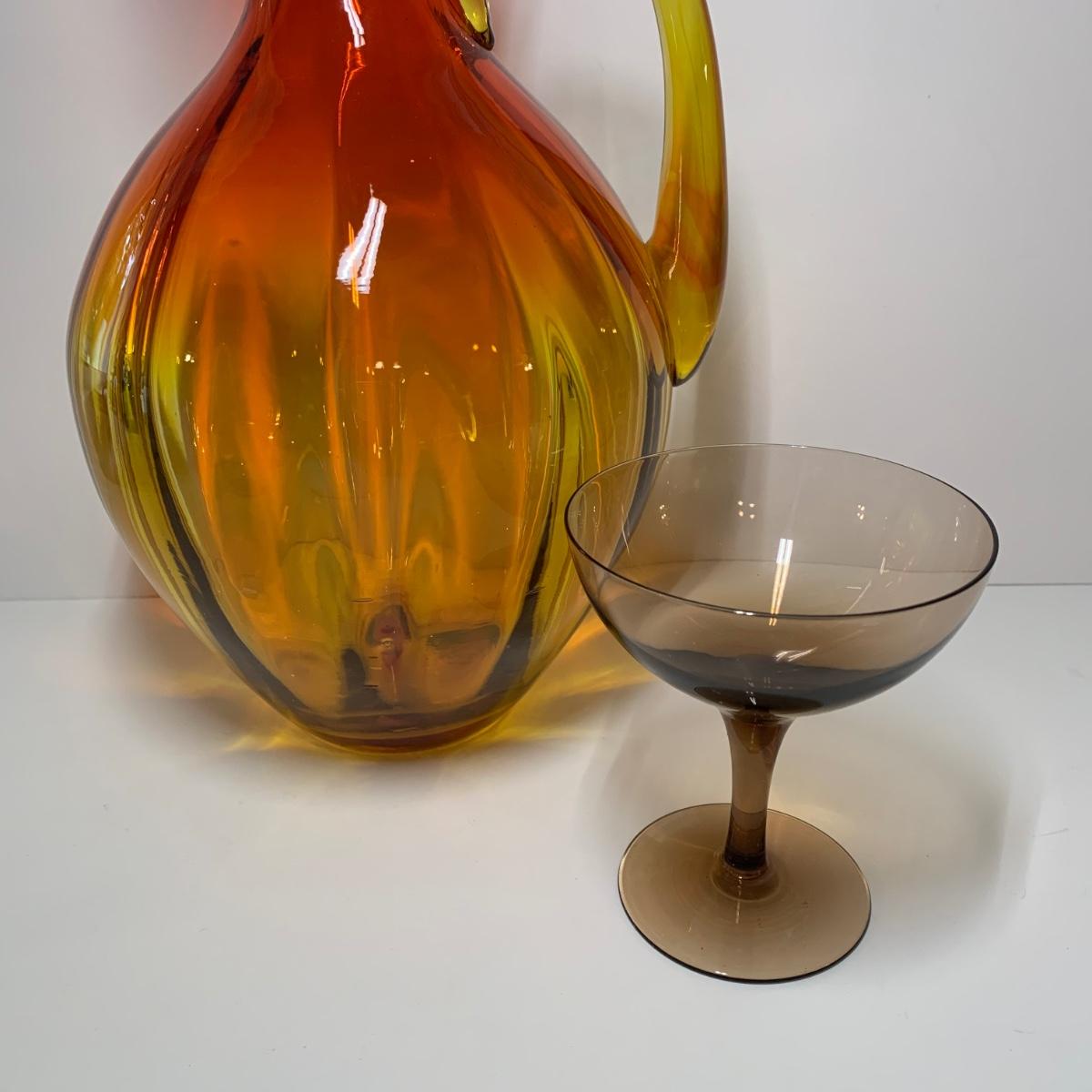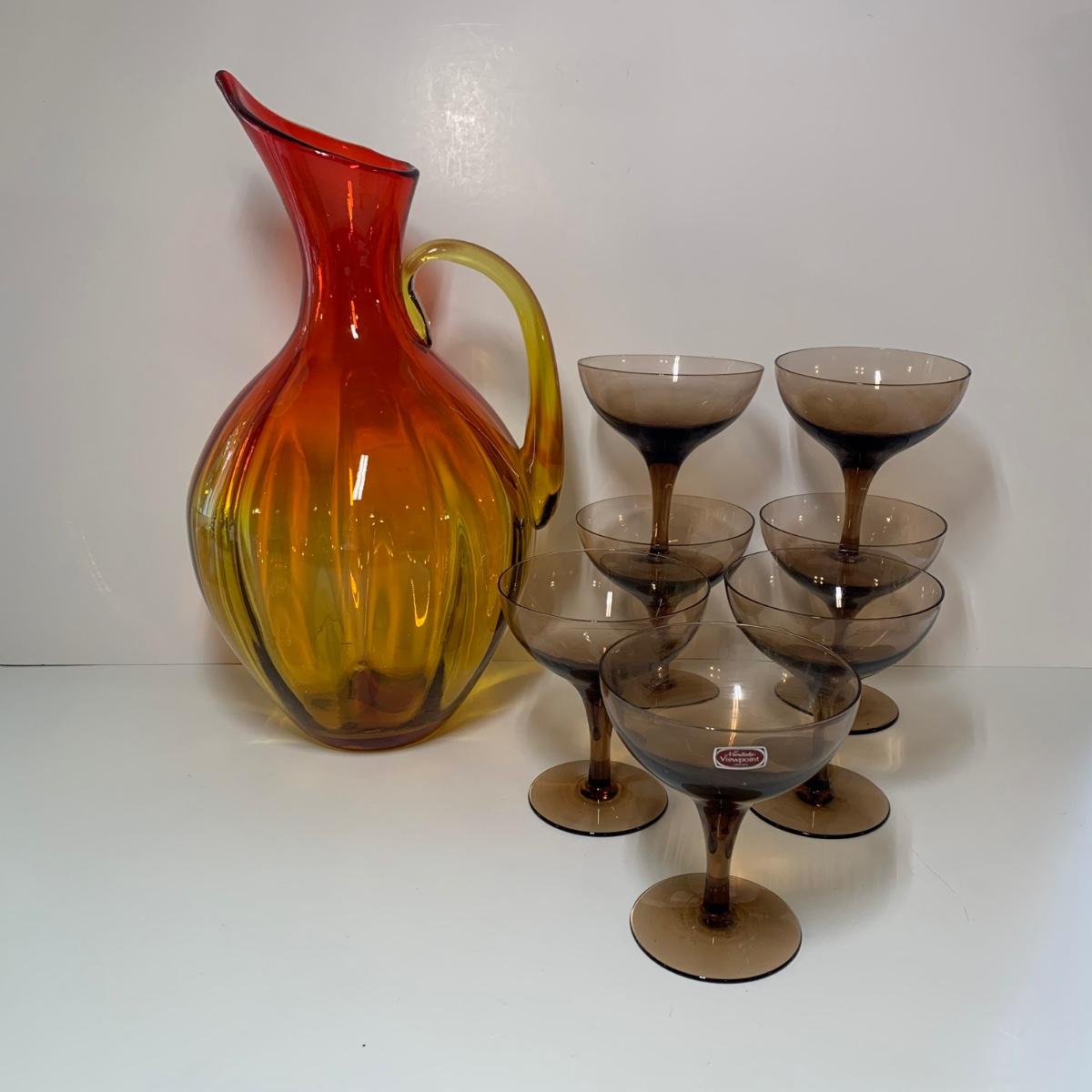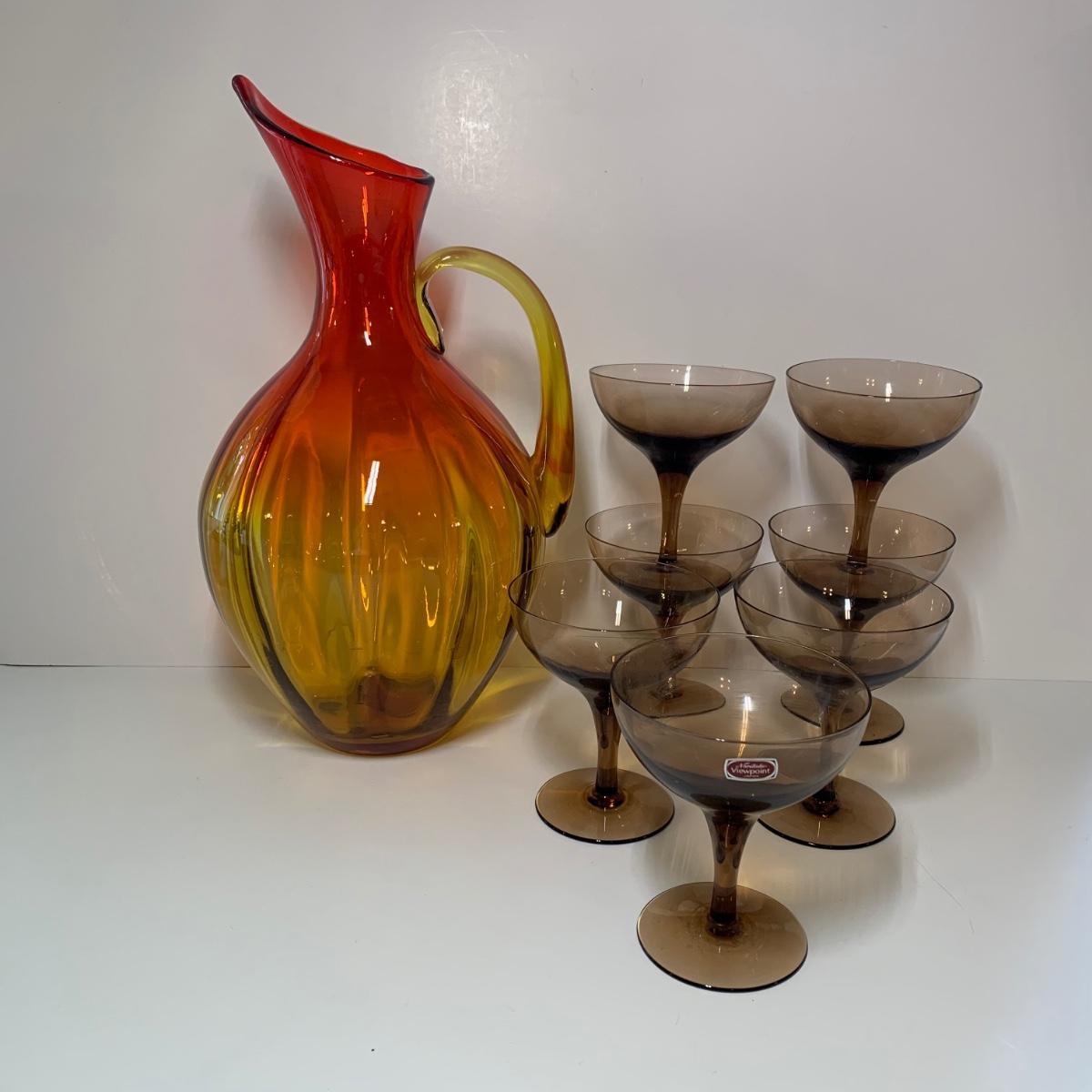LOT 86: Blenko Art Glass Pitcher and 7 Noritake Viewpoint Stemmed Glasses