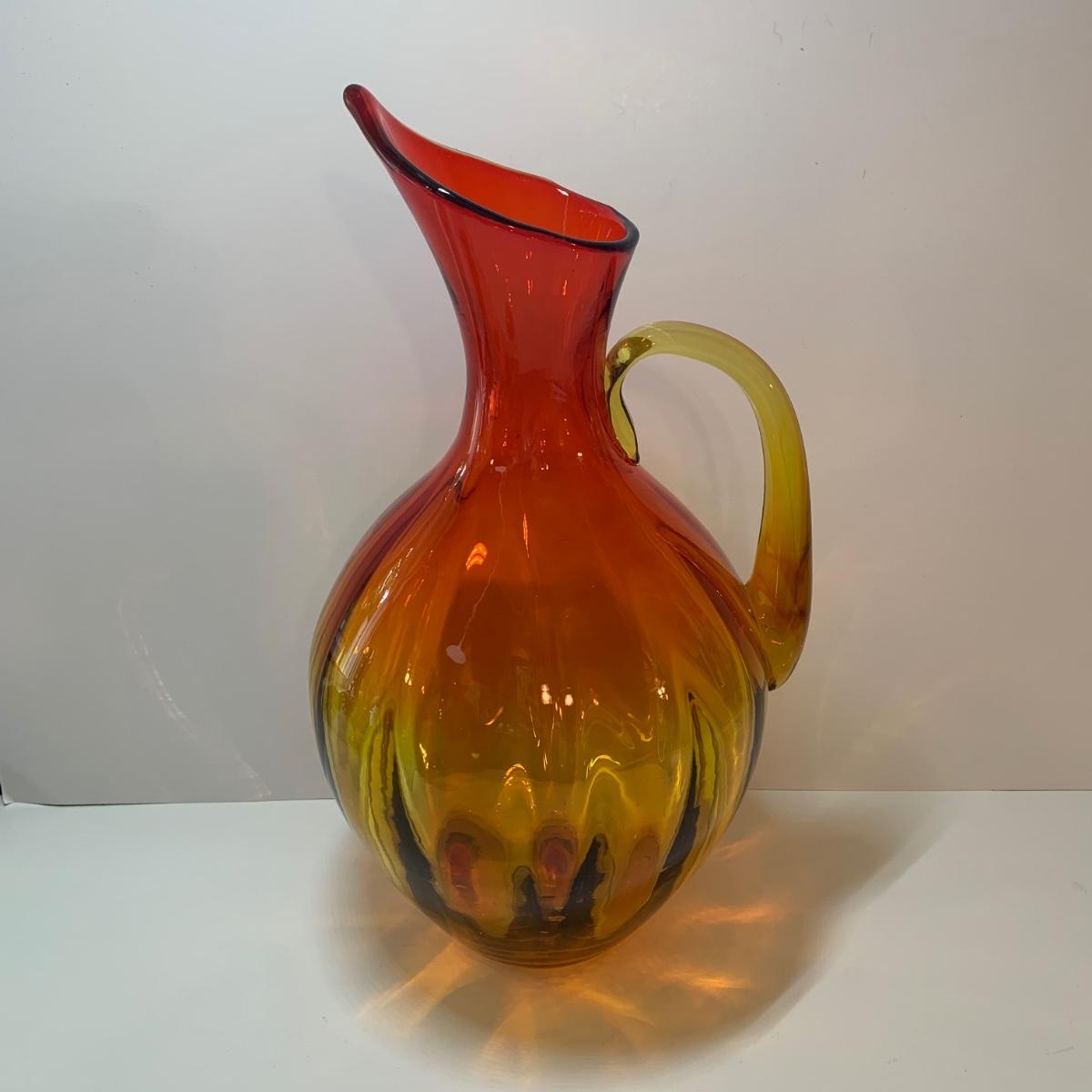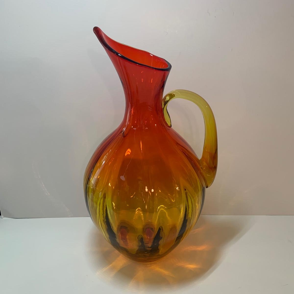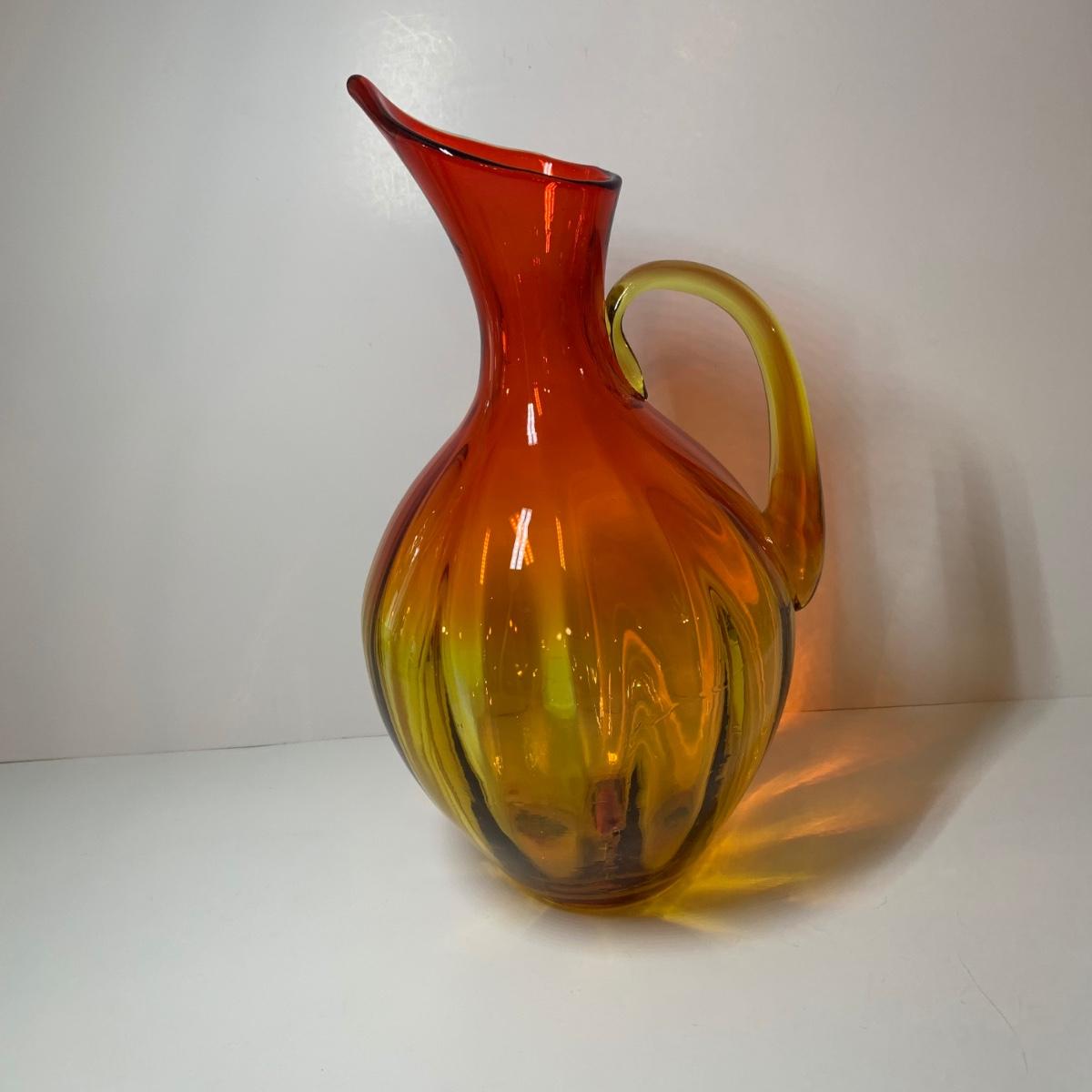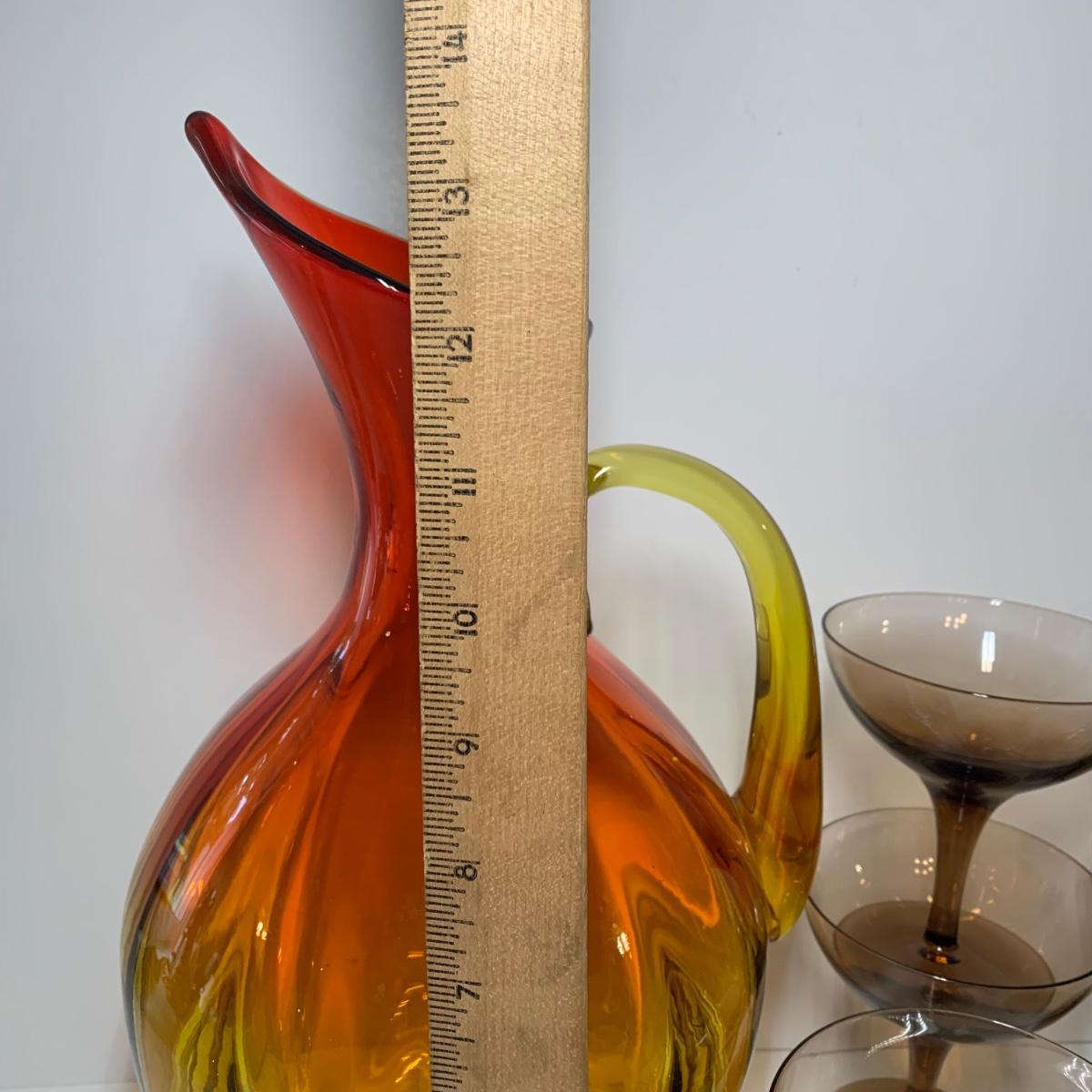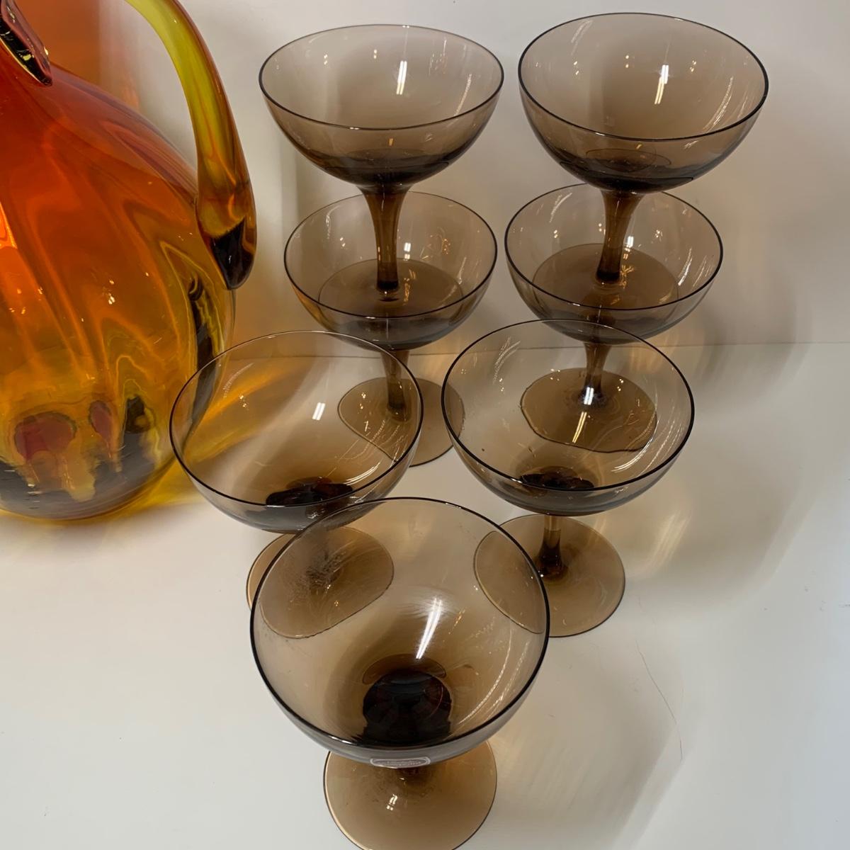 LOT 86: Blenko Art Glass Pitcher and 7 Noritake Viewpoint Stemmed Glasses