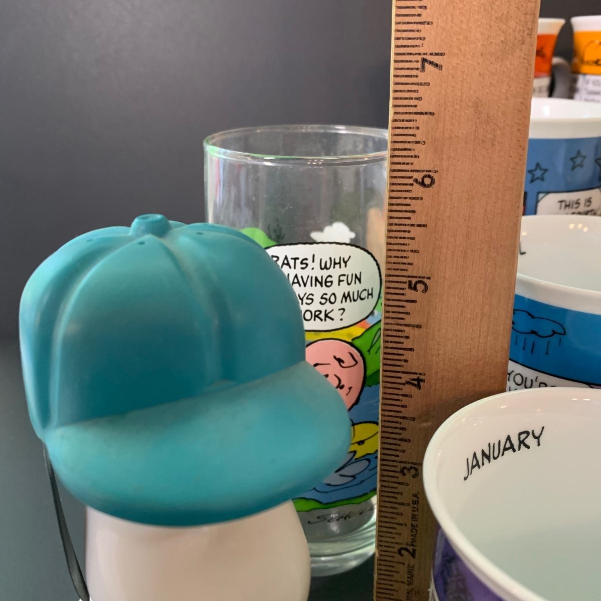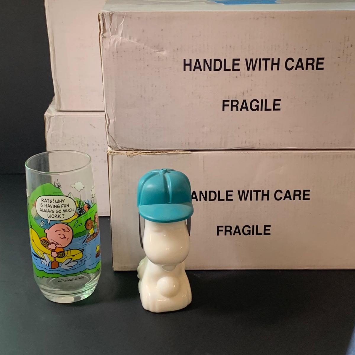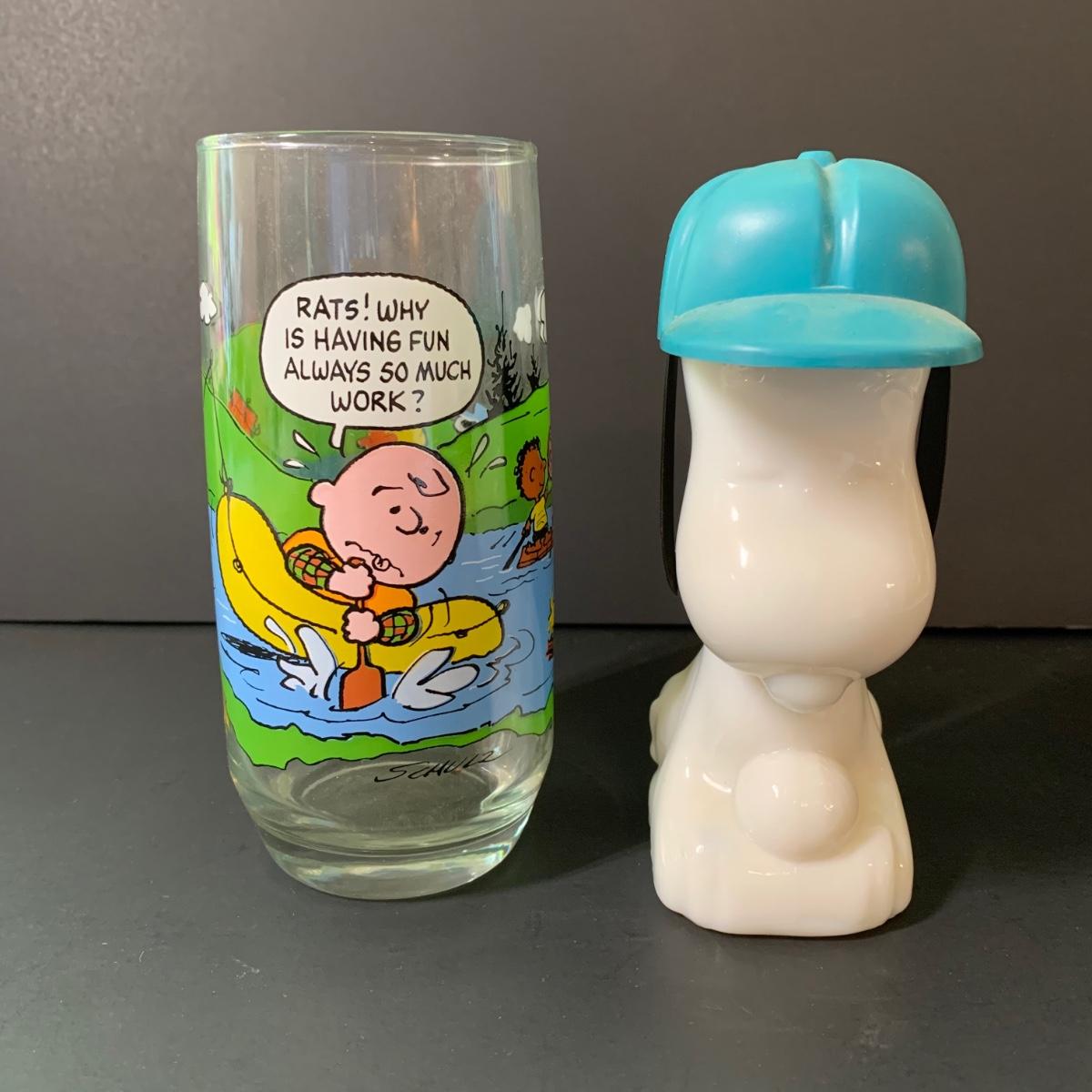 LOT 90: Charlie Brown, Snoopy and the Peanuts Gang Mug for Every Month, Snoopy Avon Bottle and a Camp Snoopy Glass