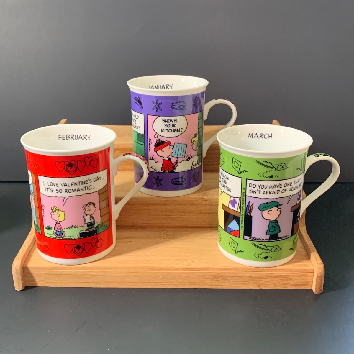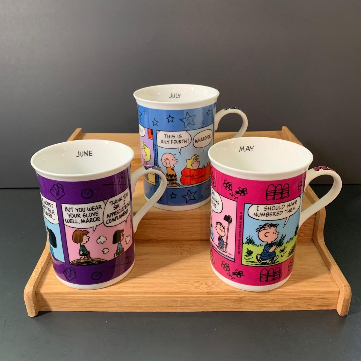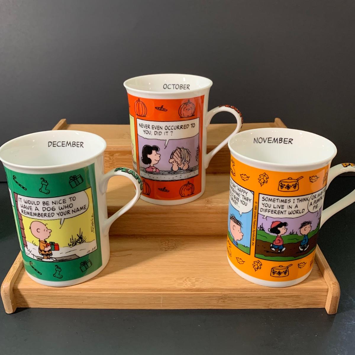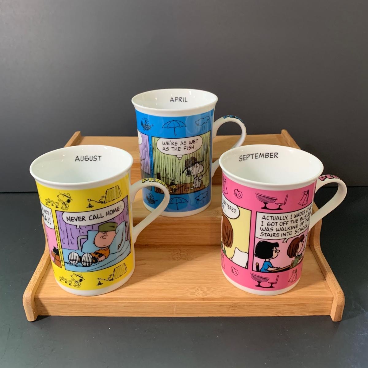 LOT 90: Charlie Brown, Snoopy and the Peanuts Gang Mug for Every Month, Snoopy Avon Bottle and a Camp Snoopy Glass