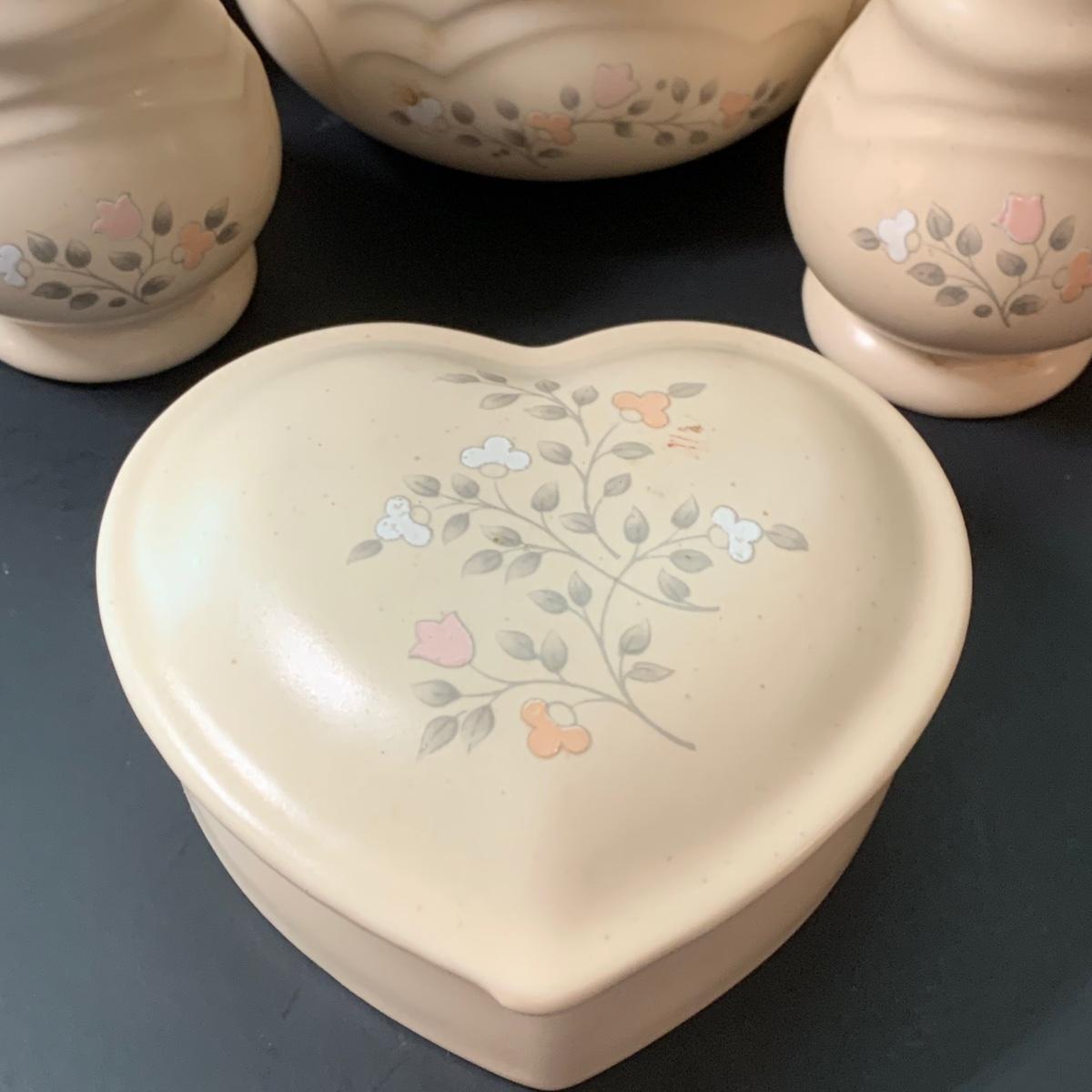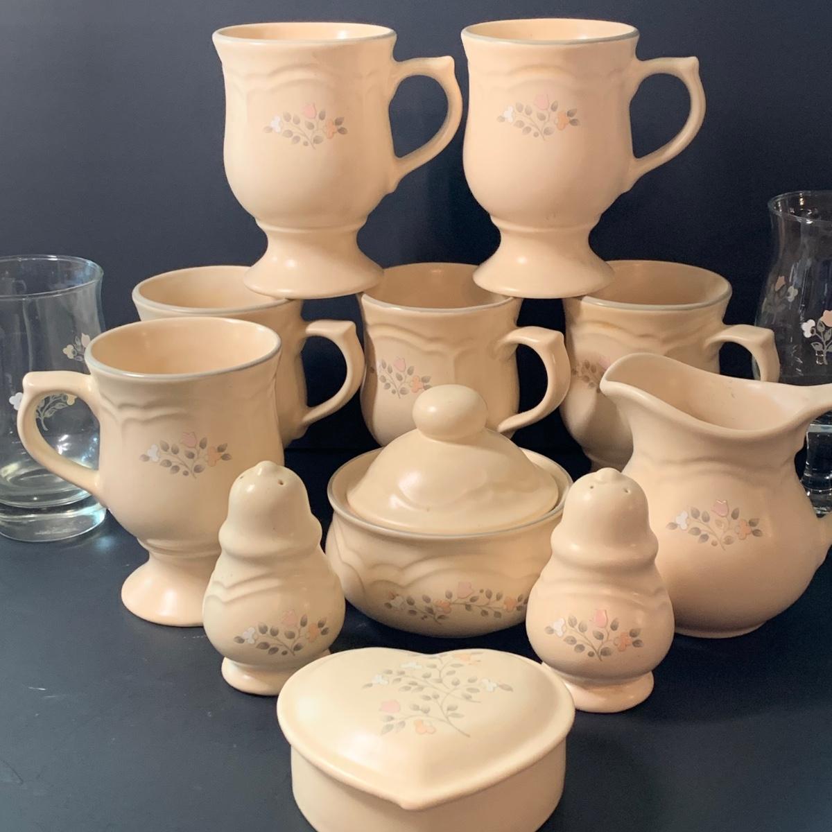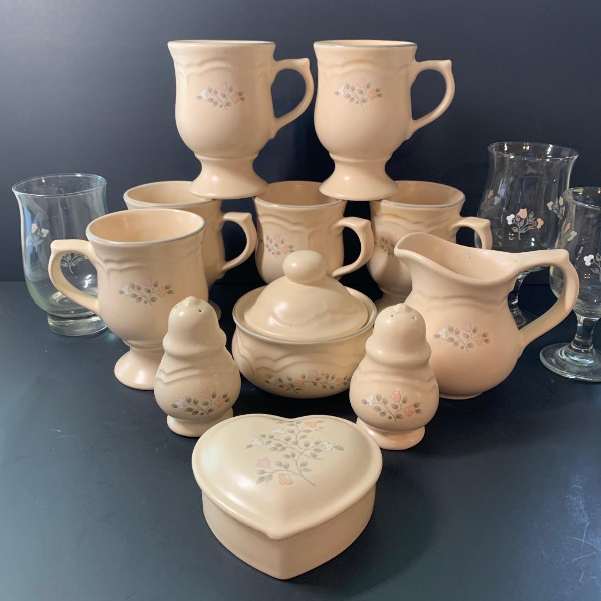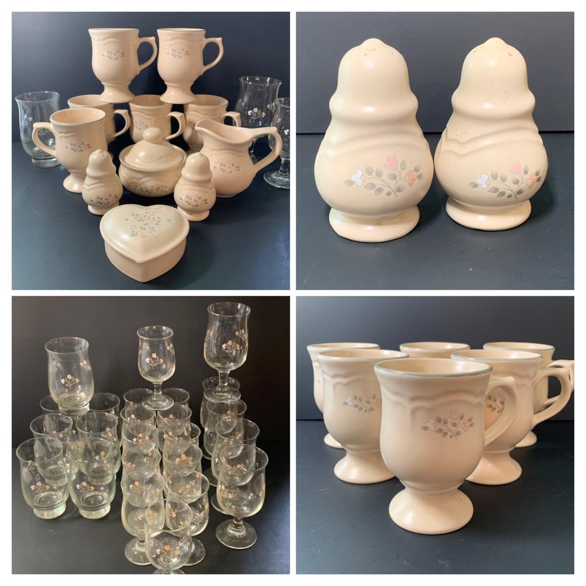 LOT 92: Pfaltzgraft Remembrance - Glasses, Mugs, Shakers Creamer and Sugar Bowl and Heart Shaped Trinket Box