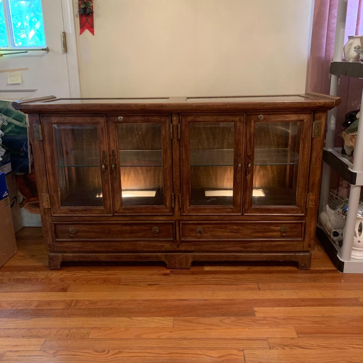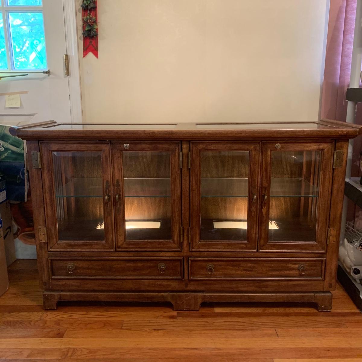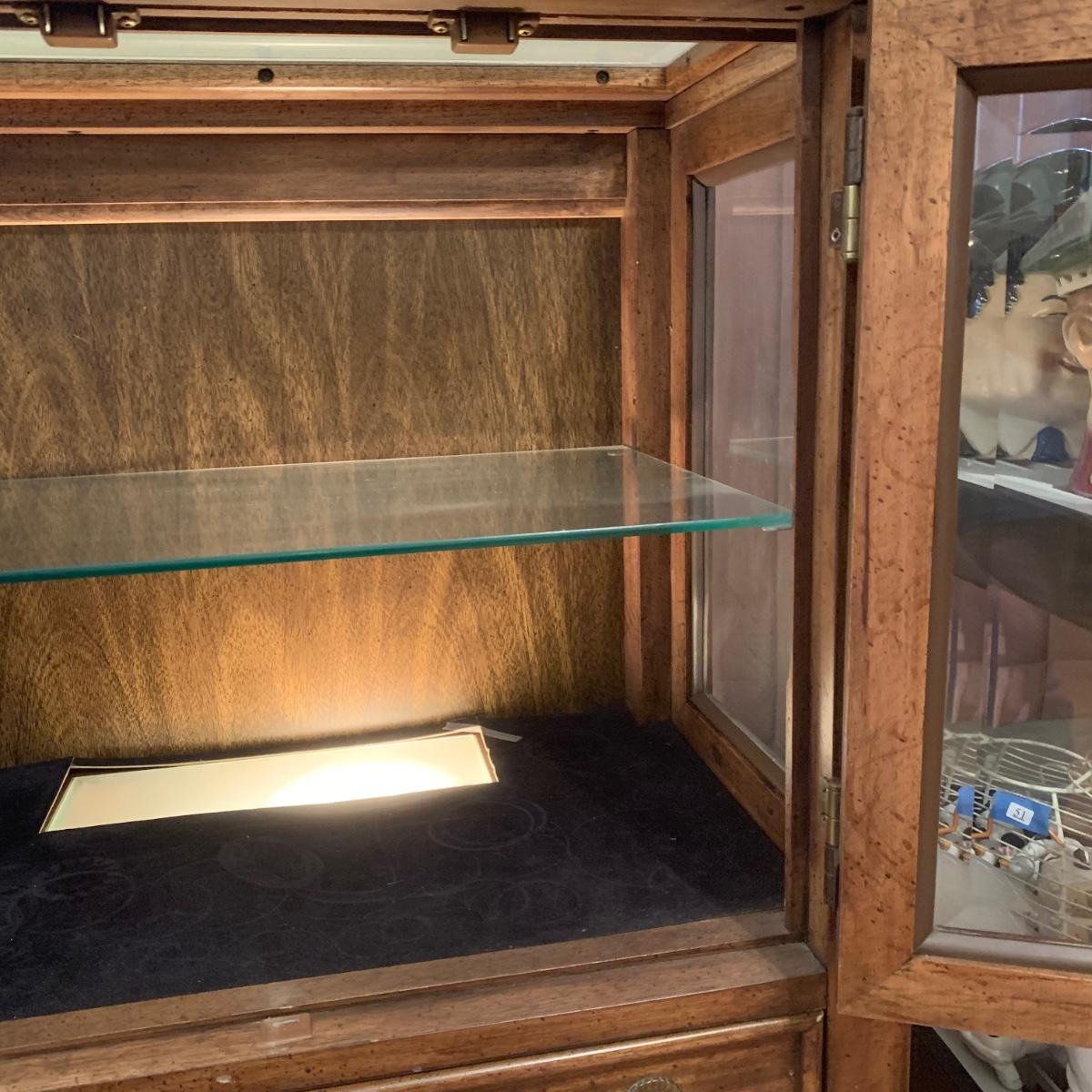 LOT 96: Lighted Glass Front Hutch/ Curio Cabinet with Glass Shelf and Top,