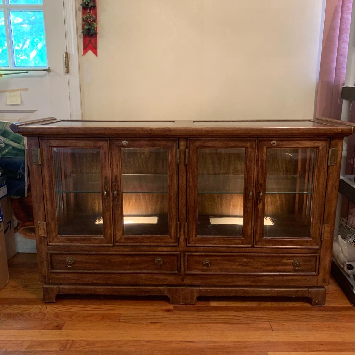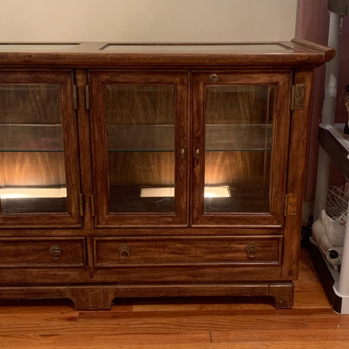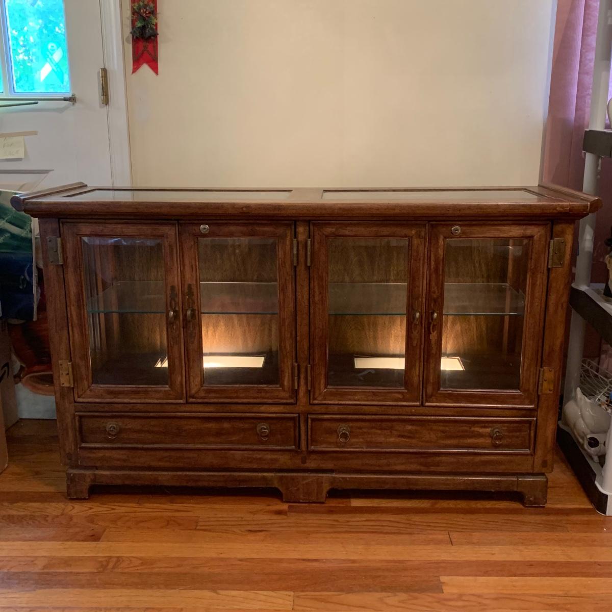 LOT 96: Lighted Glass Front Hutch/ Curio Cabinet with Glass Shelf and Top,