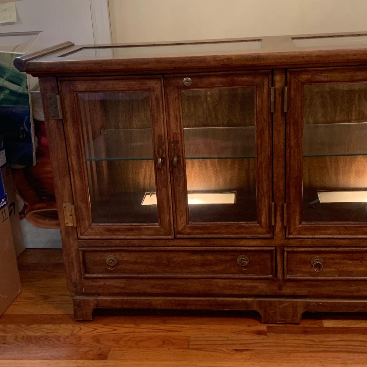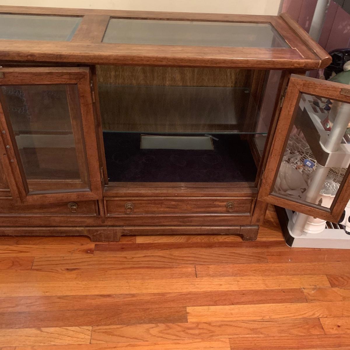 The approximate size of this piece is 52 x17 X 31. Please see all pictures as they are the best representation of the items. The pictures show condition, measurements if taken, and what is included in the lot. Due to the large amount that we photograph and the time frame, we are not always able to take measurements. All items unless noted, are pre-owned and have been used. If you purchased furniture, you must bring help. We do not allow one person to carry large furniture out on their own. Bring help, tools and a truck for the safety of our client’s homes, and your personal safety. Any damages that result to the property including walls, and floors due to moving of the furniture will be charged to the buyer. Company policy. Thank you.