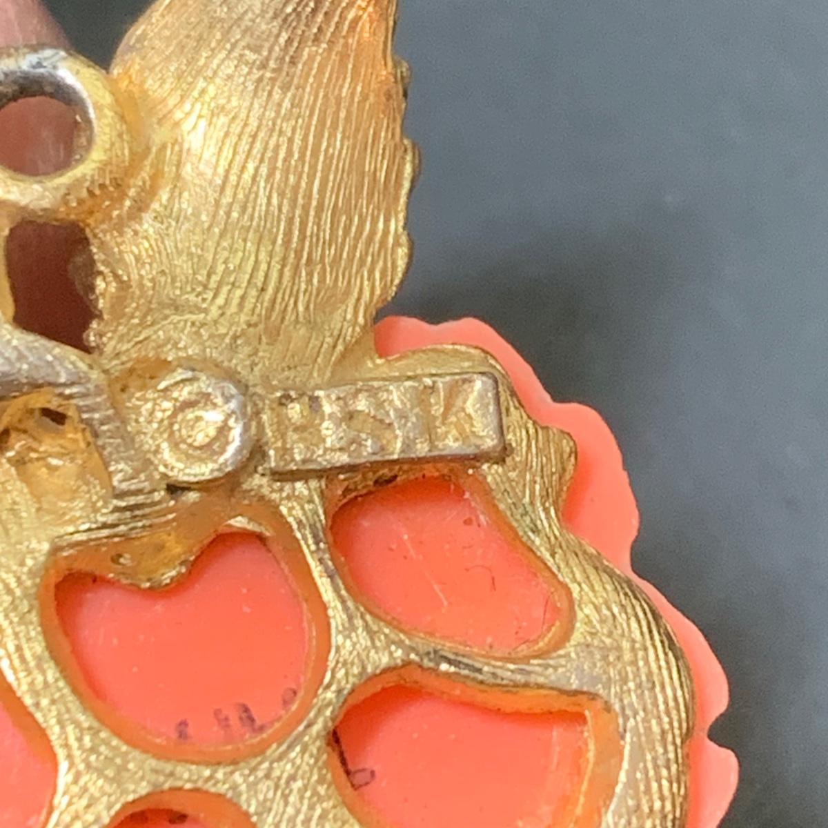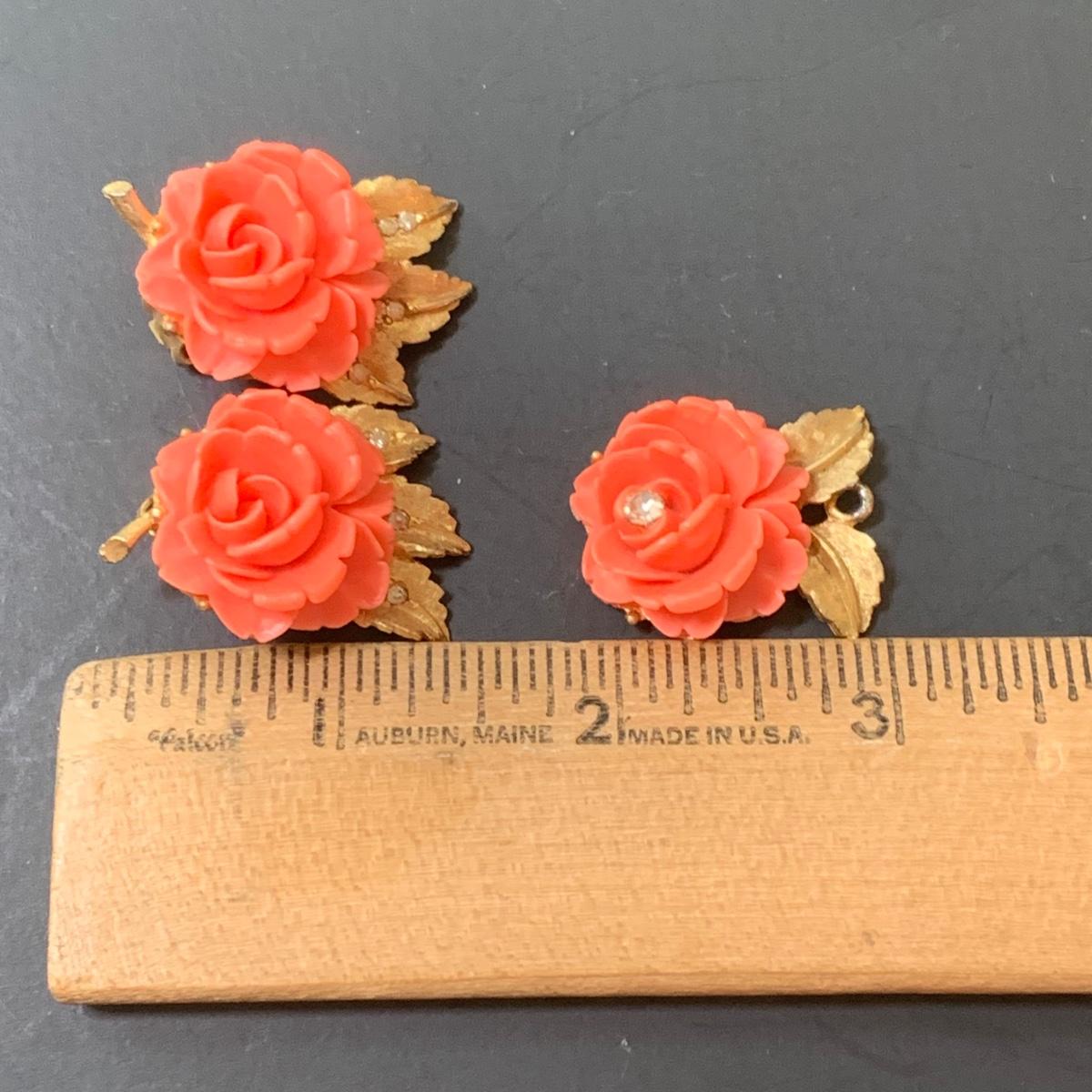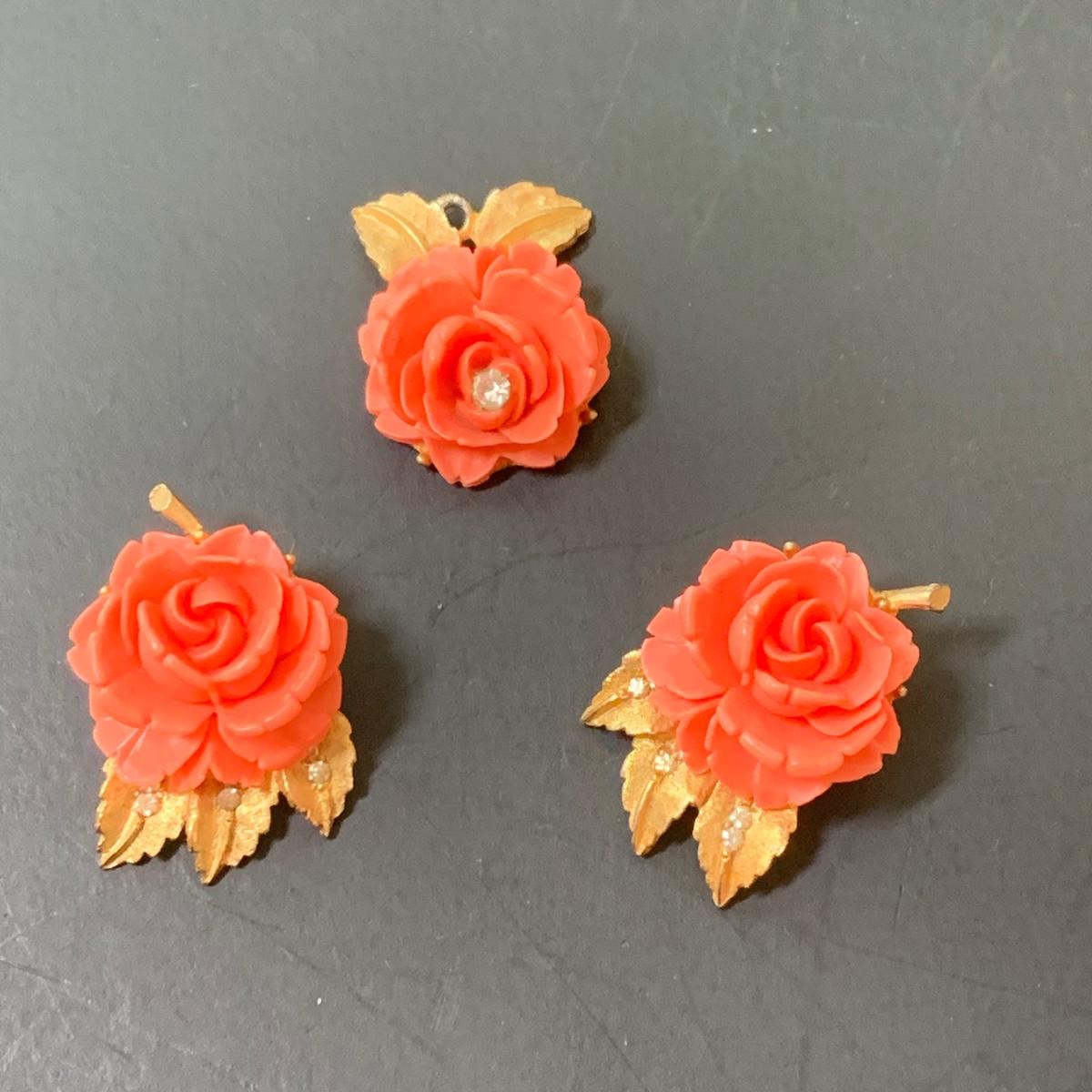LOT 124: Floral Jewelry Collection & More: BSK Pendant & Clip Earrings, Crown Trifari Chain, Hand Dyed Silk Pin, Locket