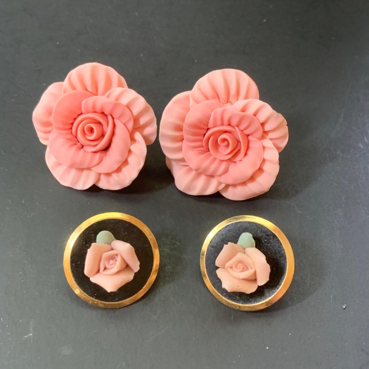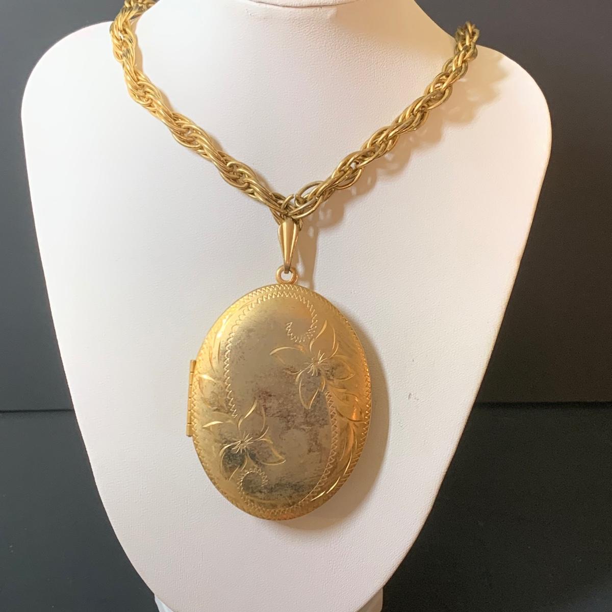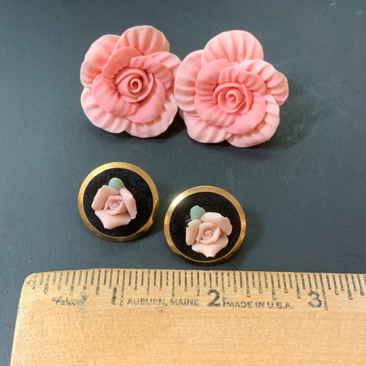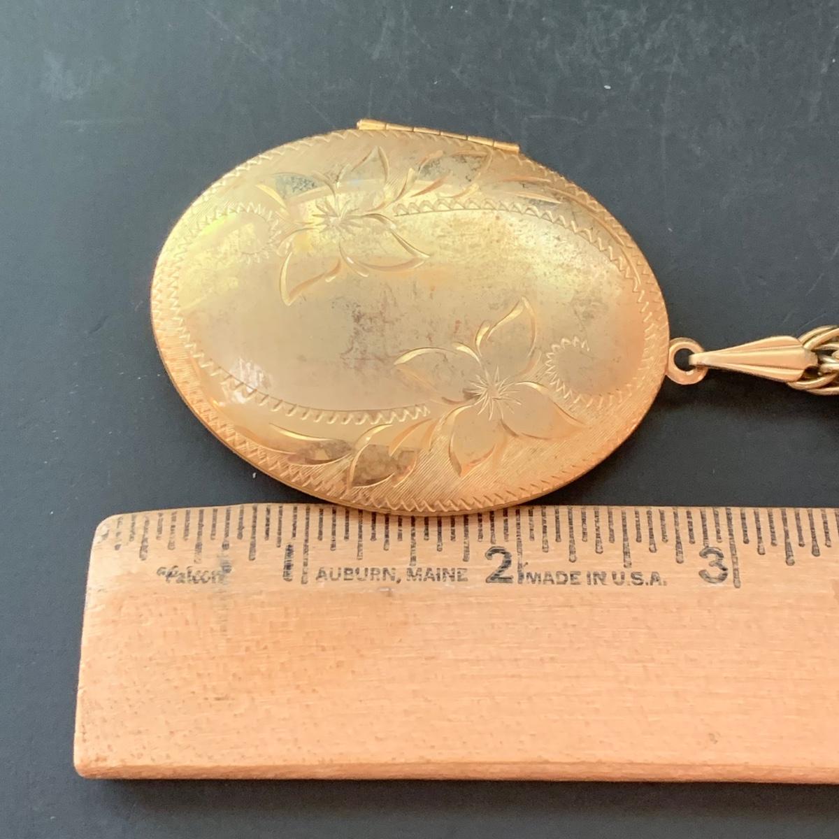 LOT 124: Floral Jewelry Collection & More: BSK Pendant & Clip Earrings, Crown Trifari Chain, Hand Dyed Silk Pin, Locket