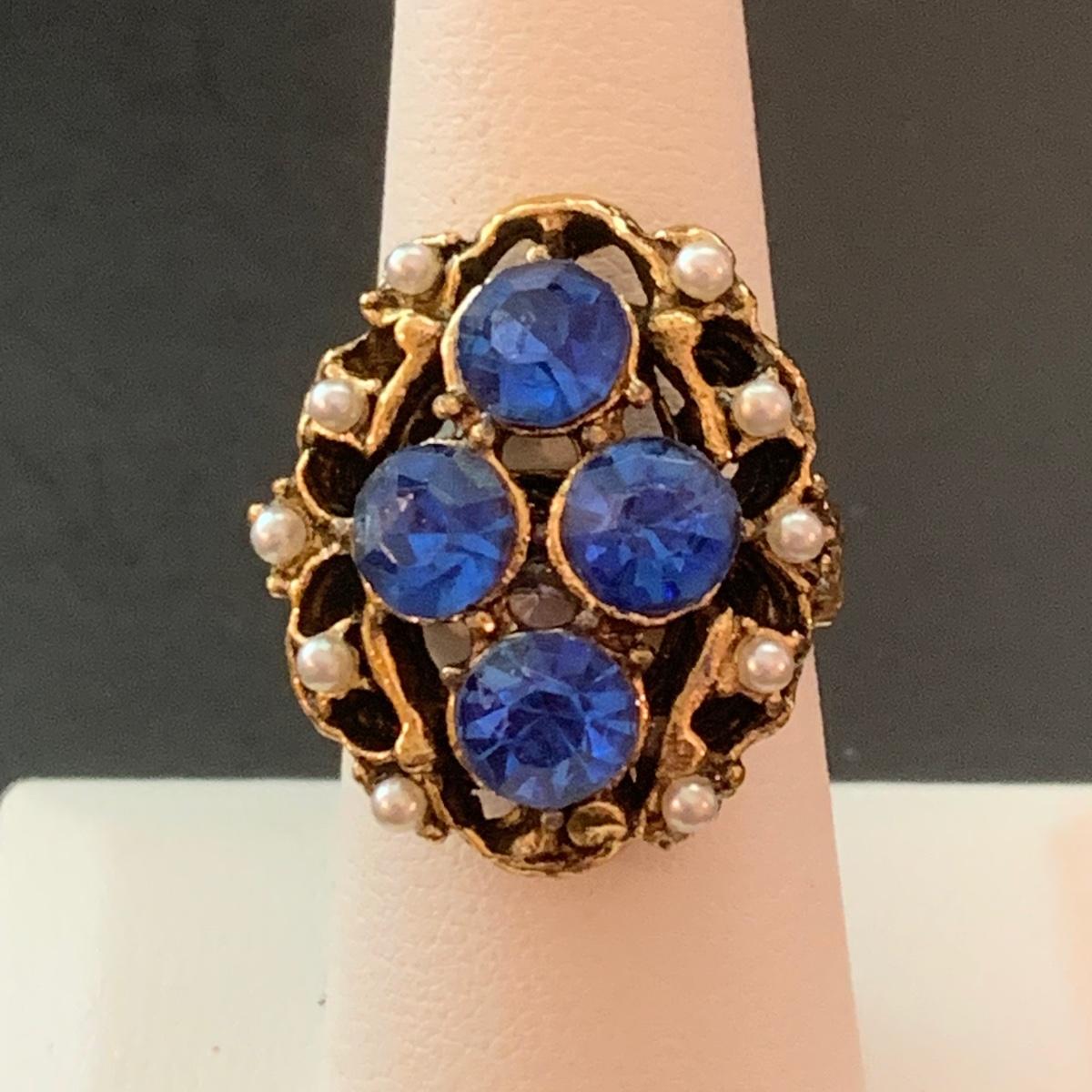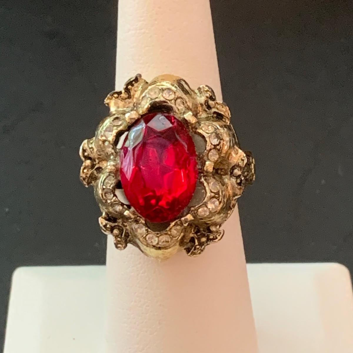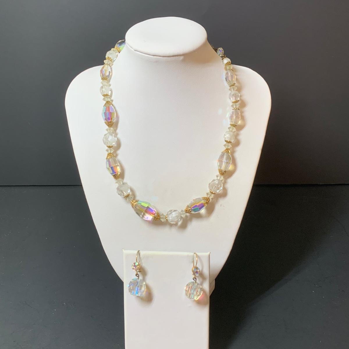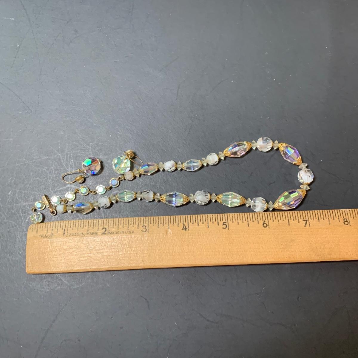 LOT 125: Crystal Aurora Borealis Necklace & Pierced Earring Set, Harriet Carter: Genuine Ruby Pin &  Emerald, 24K Electro Plated Pin, Adjustable Rings &  Gold Tone  Bracelet