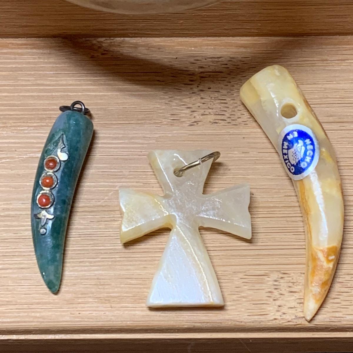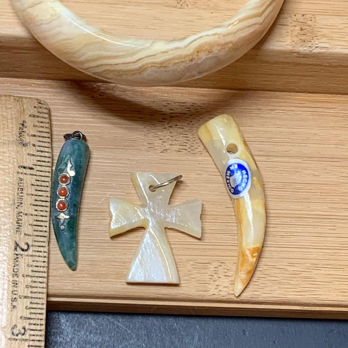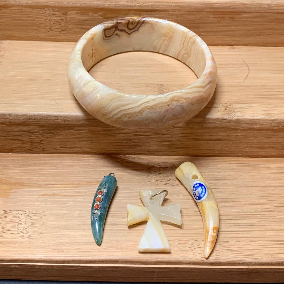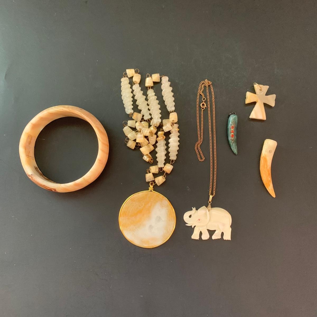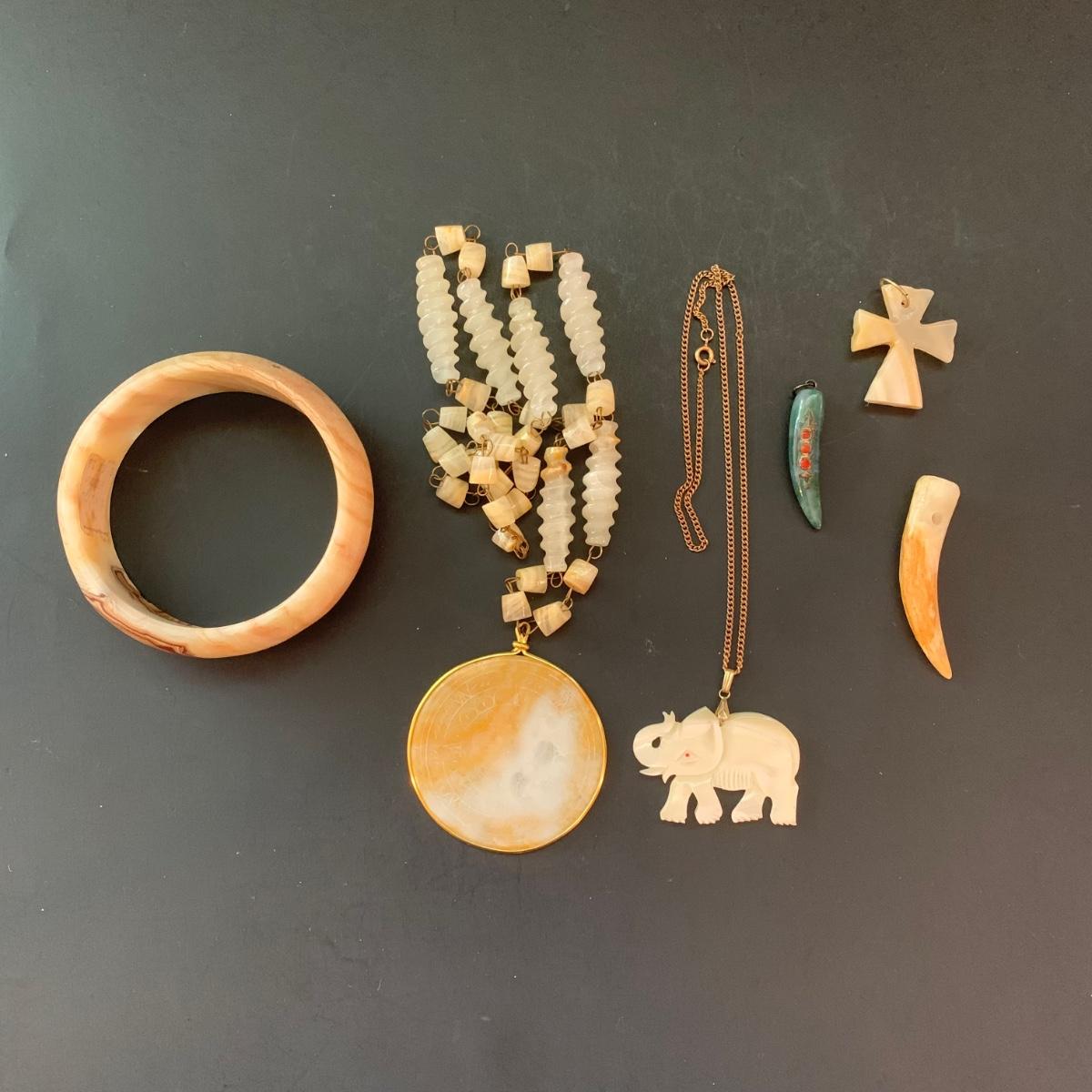 LOT 126: Carved Stone Collection: Pendant, Elephant, Cross, Bracelet & More