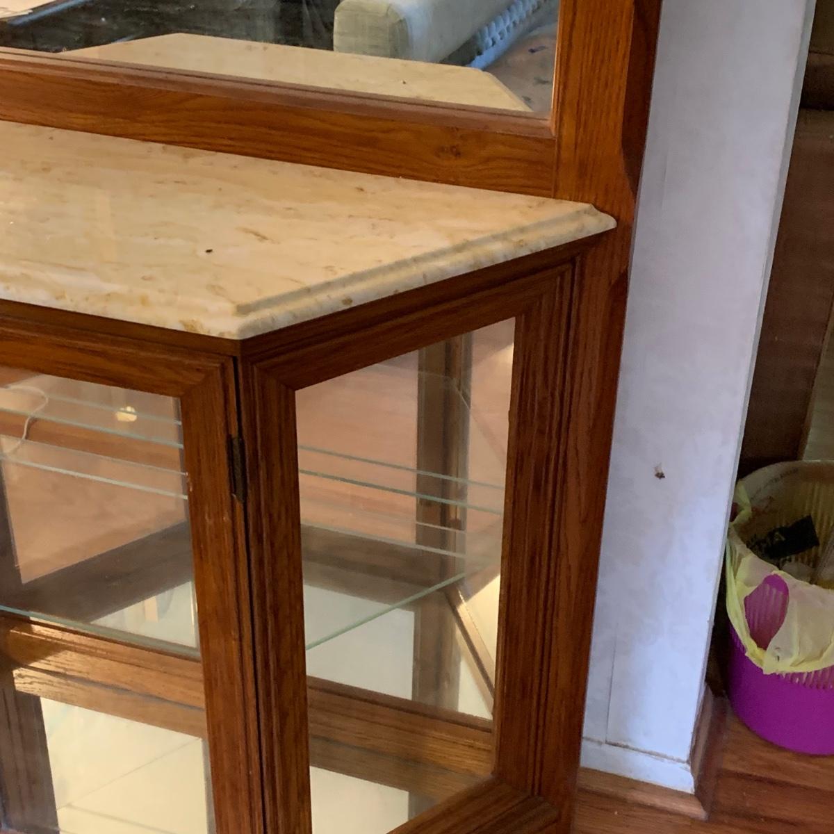 LOT 132: Mirror Hall Tree w/Lighted Curio Cabinet