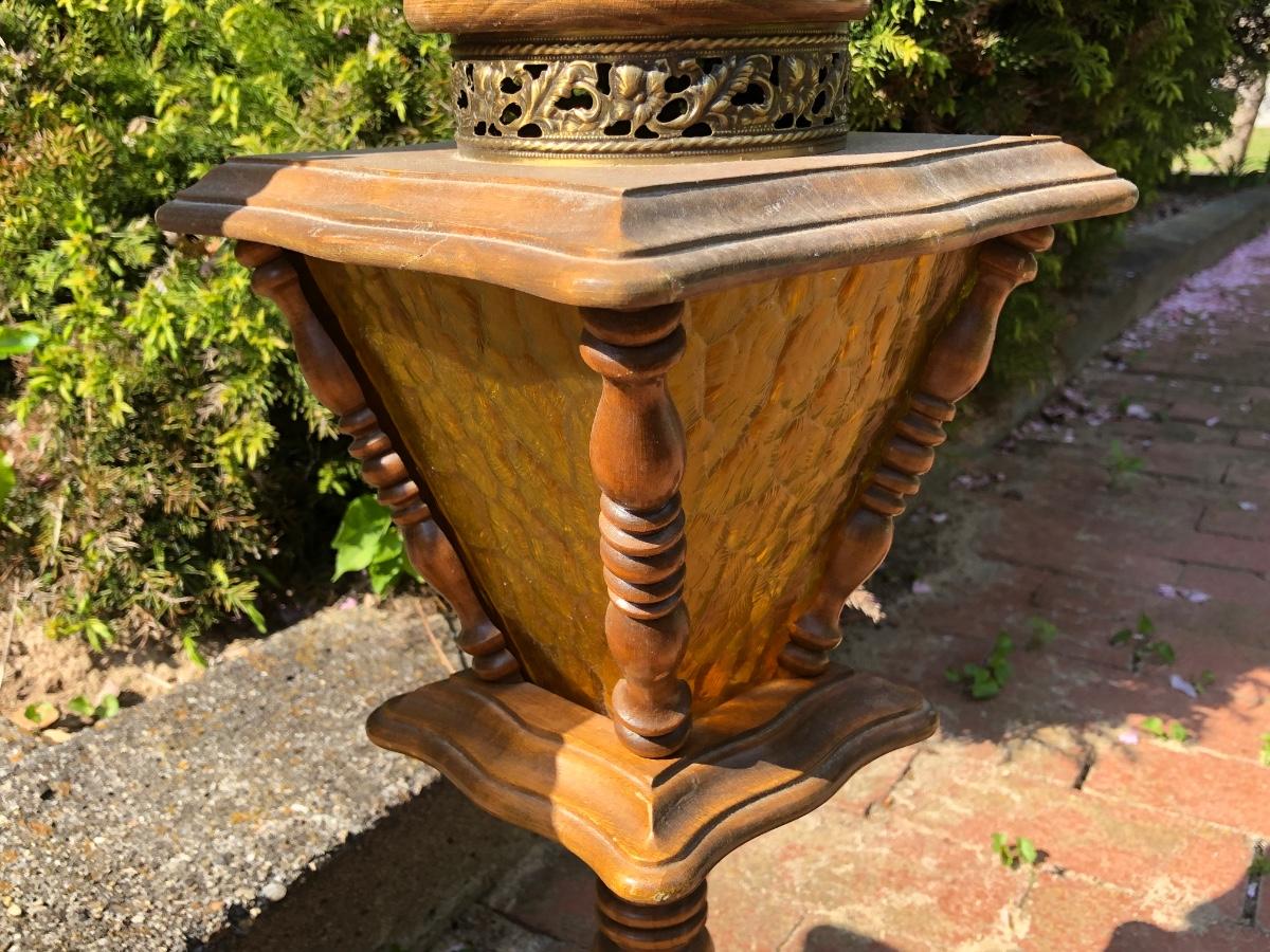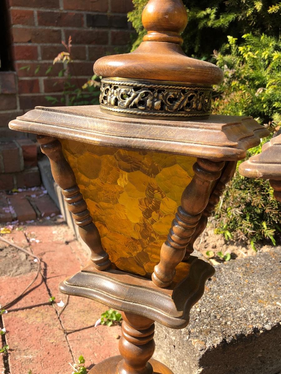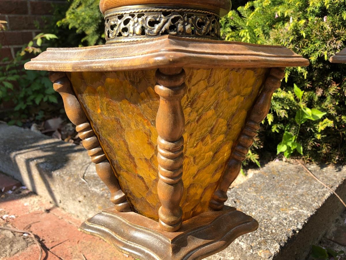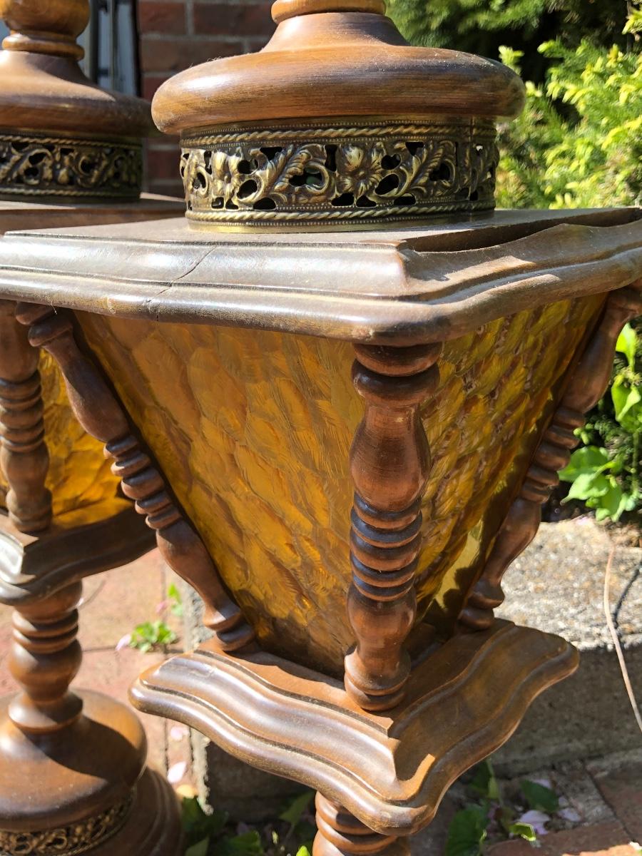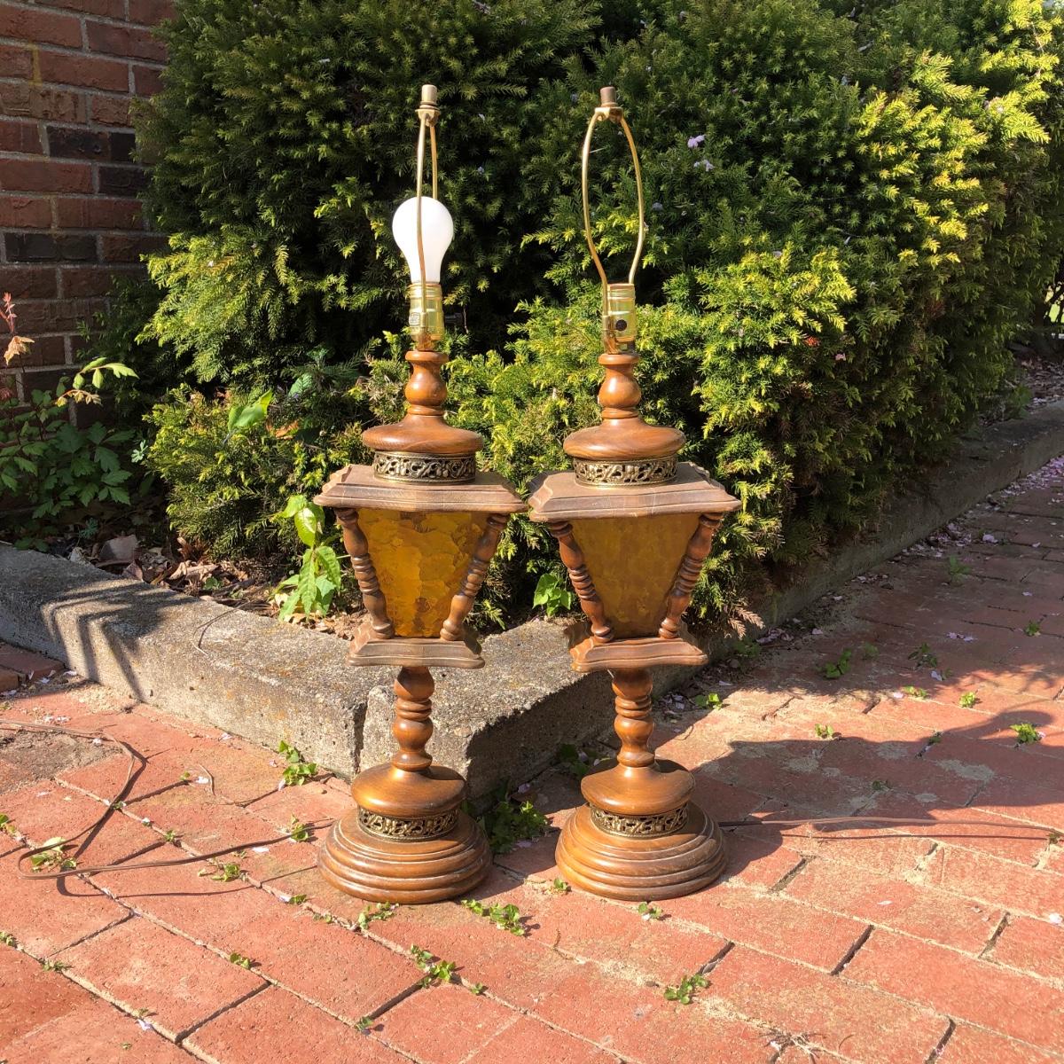 LOT 136M: Vintage Wooden Lamps w/ Amber Glass Windows