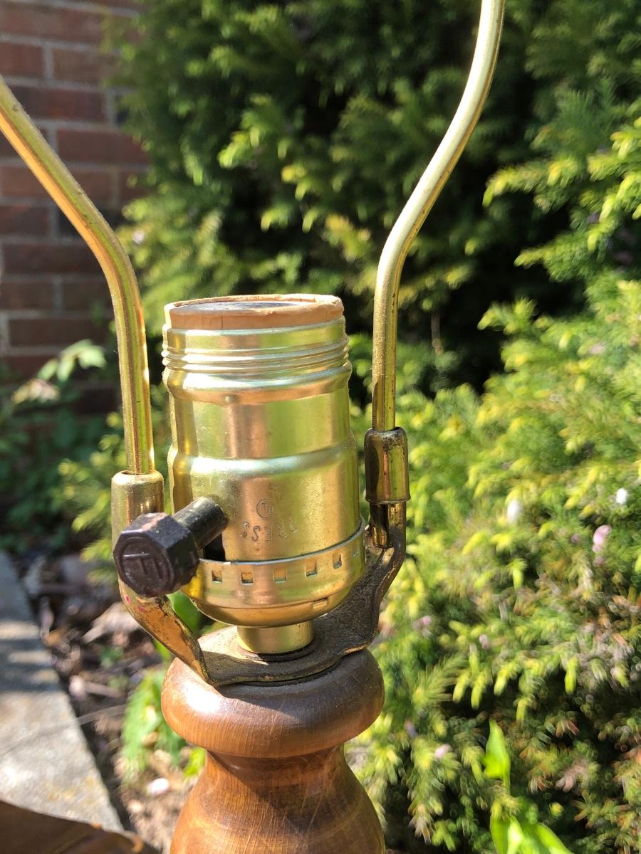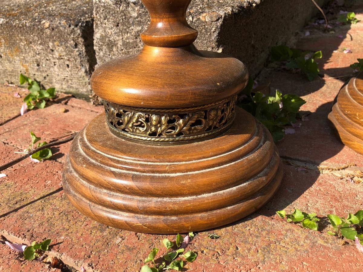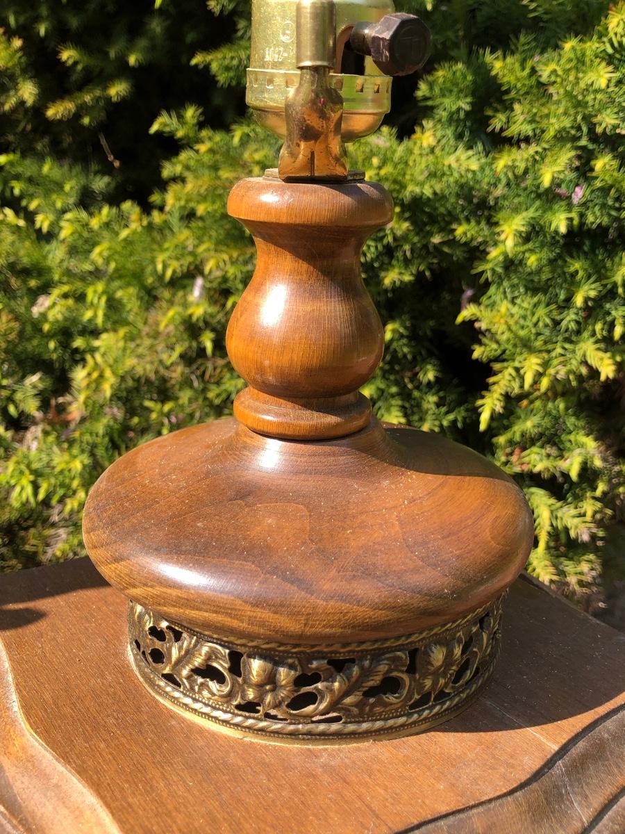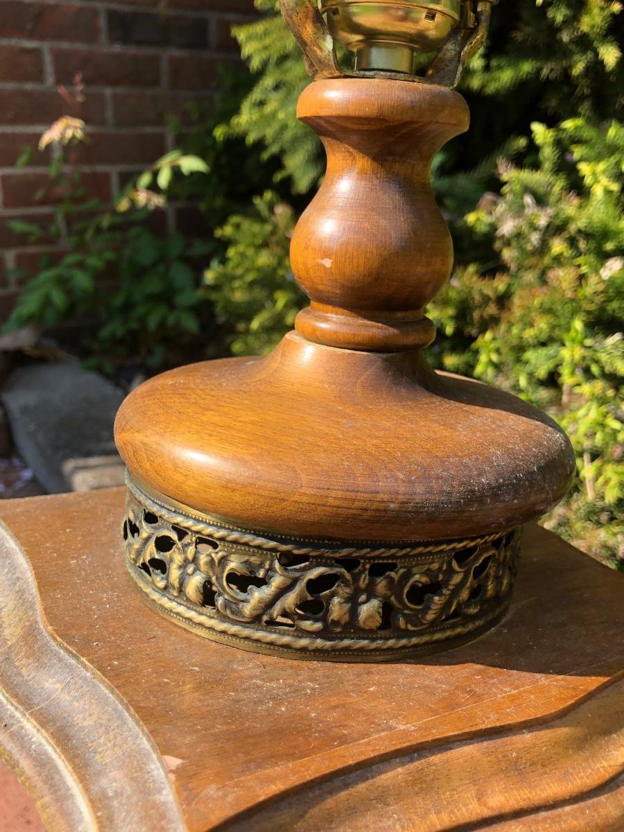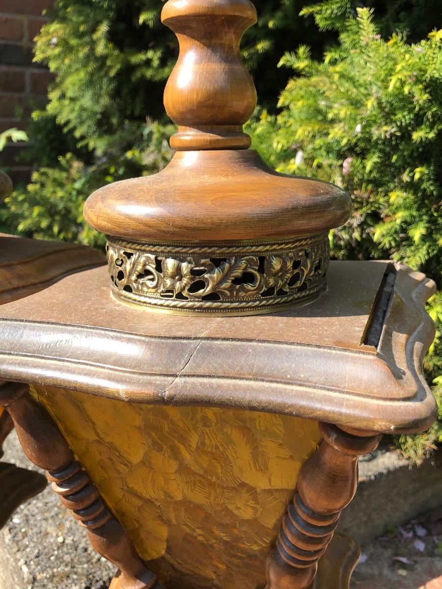 LOT 136M: Vintage Wooden Lamps w/ Amber Glass Windows