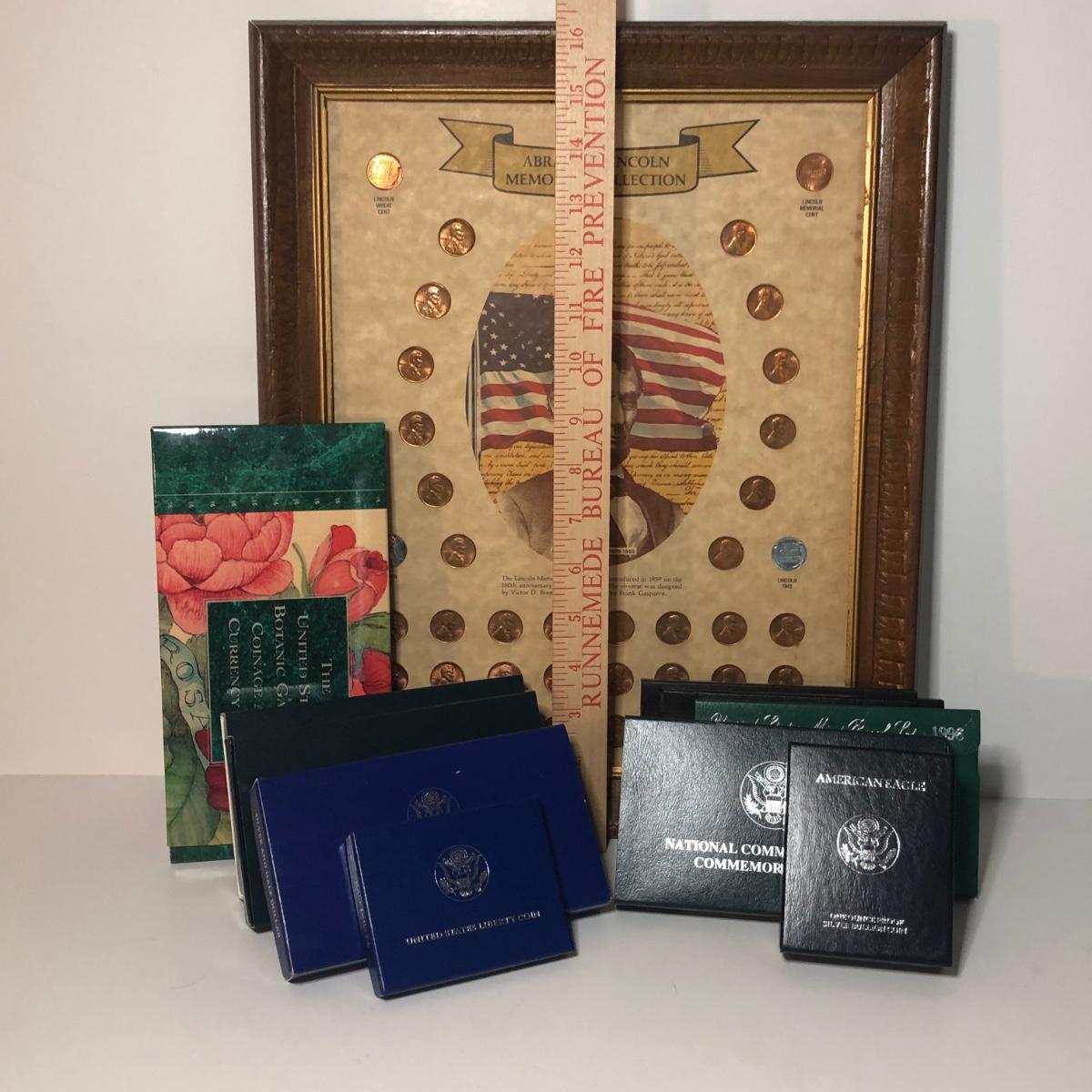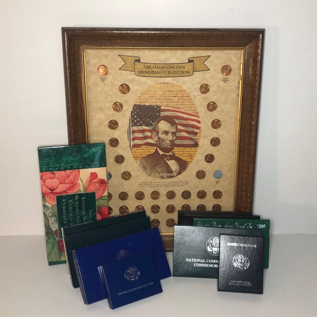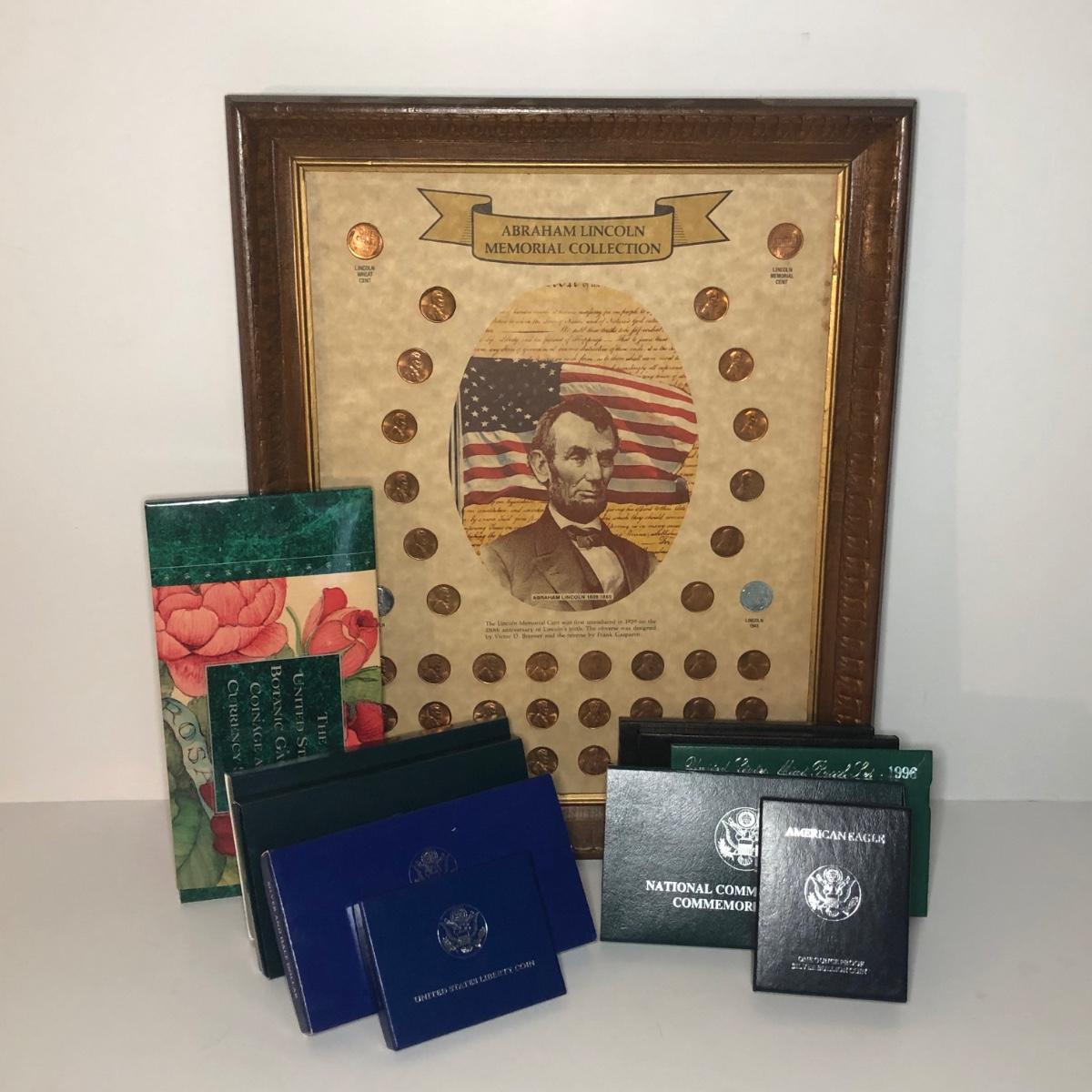 LOT 143M: Framed Abraham Lincoln Memorial Coin Collection, Botanical Garden Coins, Liberty Coins, 1996 & 1997 Coin Proof Sets