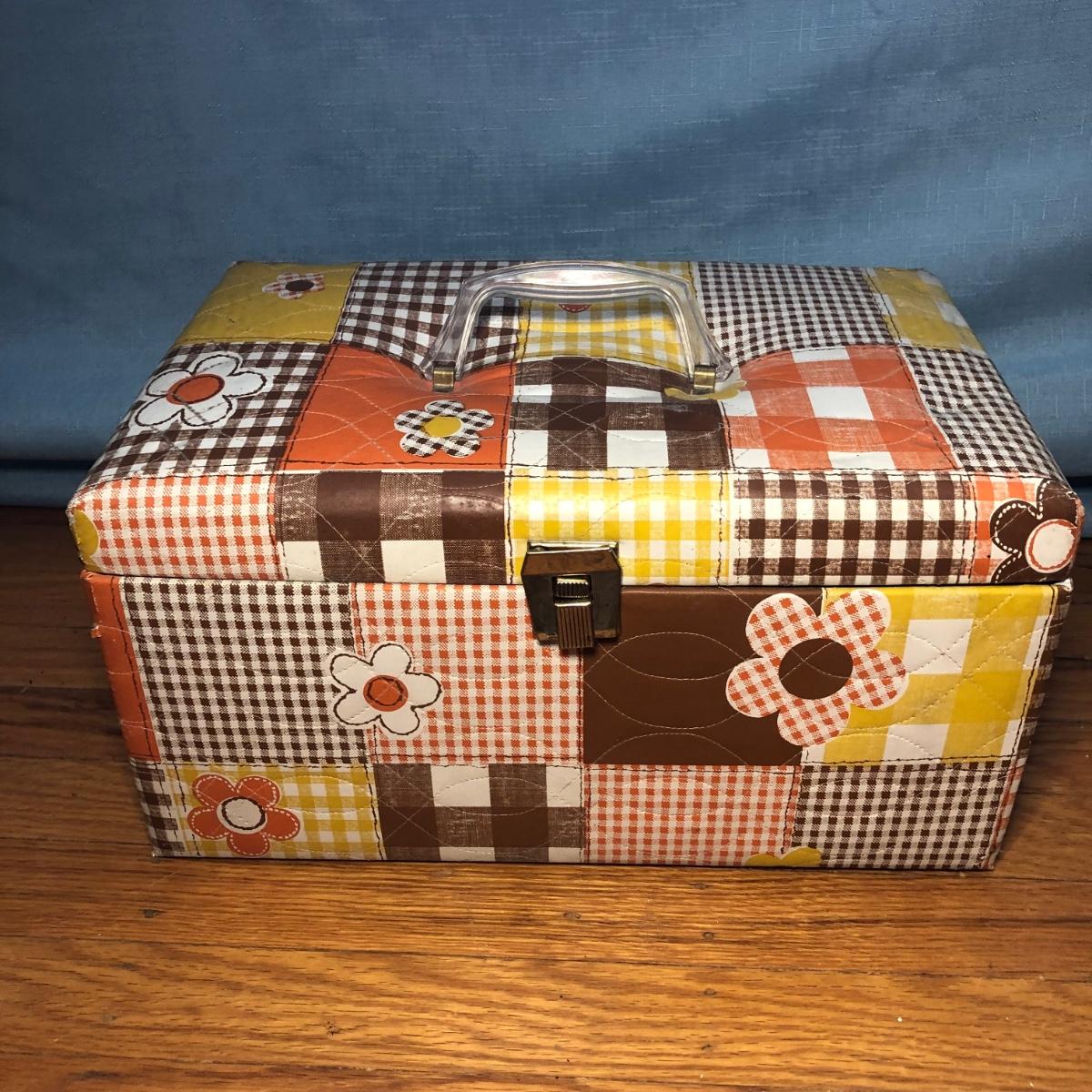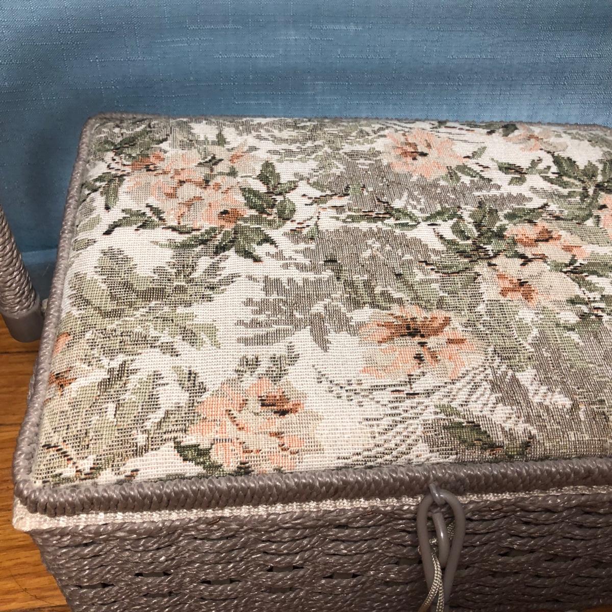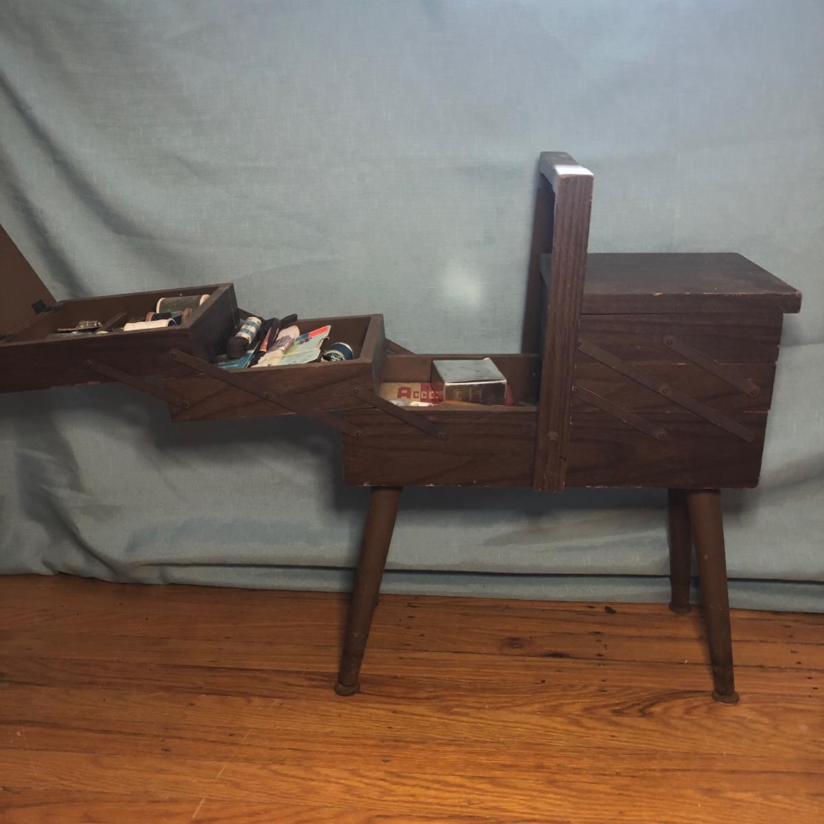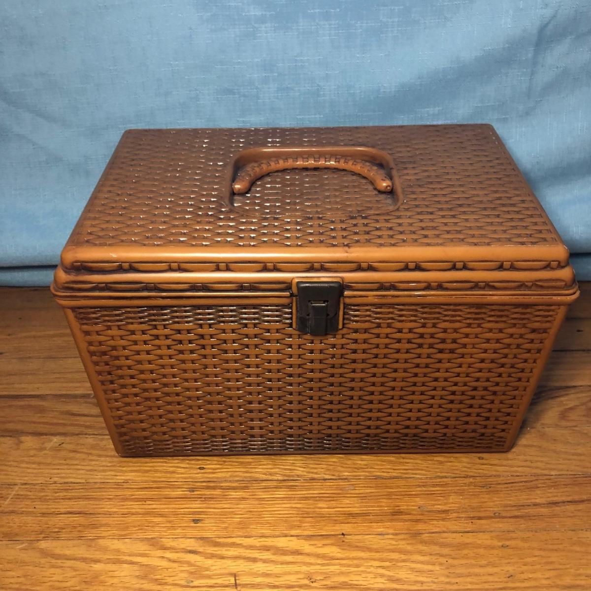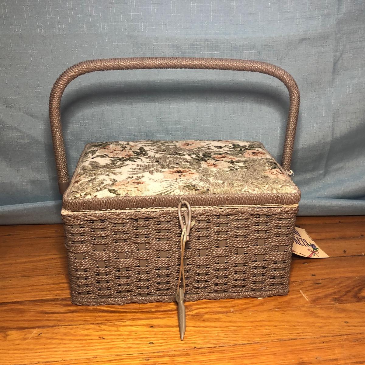 LOT 152M: Vintage Sewing Caddies w/ Supplies & Framed McCall's Poster