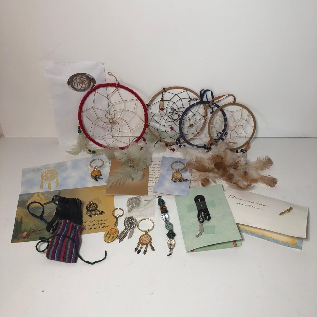 Includes dreamcatchers & Guatemalan Worry Dolls, dreamcatcher and feather pins and keychains. Please see all pictures as they are the best representation of the items. The pictures show condition, measurements if taken, and what is included in the lot. Due to the large amount that we photograph and the time frame, we are not always able to take measurements. All items unless noted, are pre-owned and have been used. If you purchased furniture, you must bring help. We do not allow one person to carry large furniture out on their own. Bring help, tools and a truck for the safety of our client’s homes, and your personal safety. Any damages that result to the property including walls, and floors due to moving of the furniture will be charged to the buyer. Company policy. Thank you.