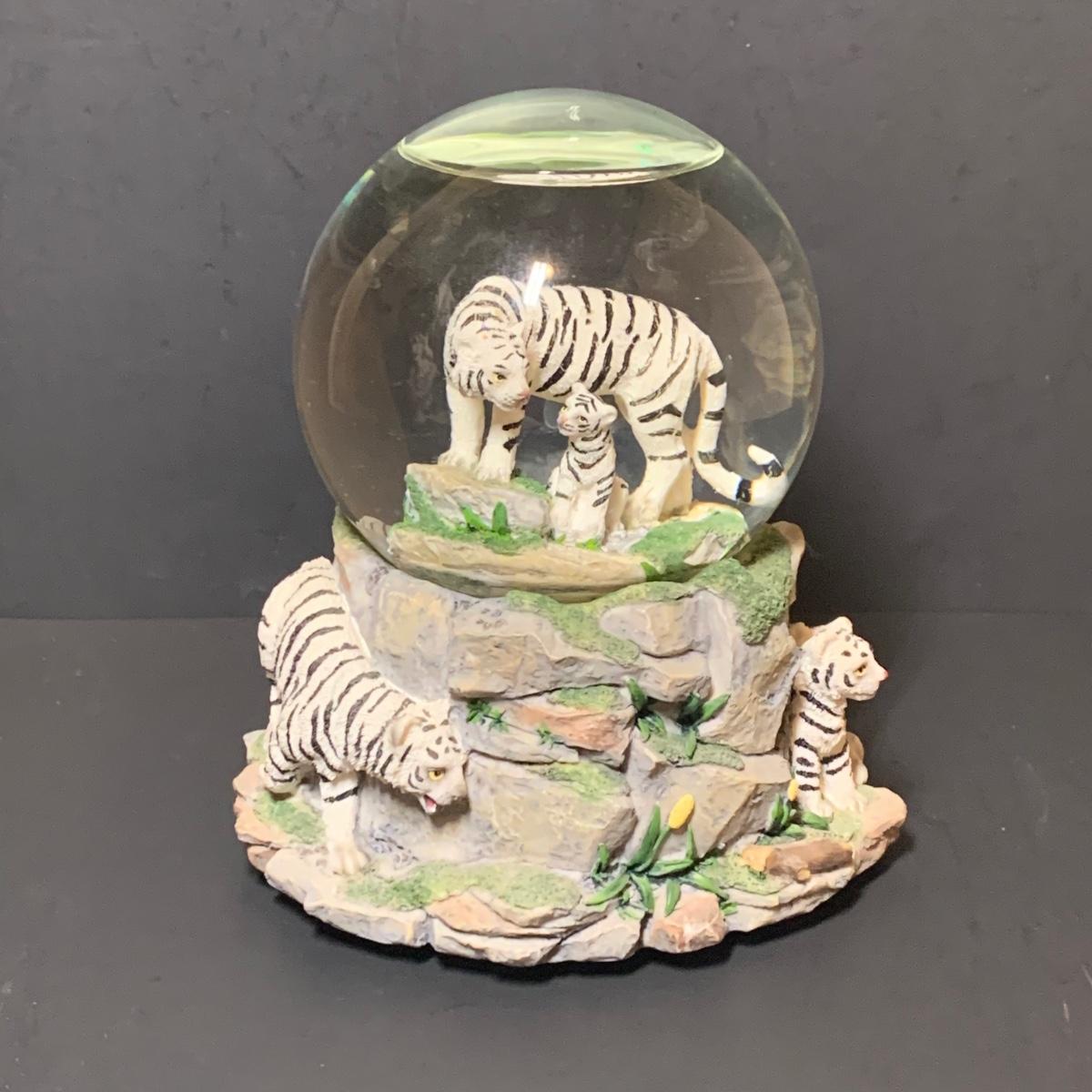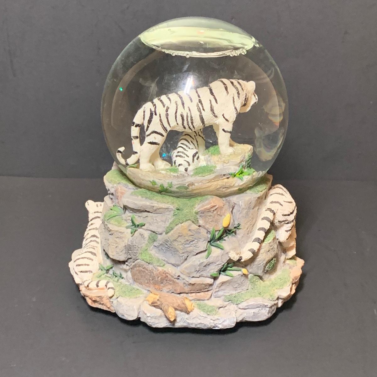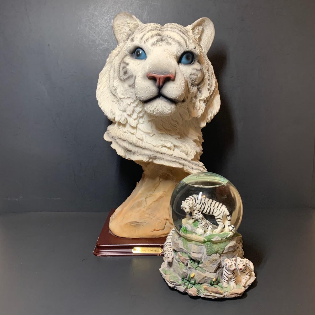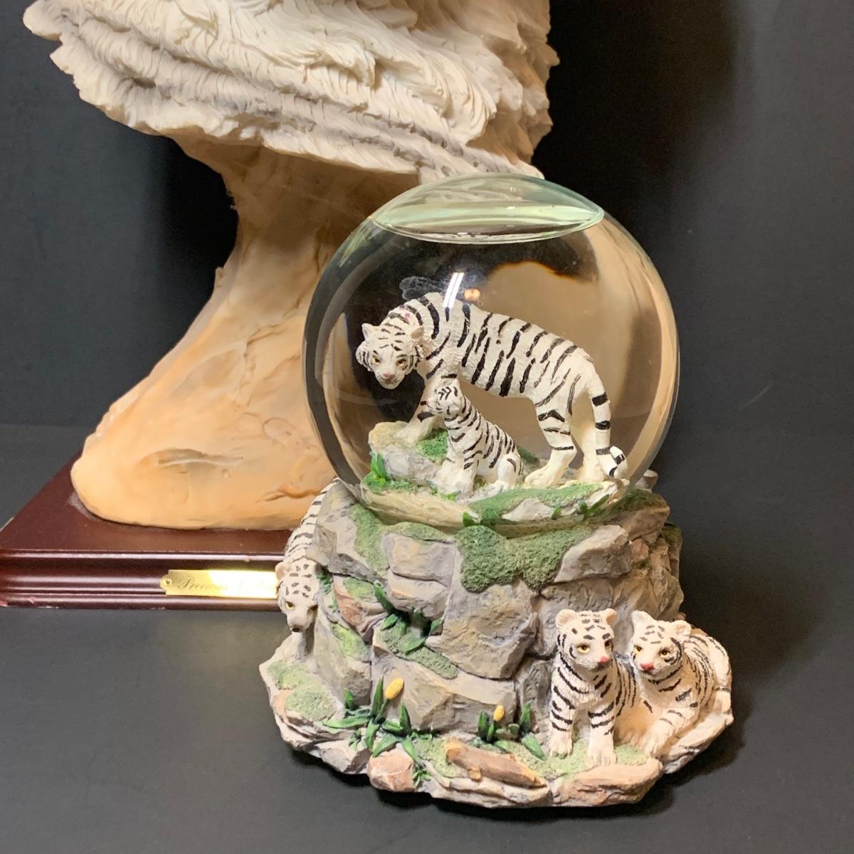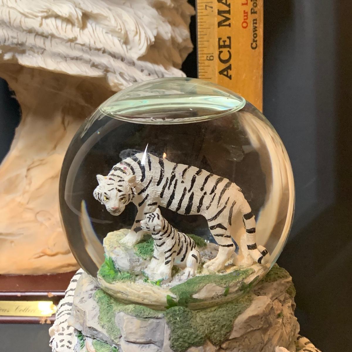 LOT 12: Resin "Precious Collection" White Tiger Sculpture & Musical White Tiger Snowglobe