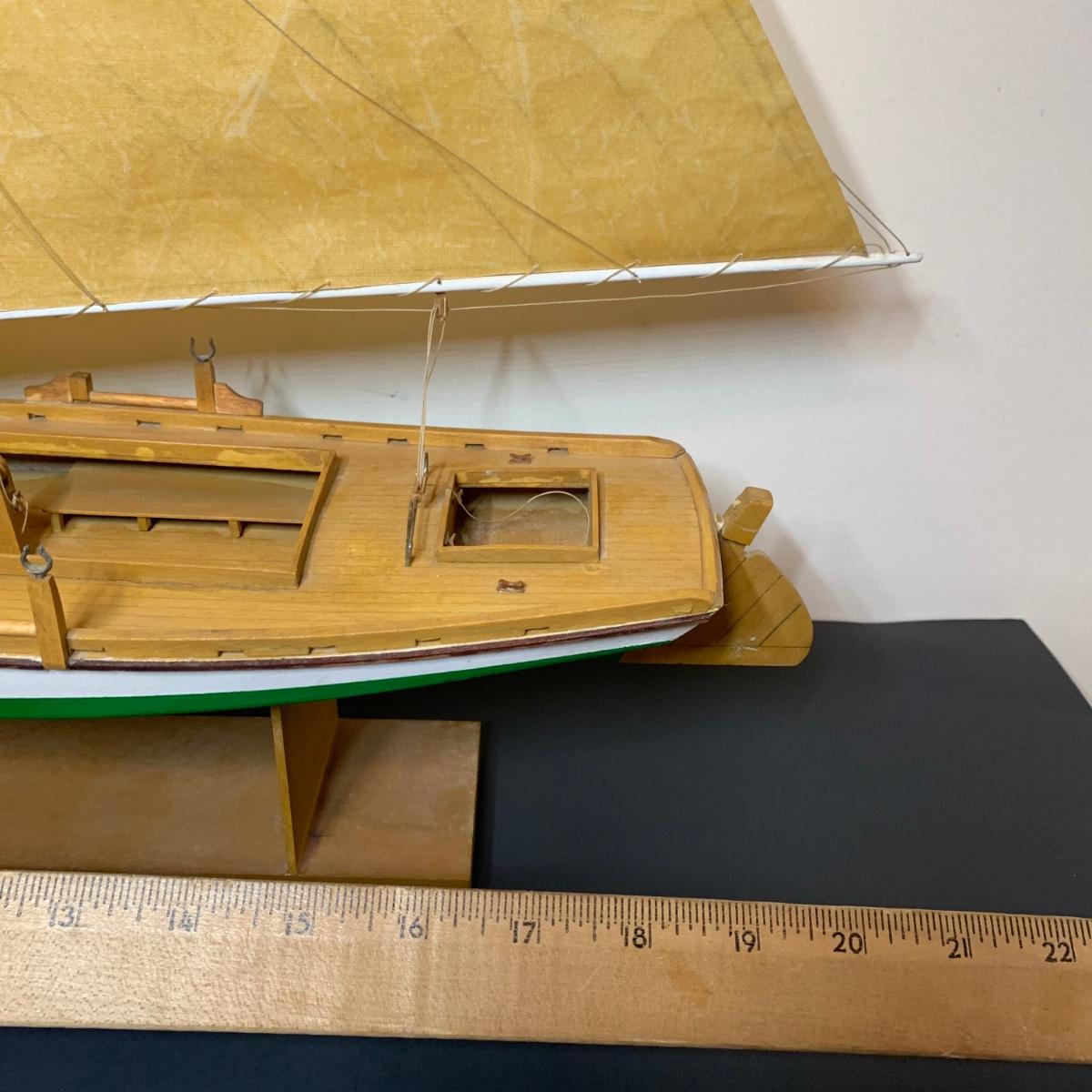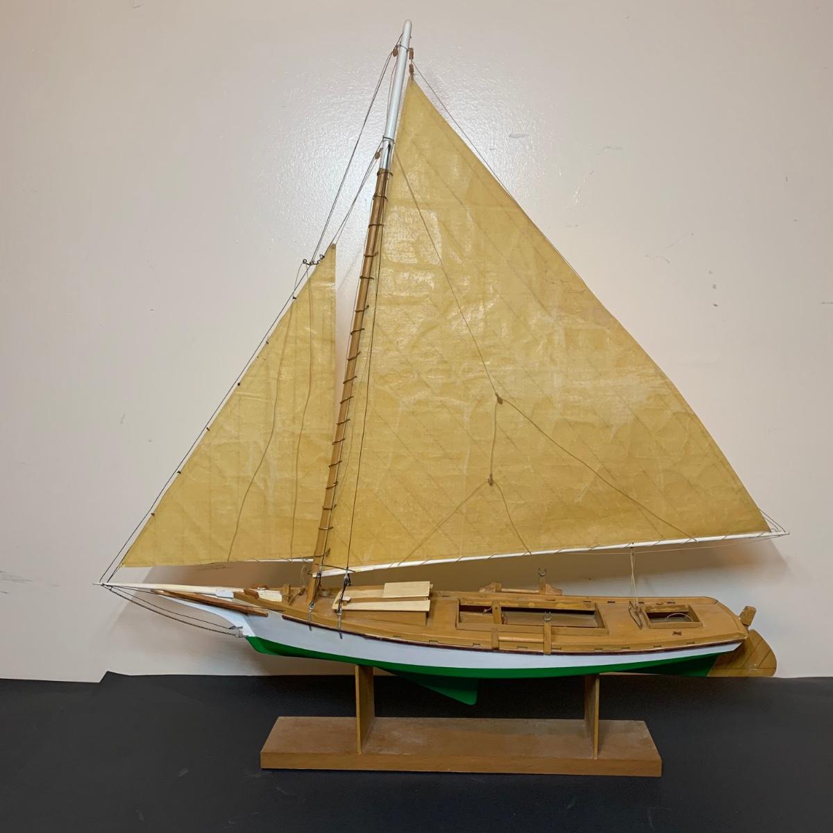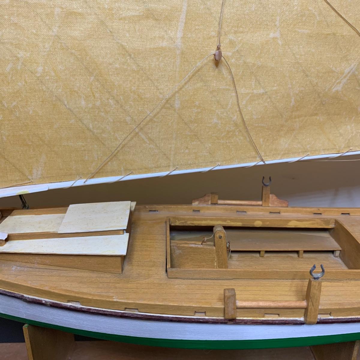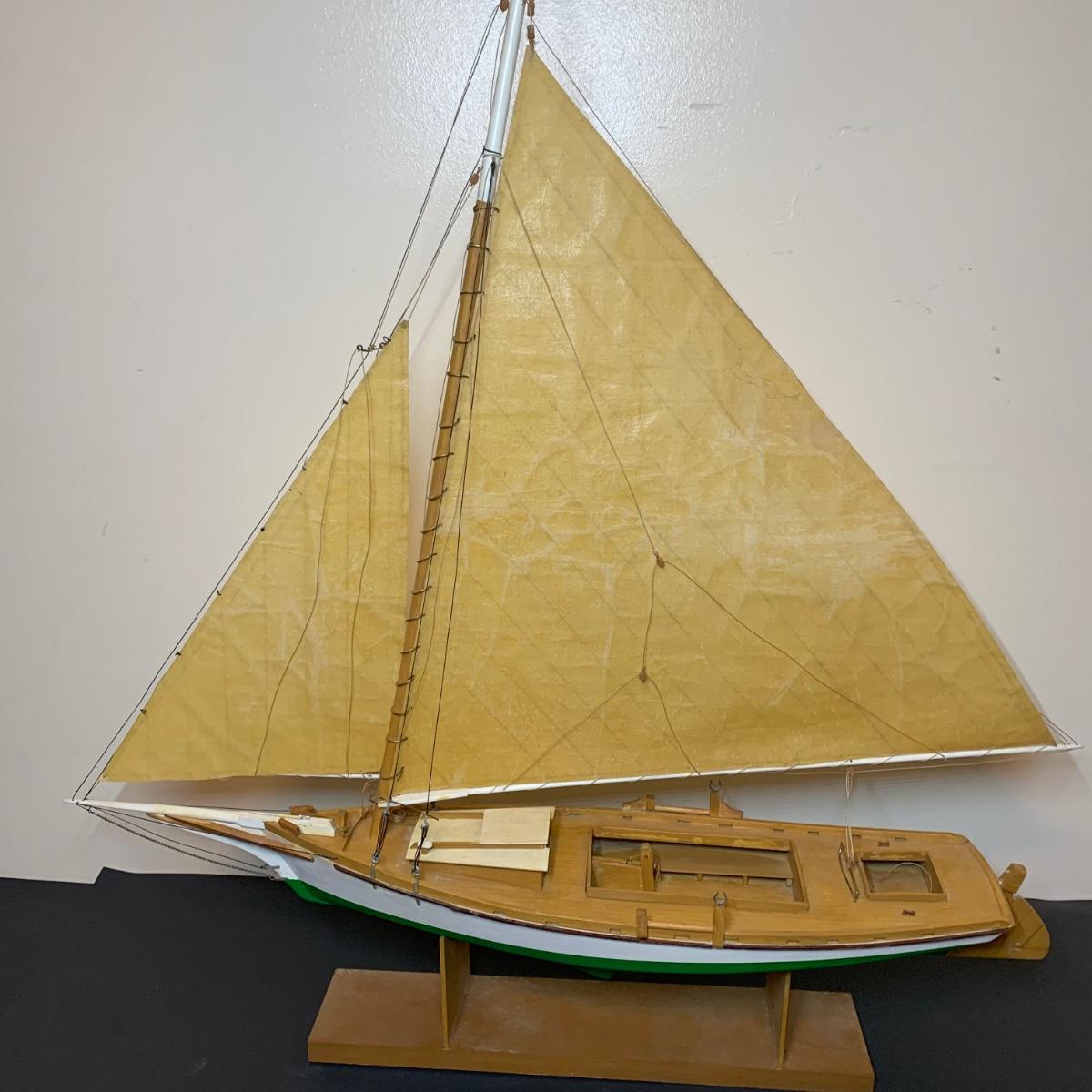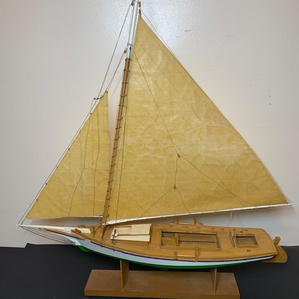 LOT 21: Vintage Model Wooden Sale Boat Completed