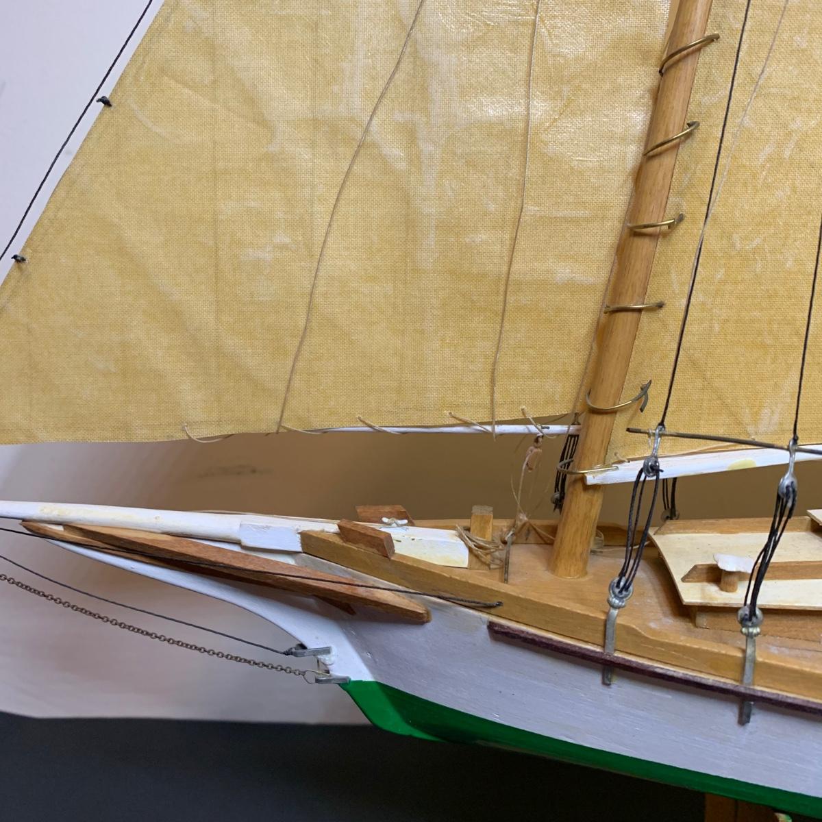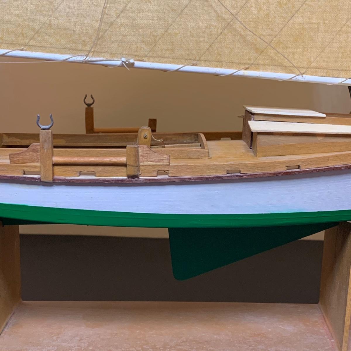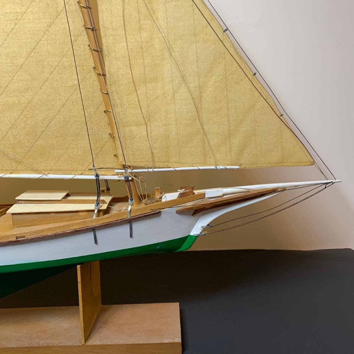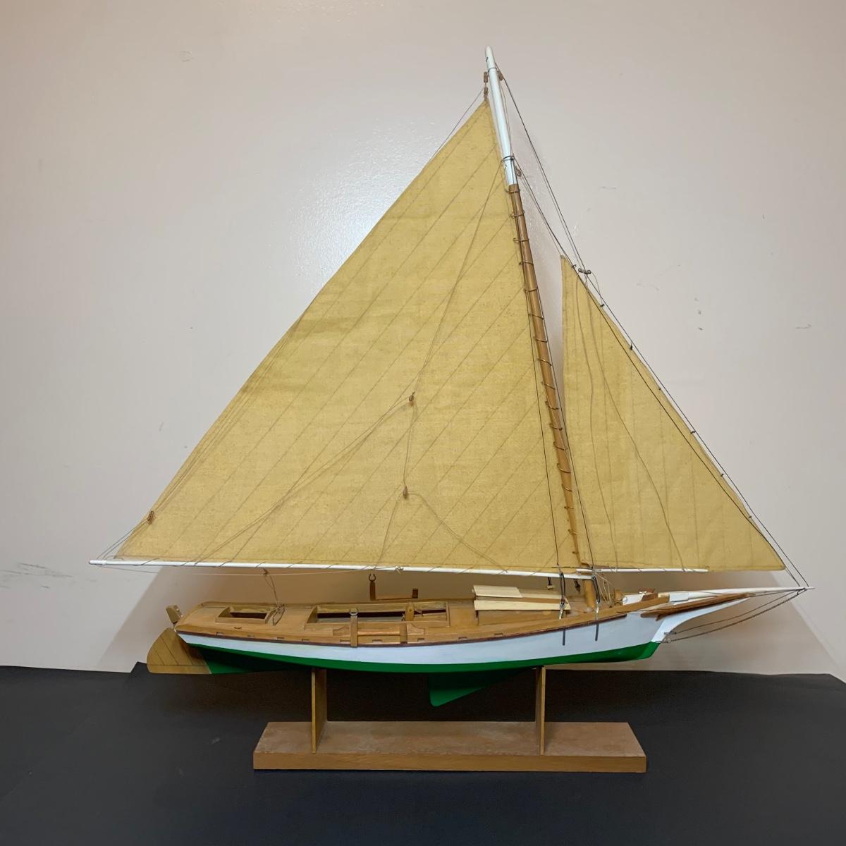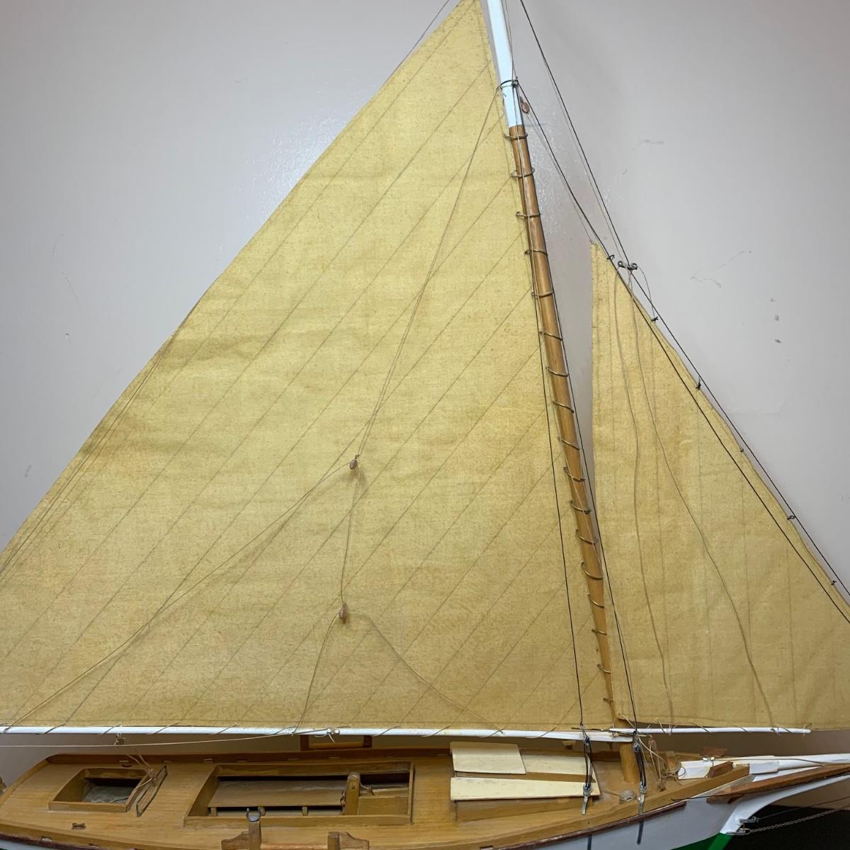 LOT 21: Vintage Model Wooden Sale Boat Completed