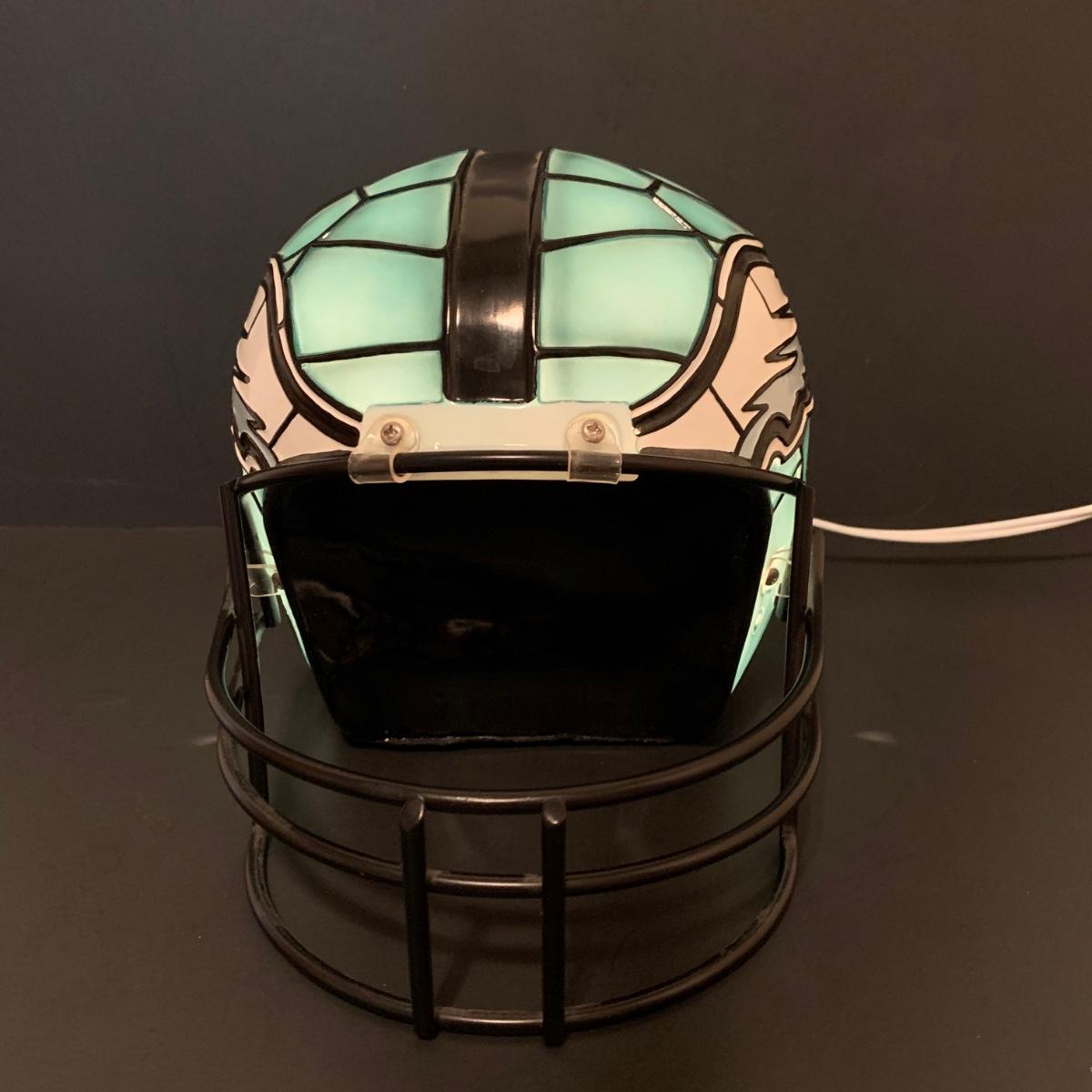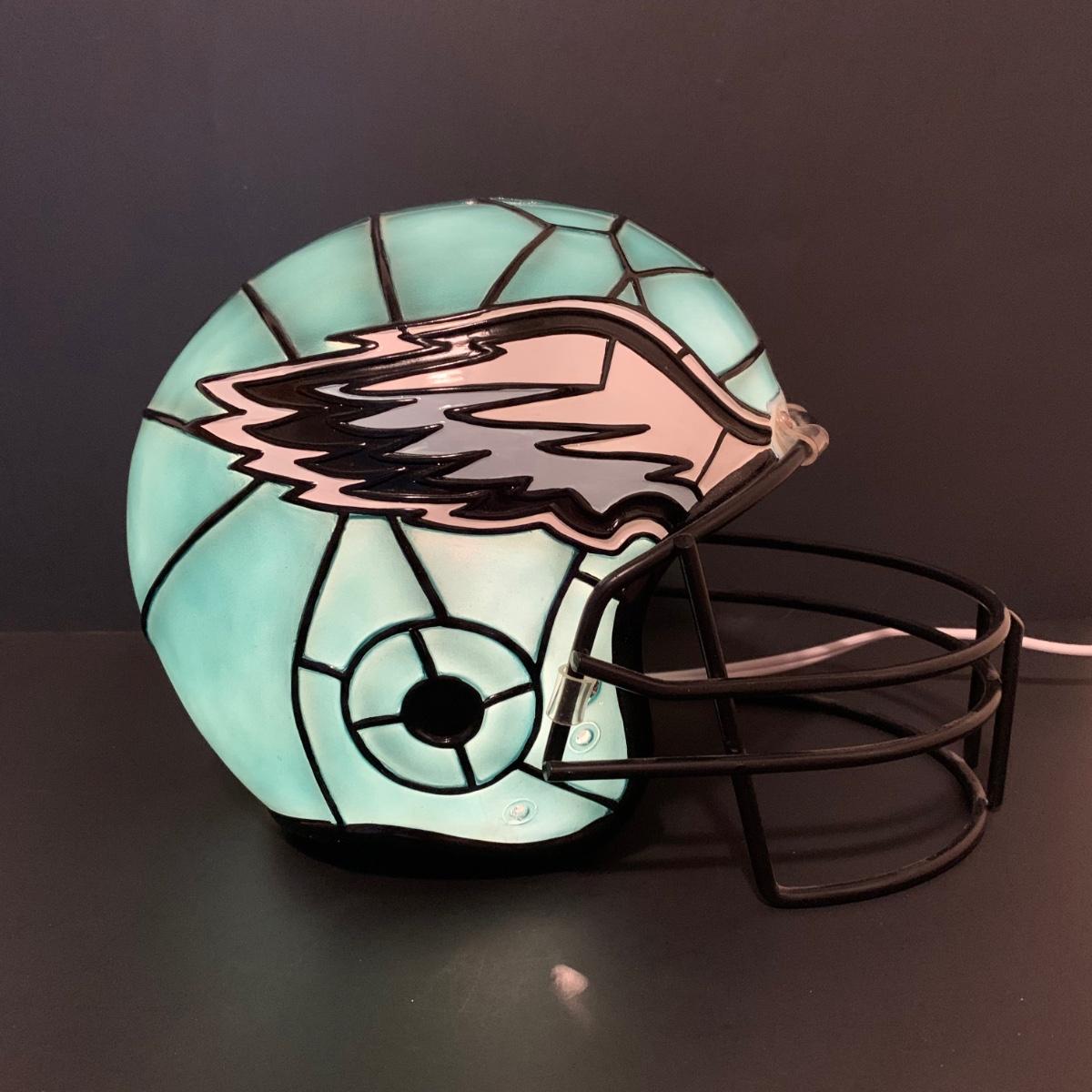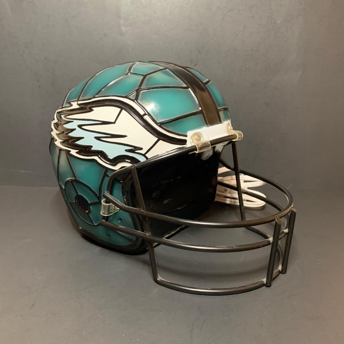 LOT 26: Bradford Exchange -Philadelphia Eagels Football Helmet Shaped Stained Glass Style Accent Lamp