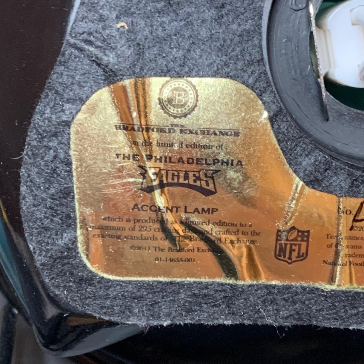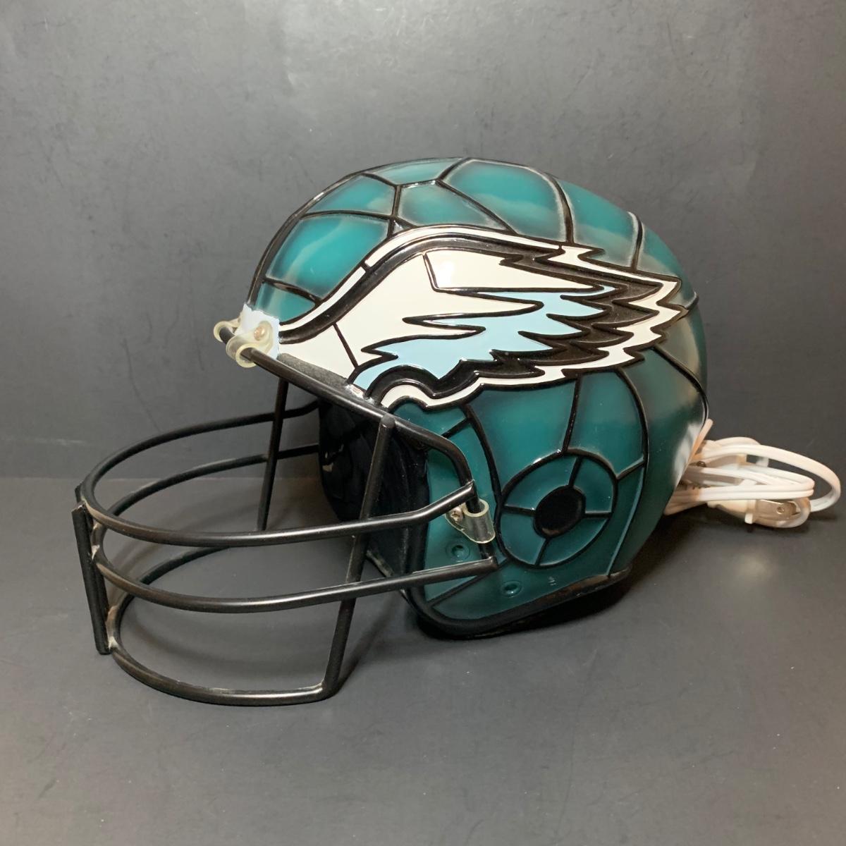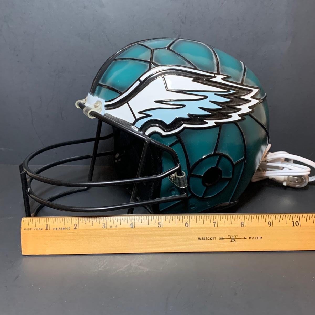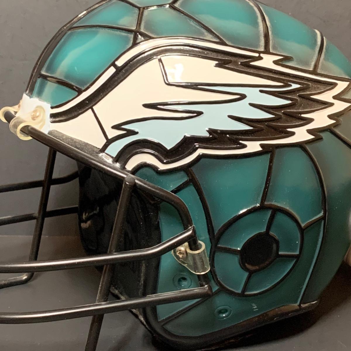 LOT 26: Bradford Exchange -Philadelphia Eagels Football Helmet Shaped Stained Glass Style Accent Lamp