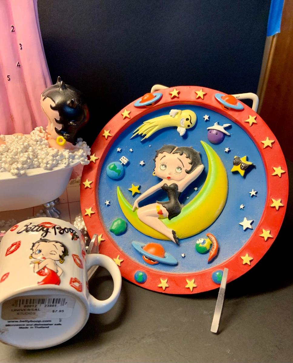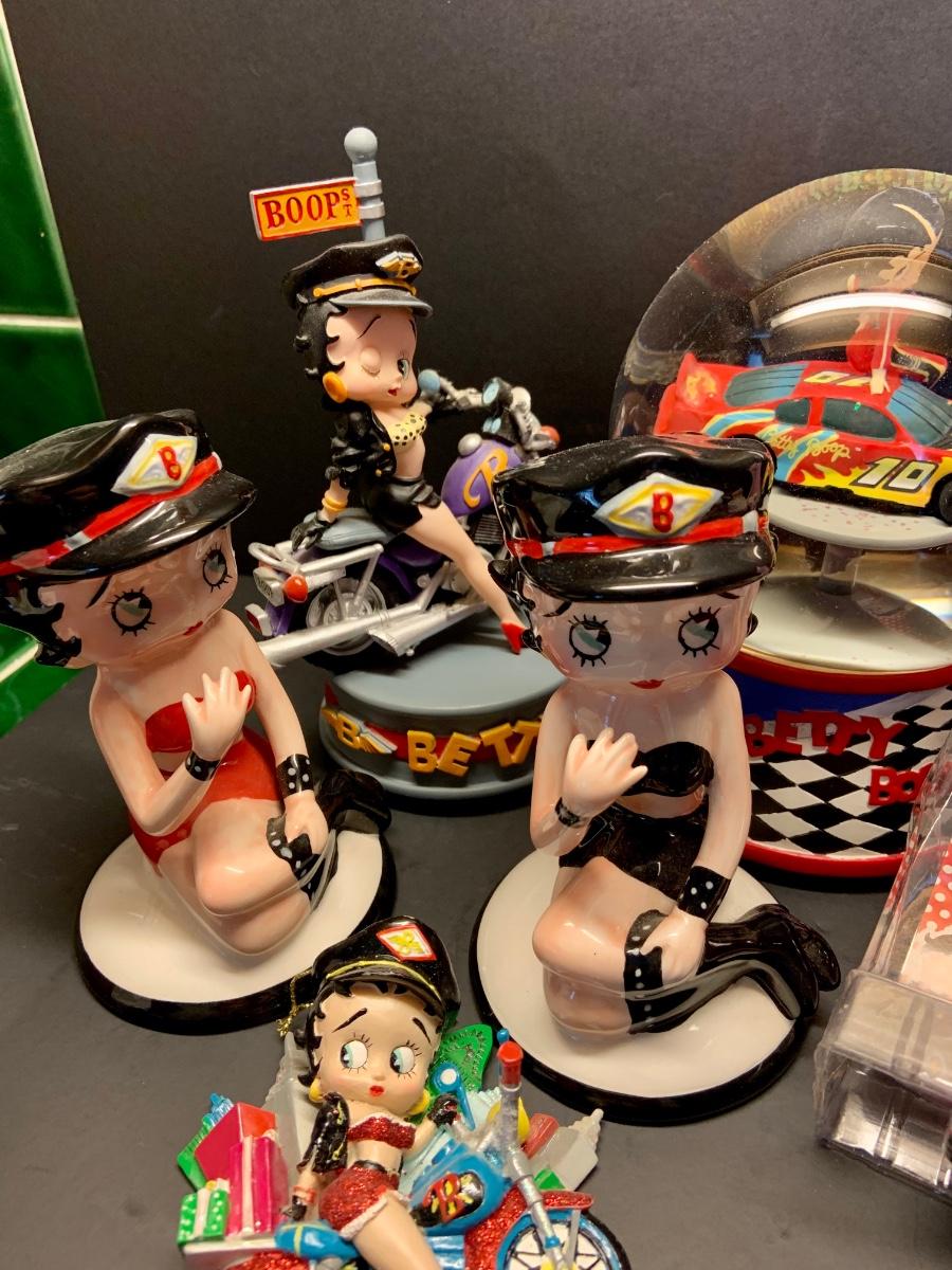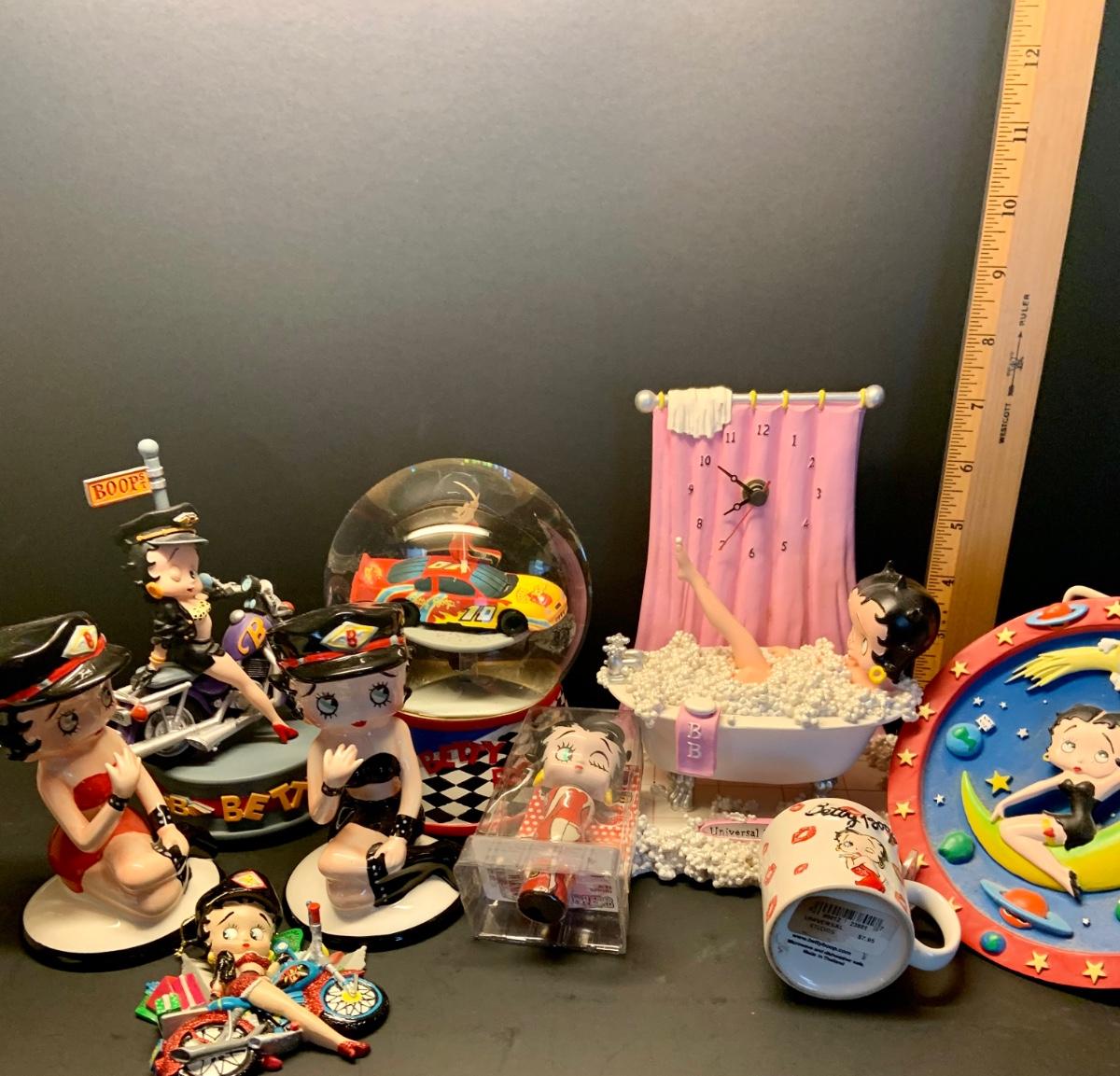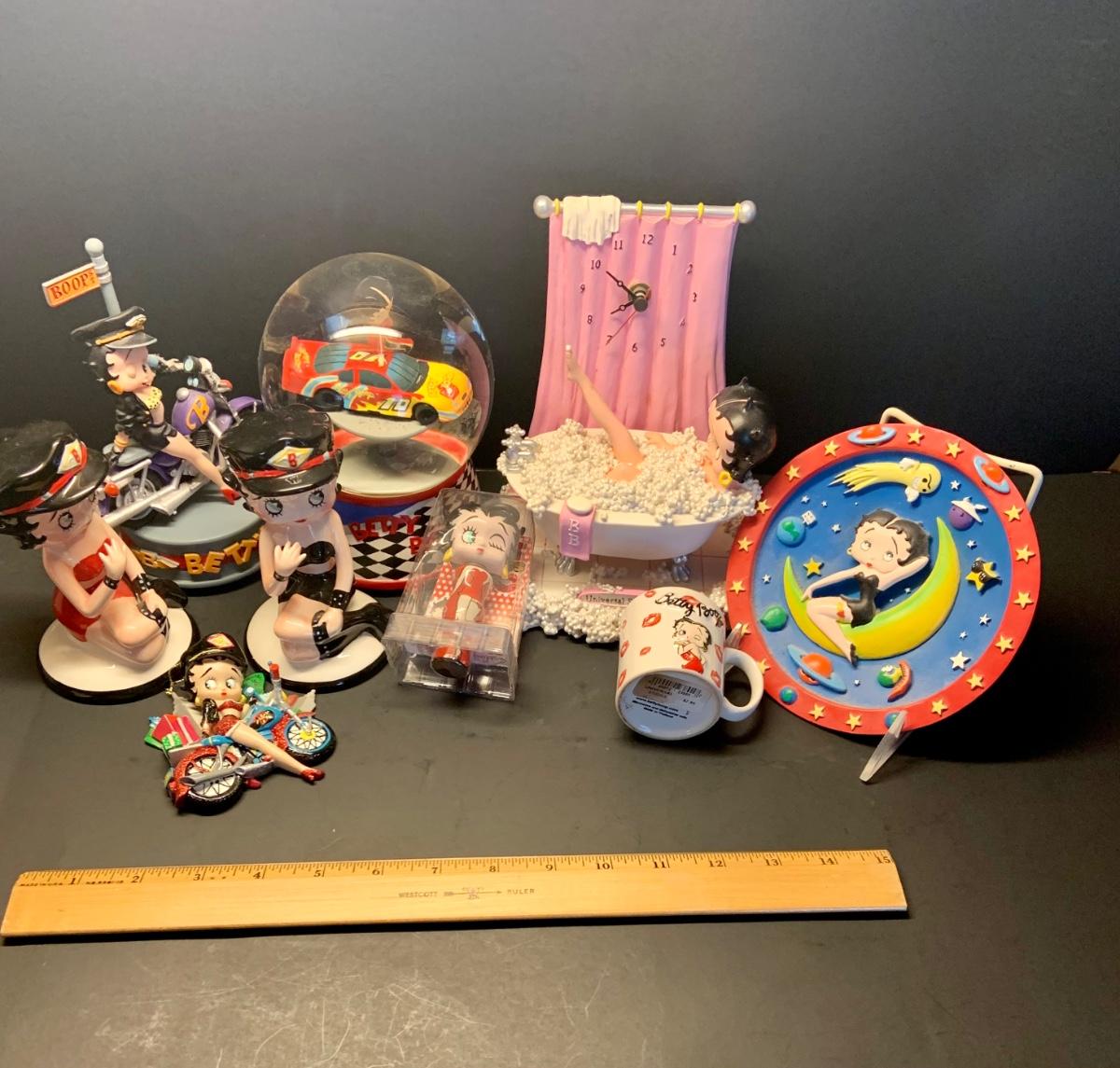 LOT:38G: Betty Boop Universal Studios Bubble Bath Clock, Salt & Pepper Shaker Music Box, Water Globe and More.