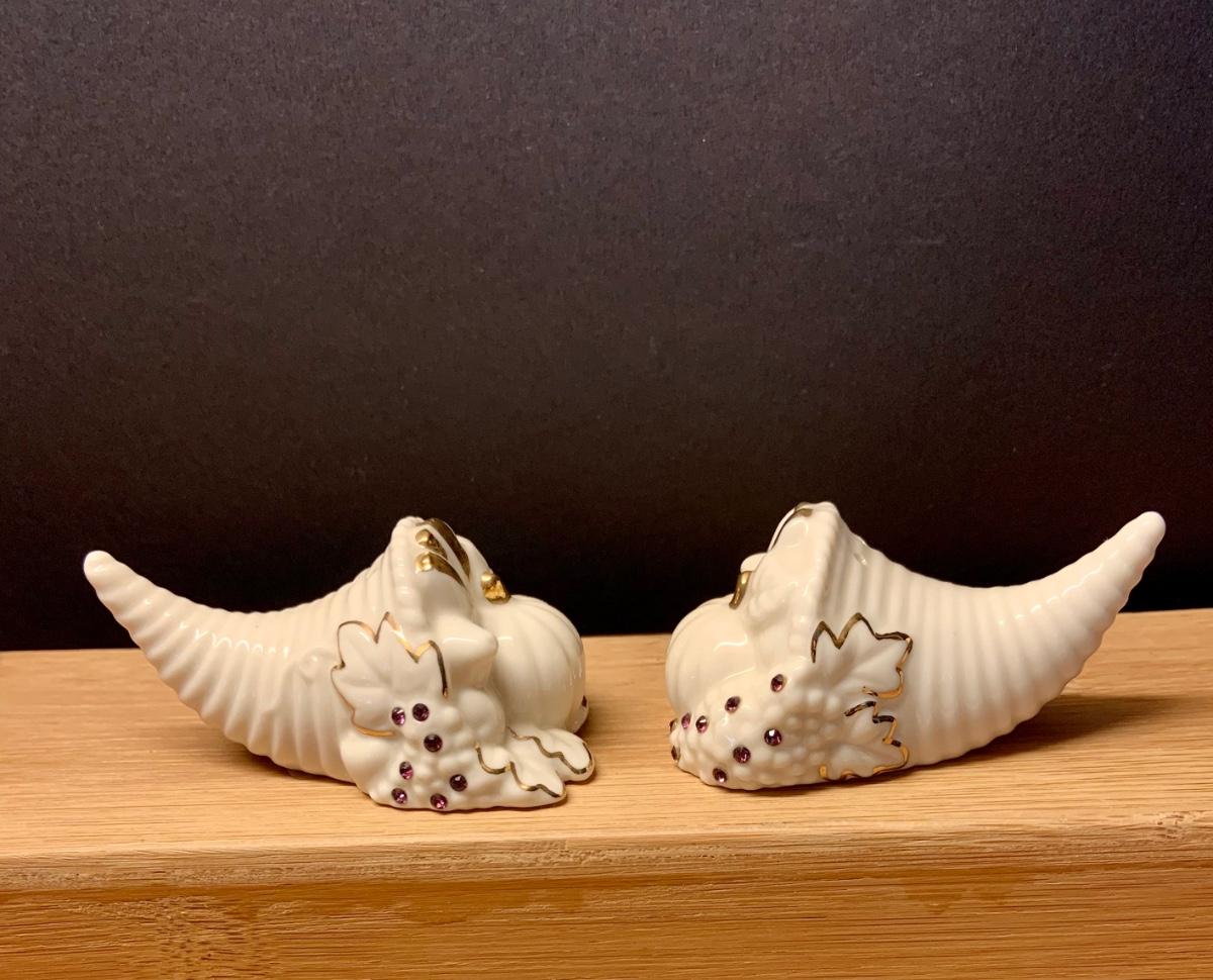 LOT:39G: Lenox Jeweled Thanksgiving Salt and Pepper Shakers