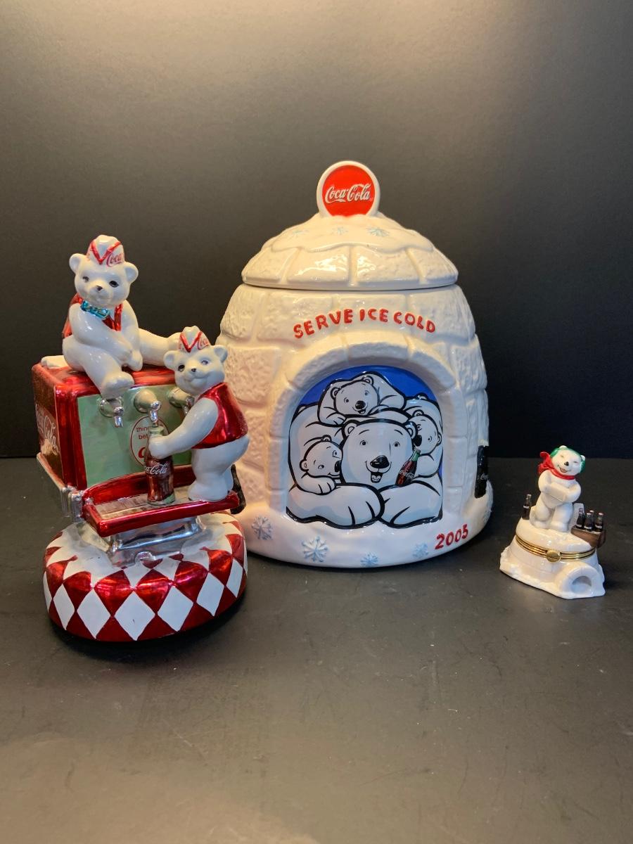 LOT:43G: Coca - Cola Cookie Jar, Music Box and Trinket Box