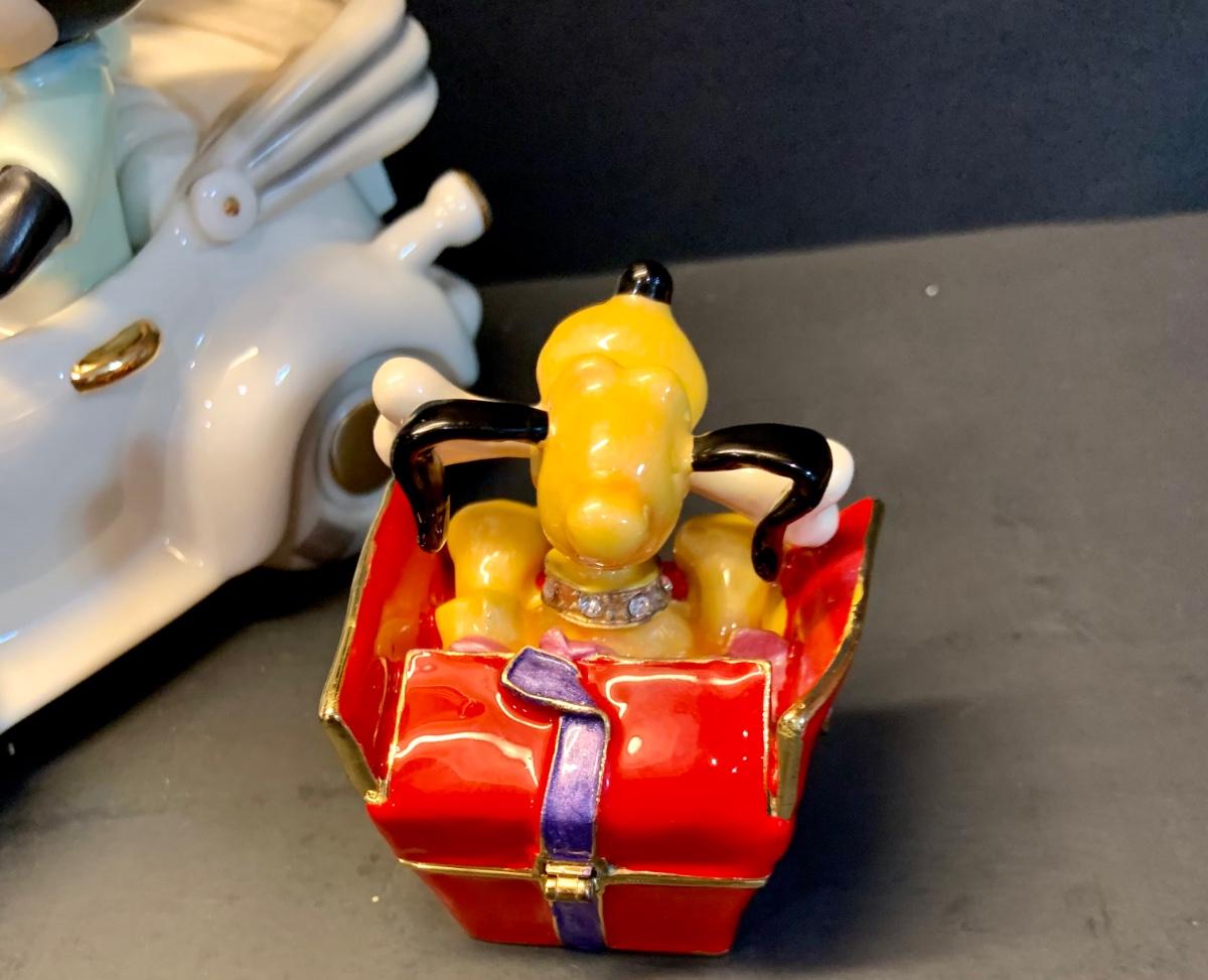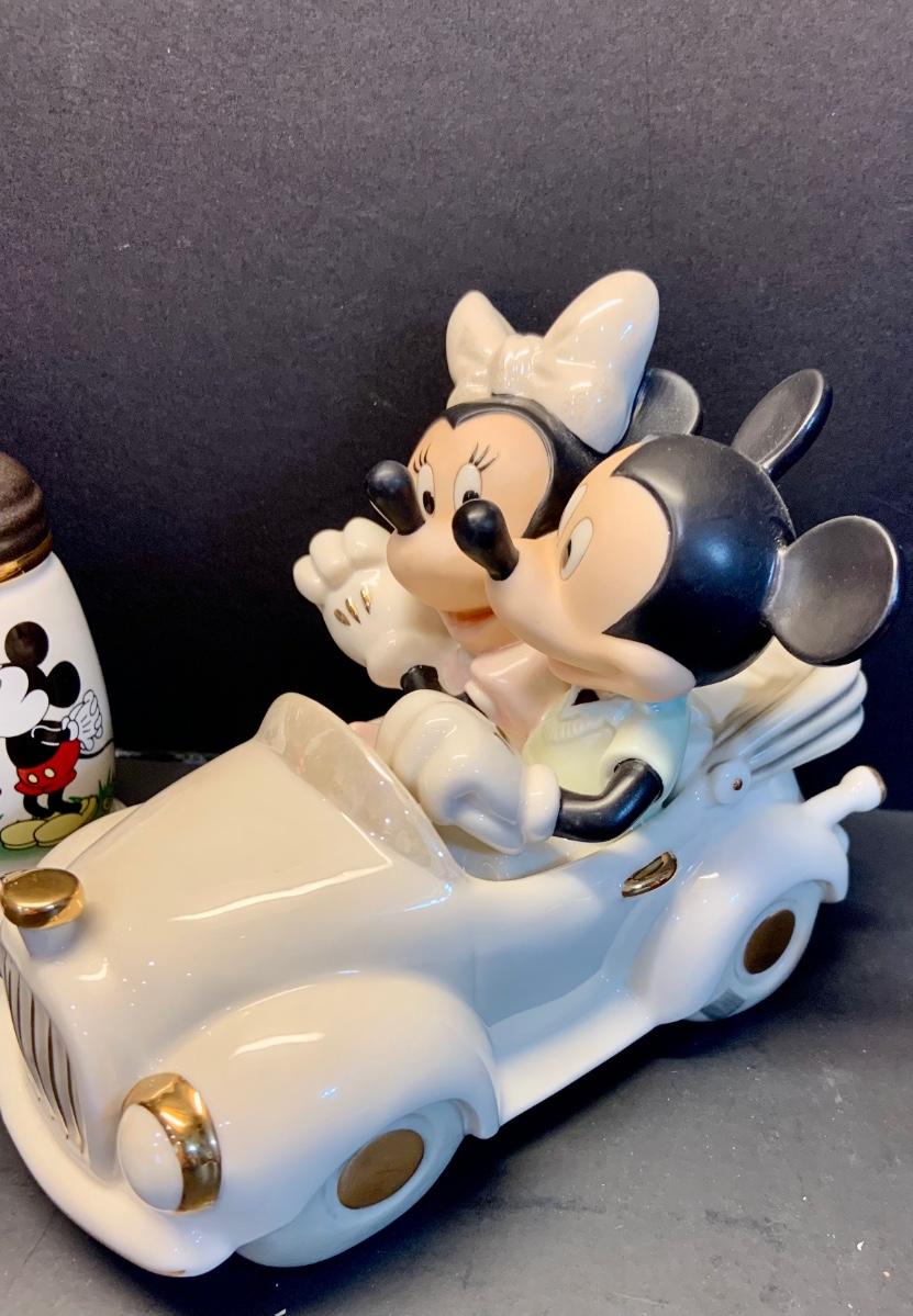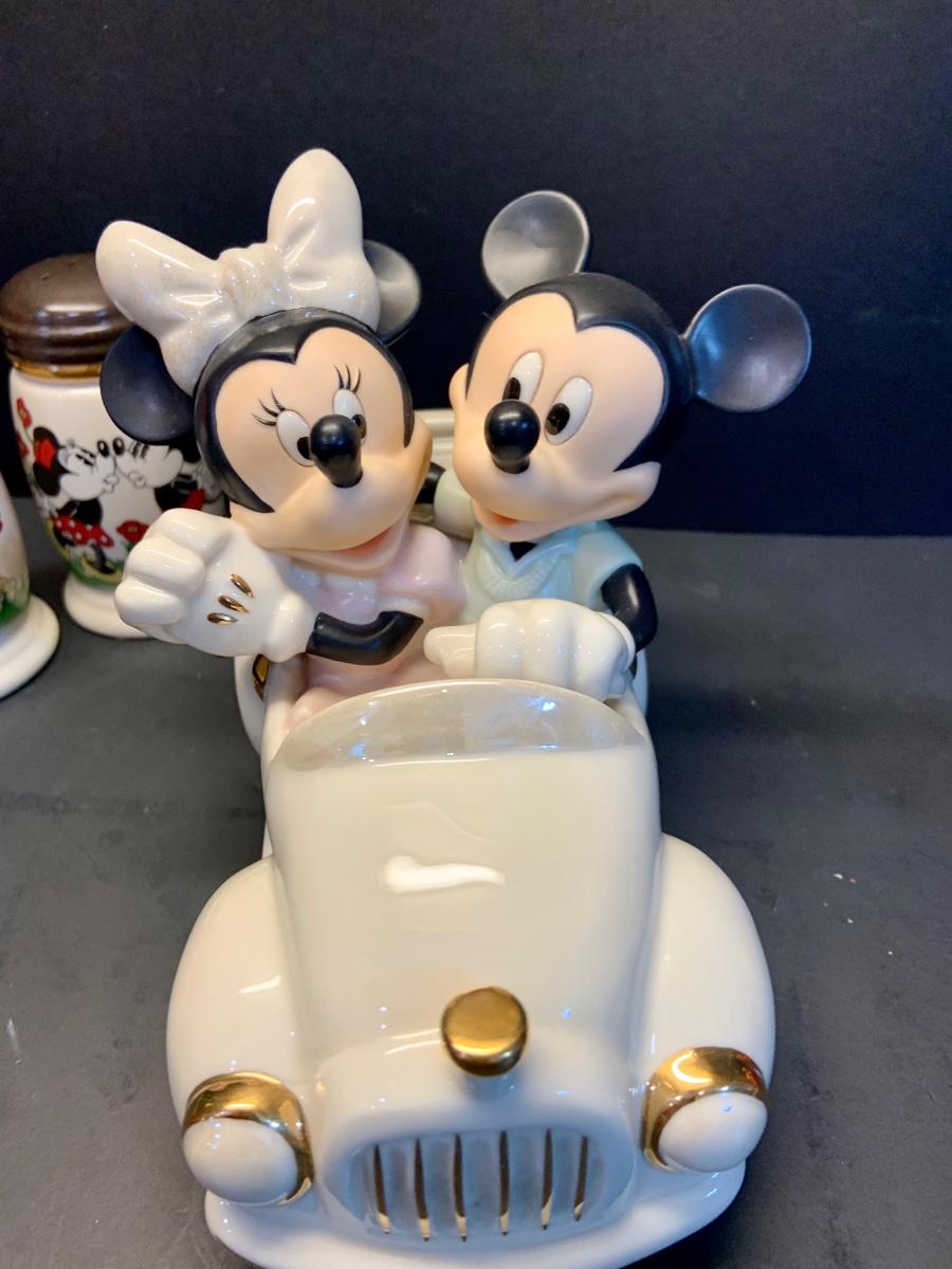 LOT:47G: Lenox - Disney Showcase Mickey's Moonlight Drive Figure, Lenox Mickey and Minnie Salt & Pepper Shakers and a Pluto Enamel Trinket Box