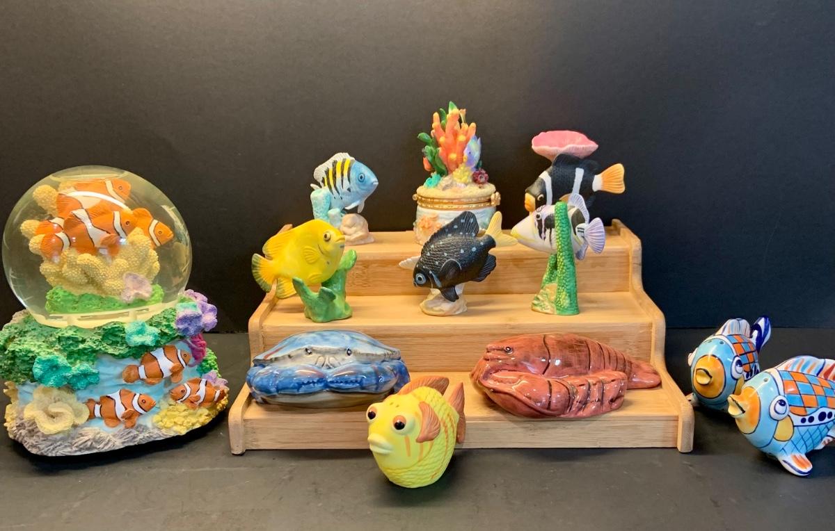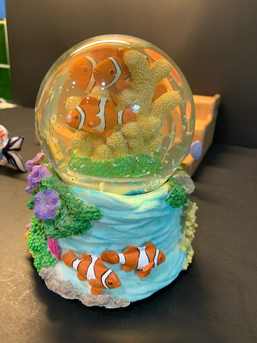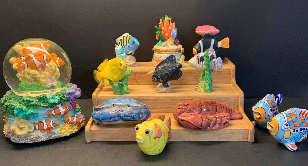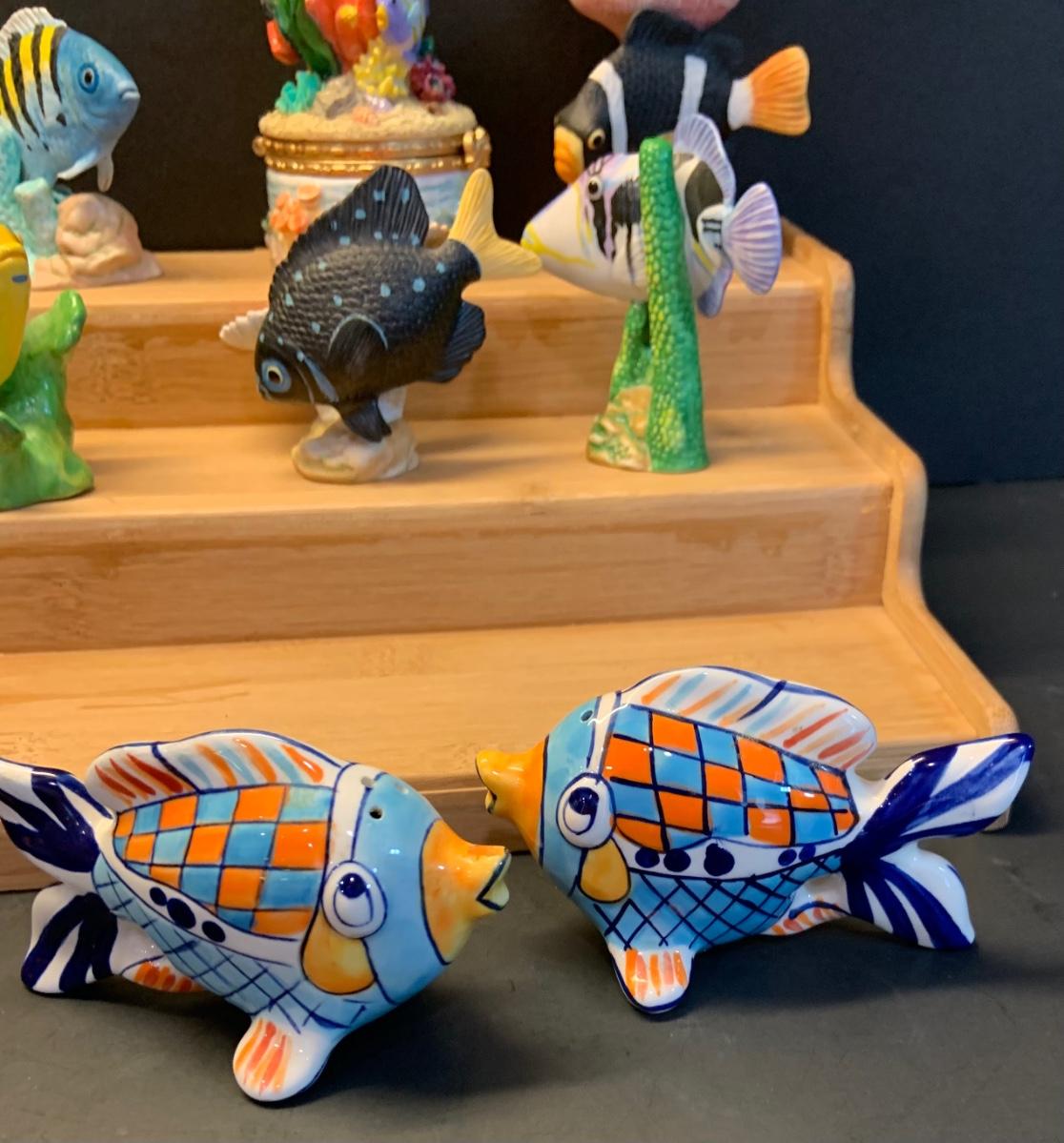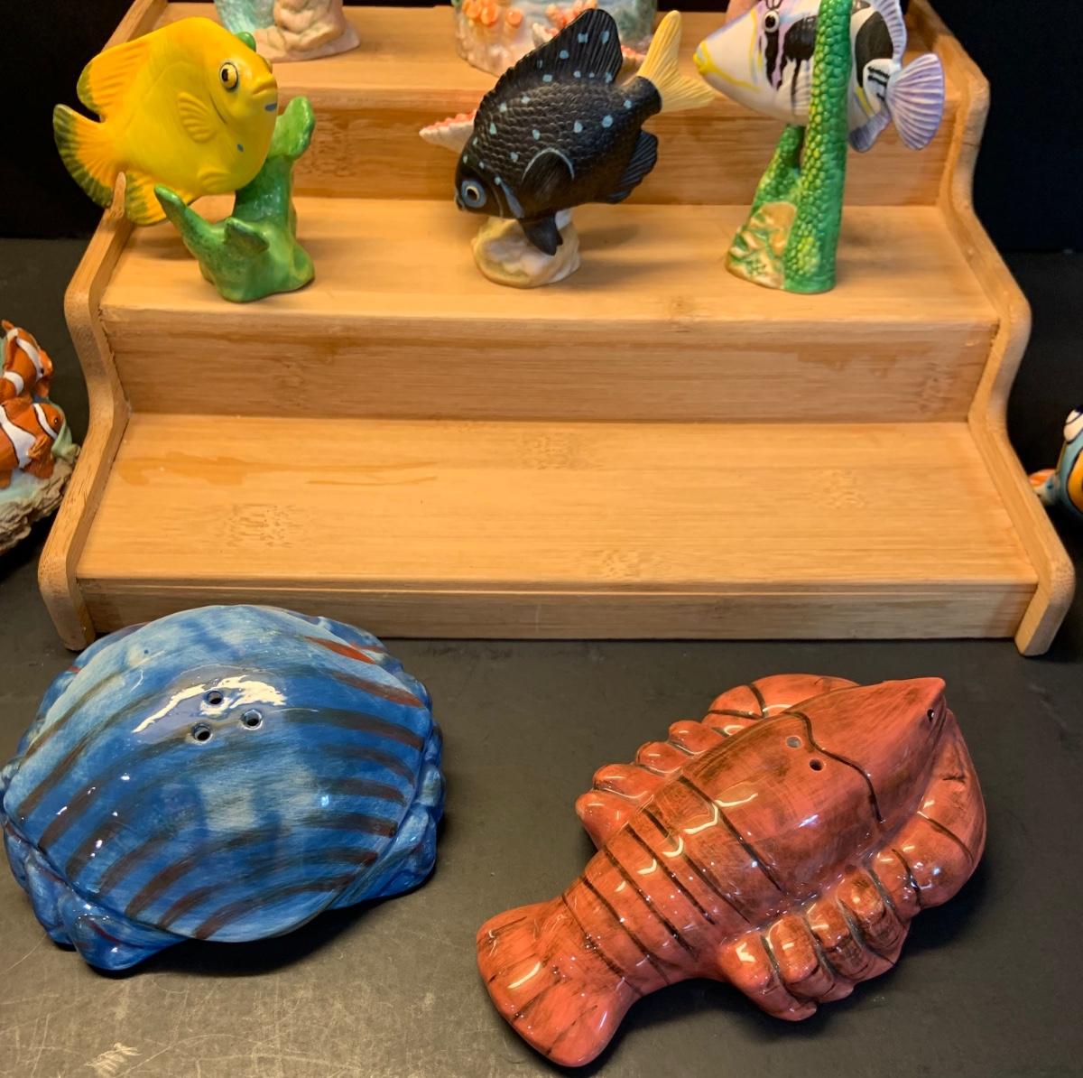 LOT:49: Under the Sea Collection of Tropical Fish Figures, Fish Salt & Pepper Shakers, a Musical Water Globe and More