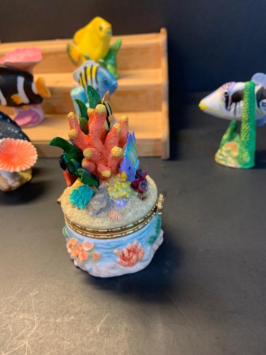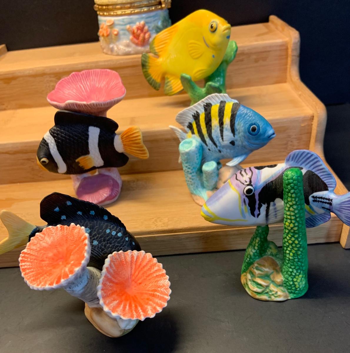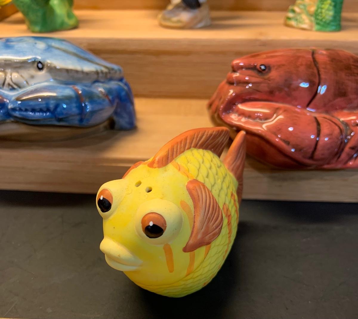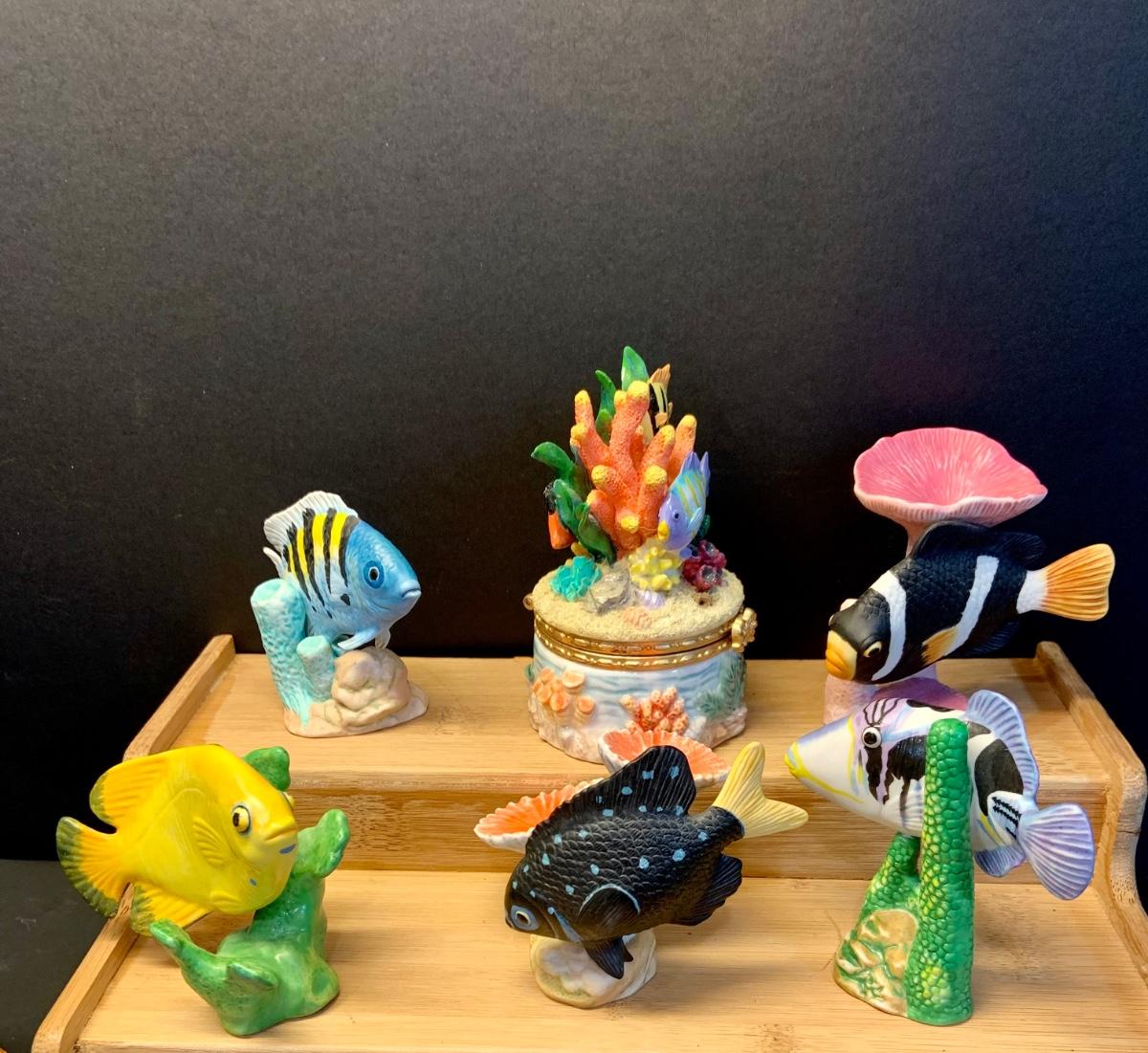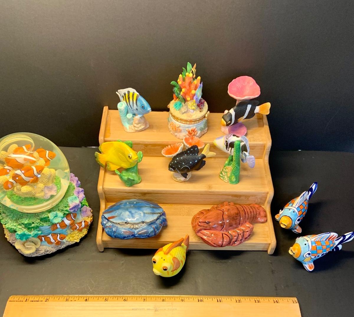 LOT:49: Under the Sea Collection of Tropical Fish Figures, Fish Salt & Pepper Shakers, a Musical Water Globe and More