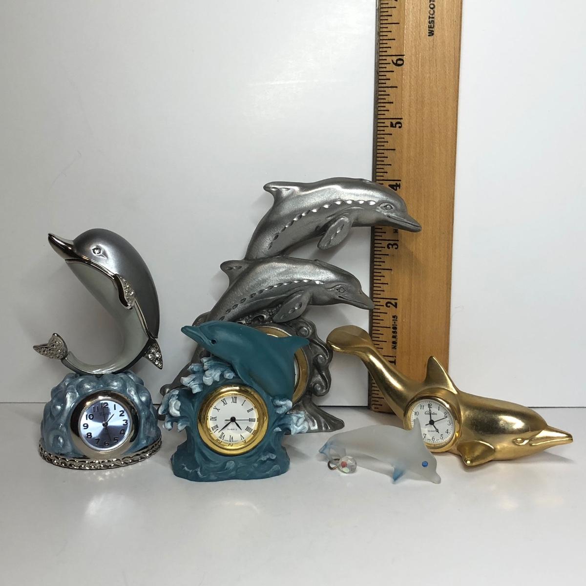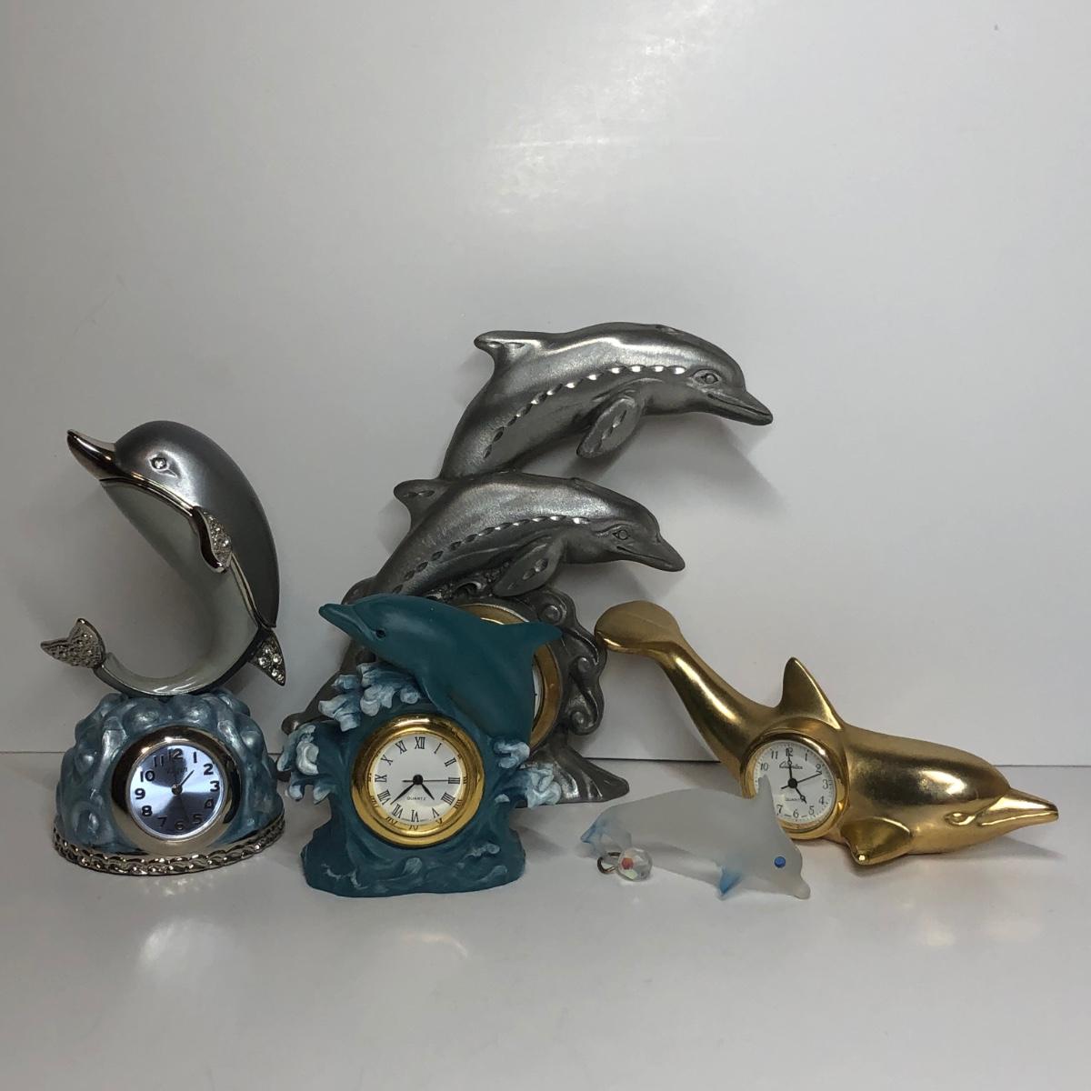 LOT 54M: Miniature Dolphin Clocks & Glass Dolphin