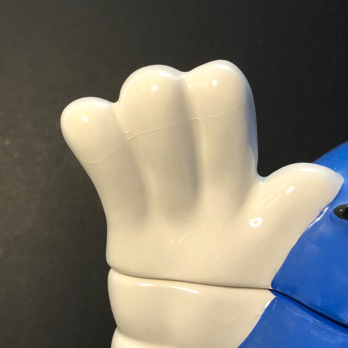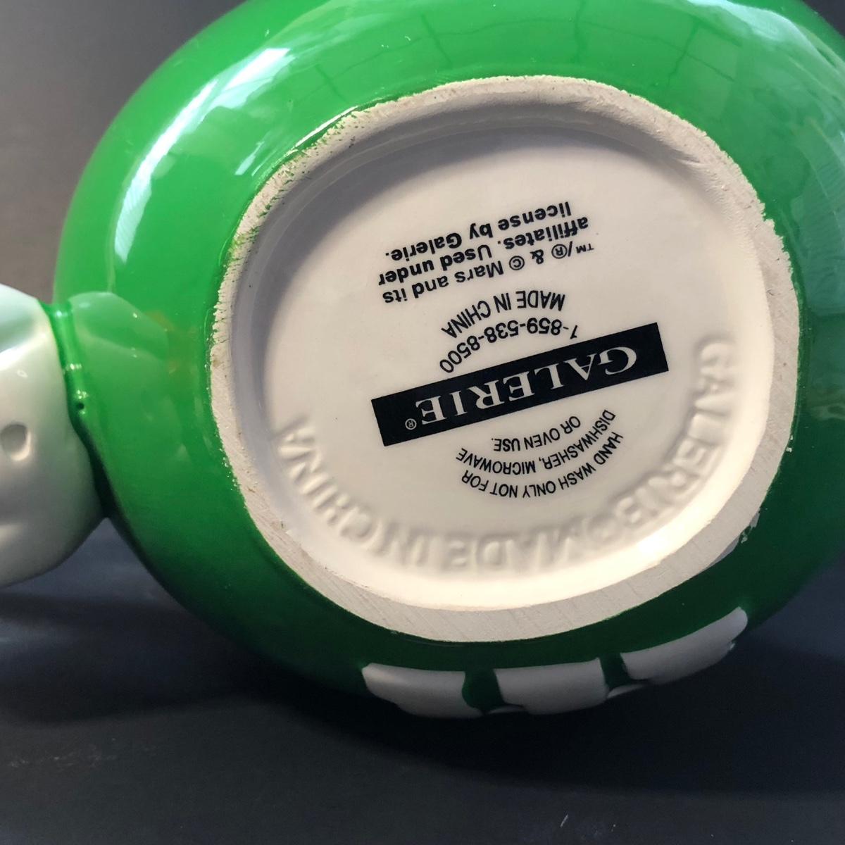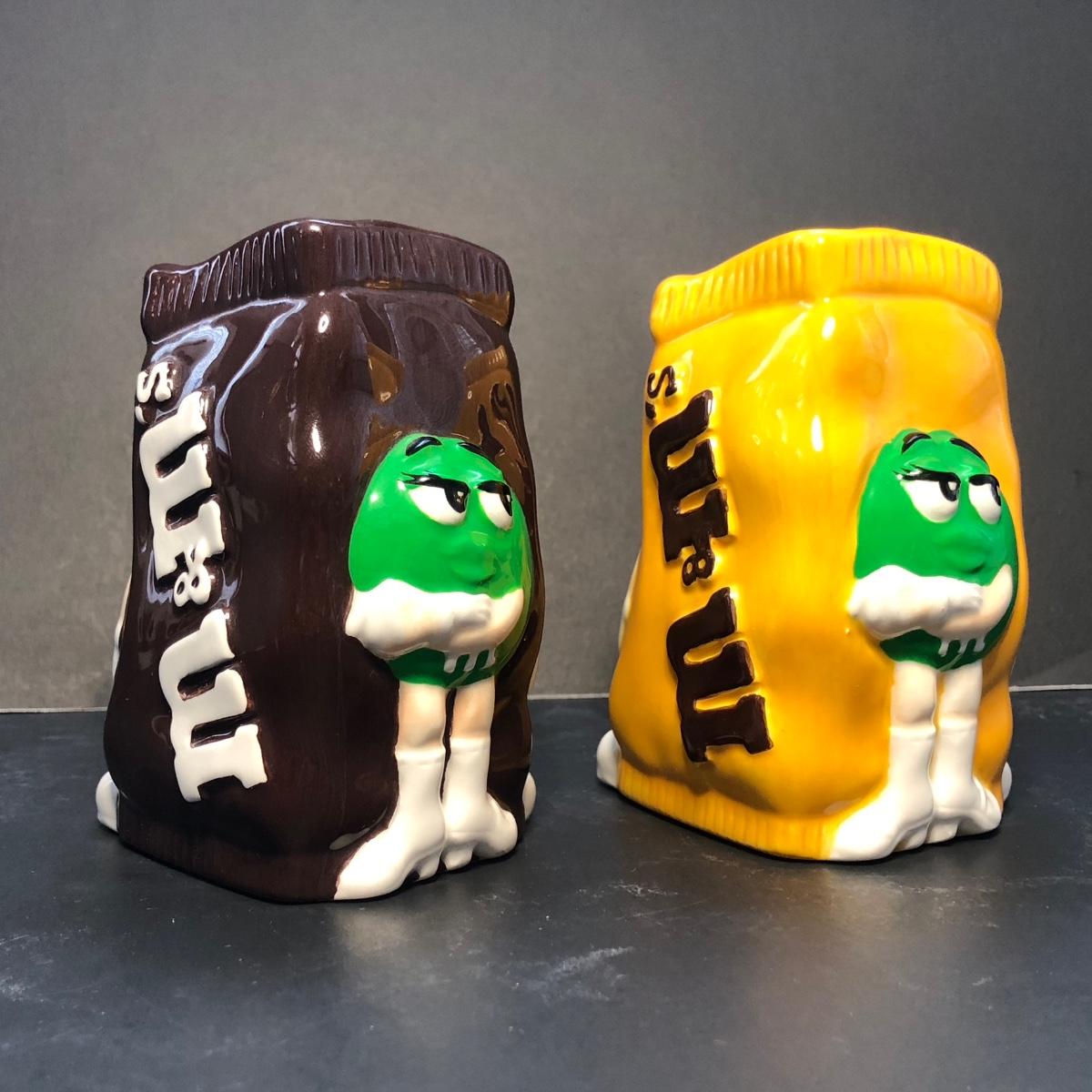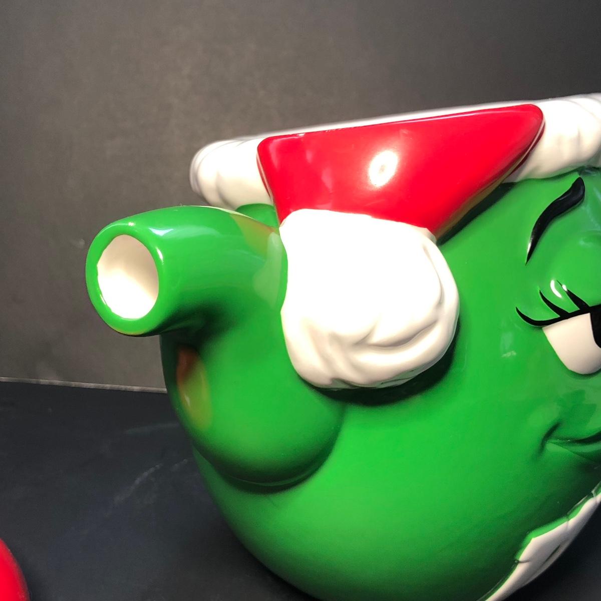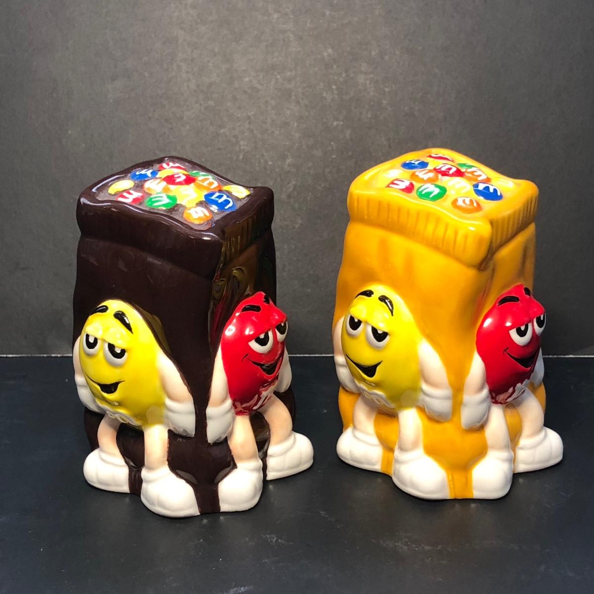 Includes a tea pot of the green M&M with a Santa hat, a cookie jar of the blue M&M, and a pair of S&P with the yellow and red M&M's on them.