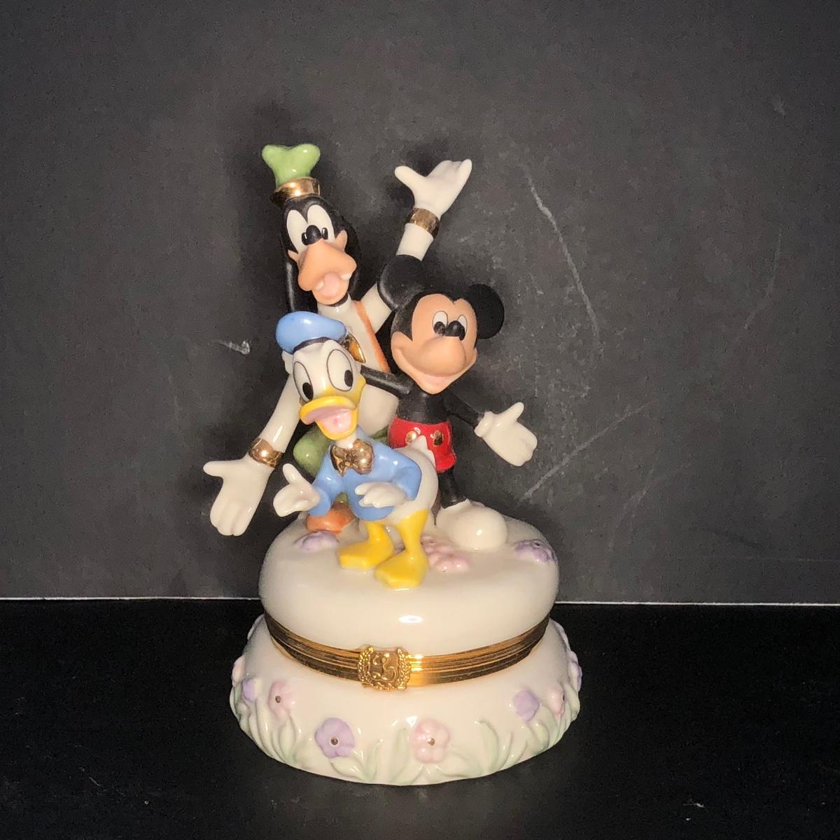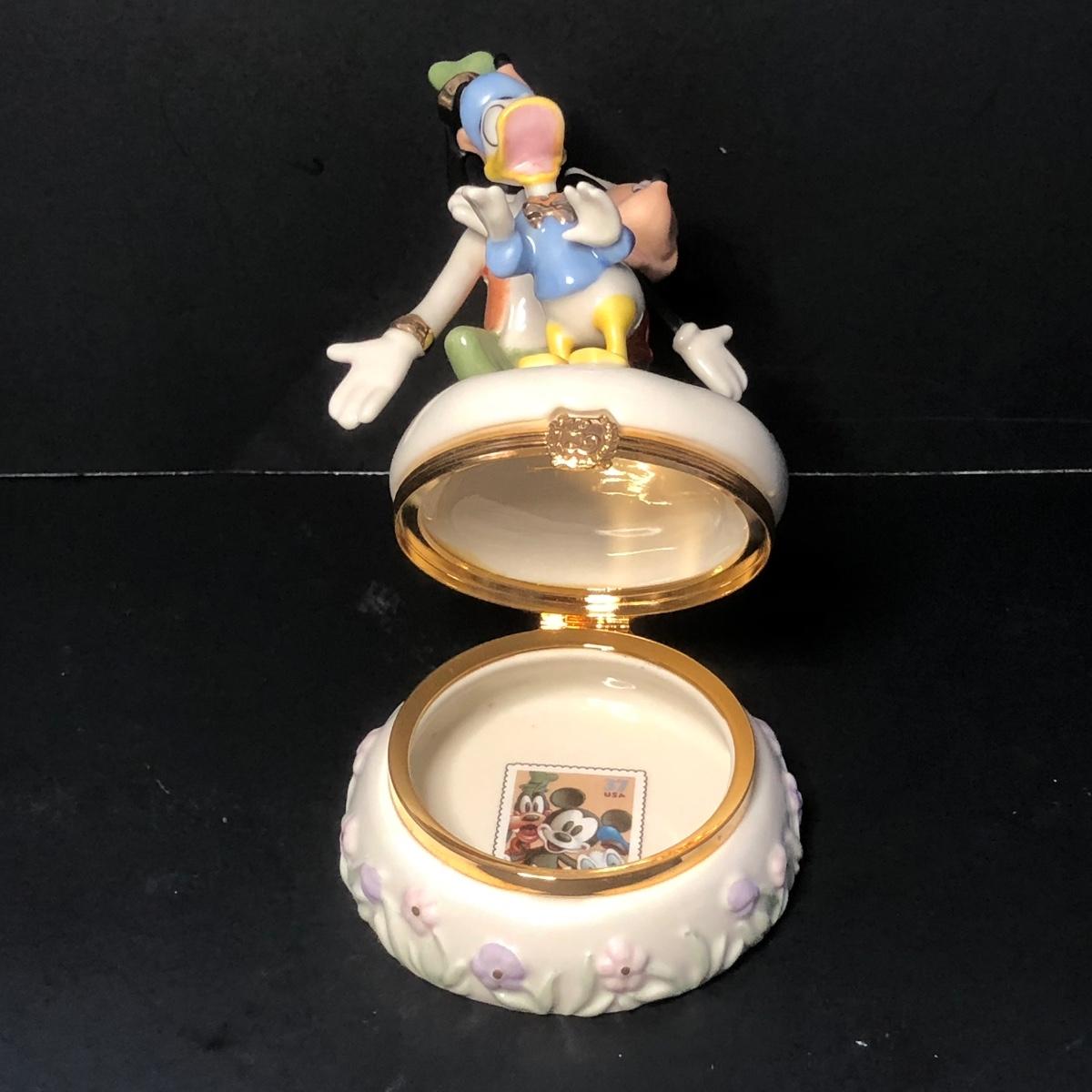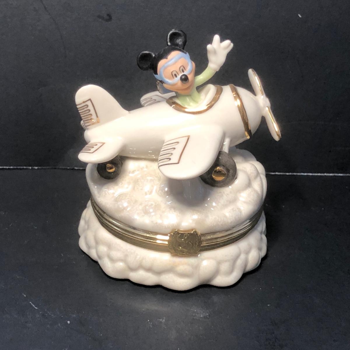 LOT 68M: Lenox Walt Disney - "Mickey Up at Bat," "Mickey & Friends Stamp Treasure Box," "Flying High Treasure Box," & Showcase Collection Sneezy Ornament