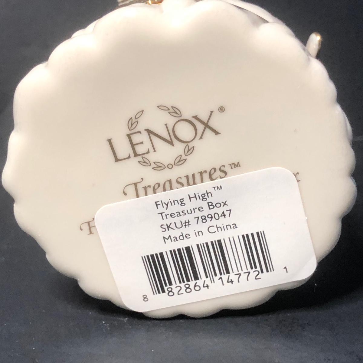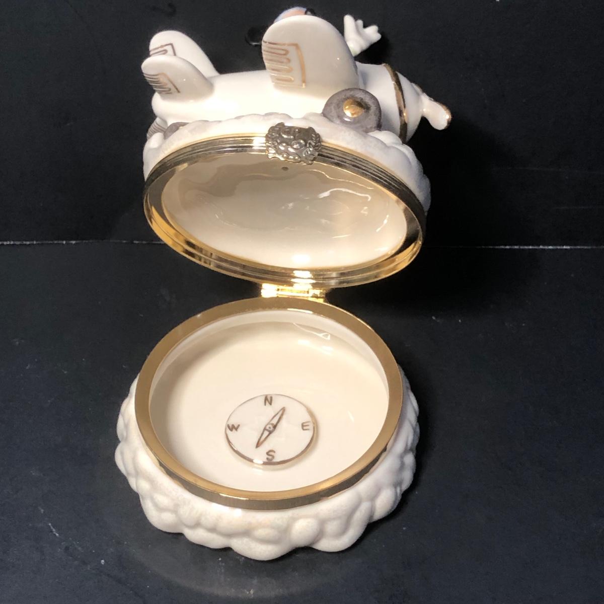 Four pieces of Lenox including one statue, one ornament, and two trinket boxes.