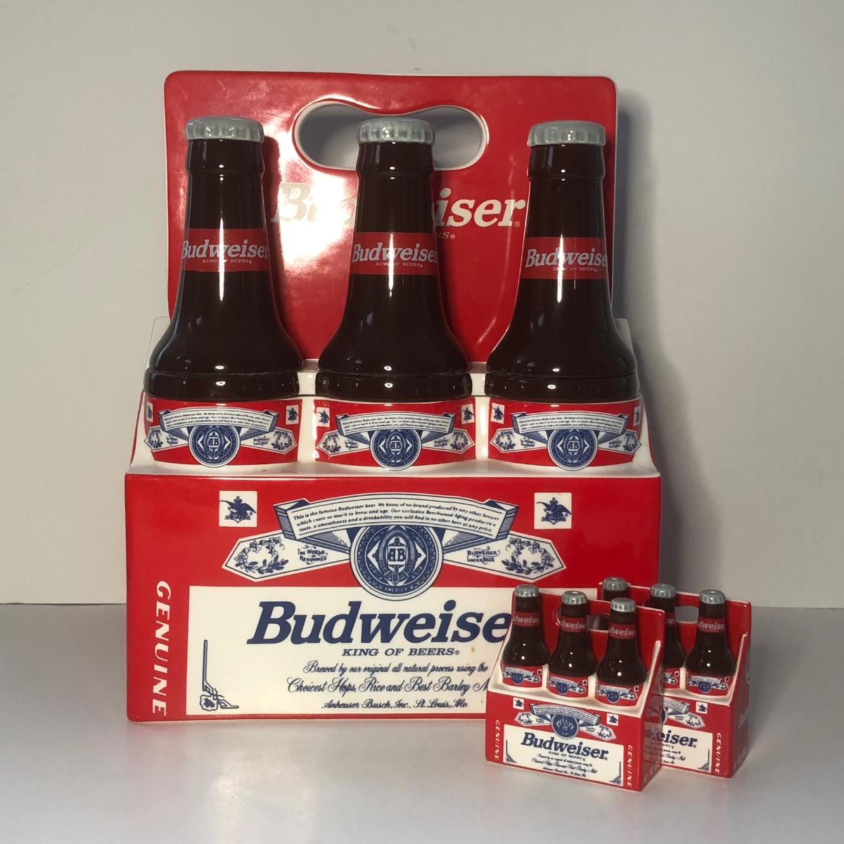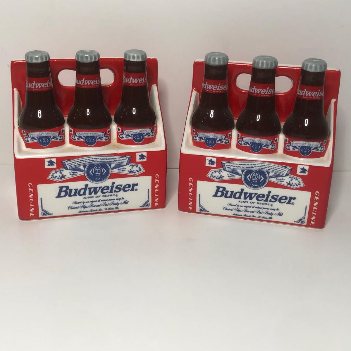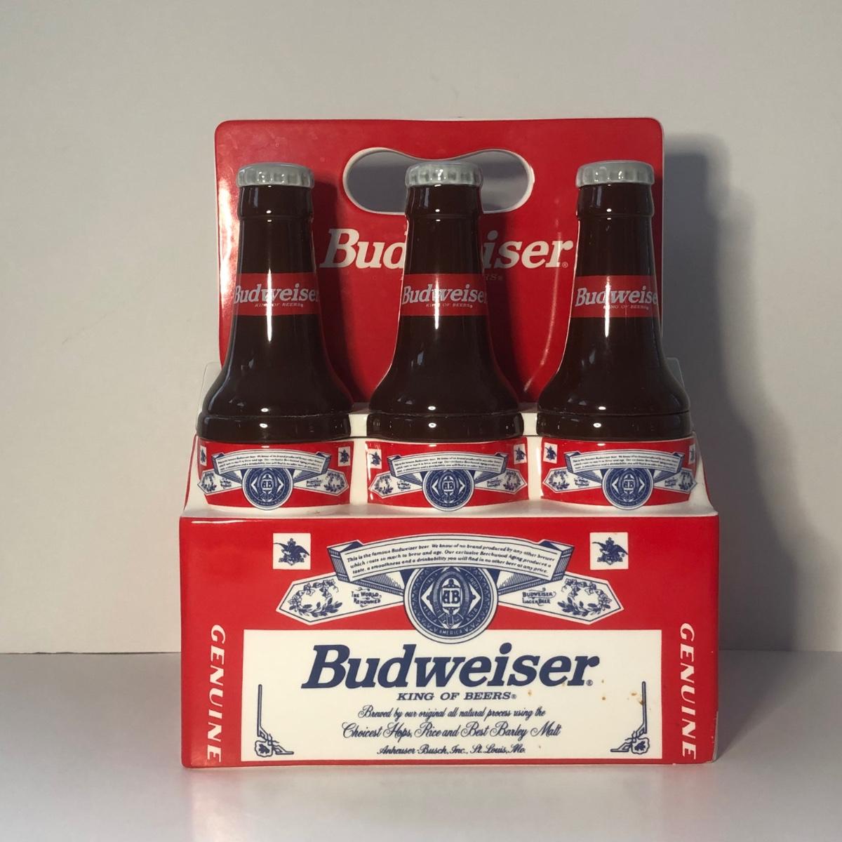 LOT 71M: 1998 America's Favorites Budweiser 6-Pack Cookie Jar, Salt & Pepper Shakers