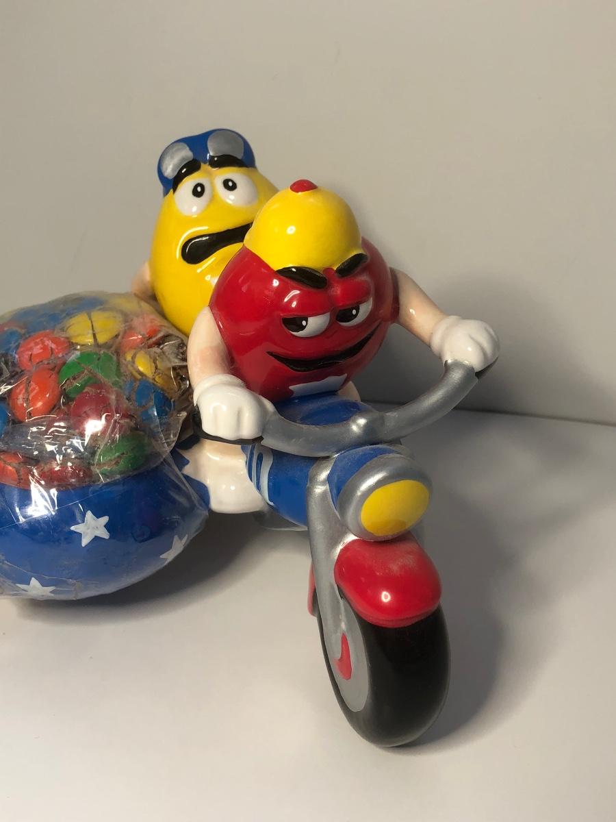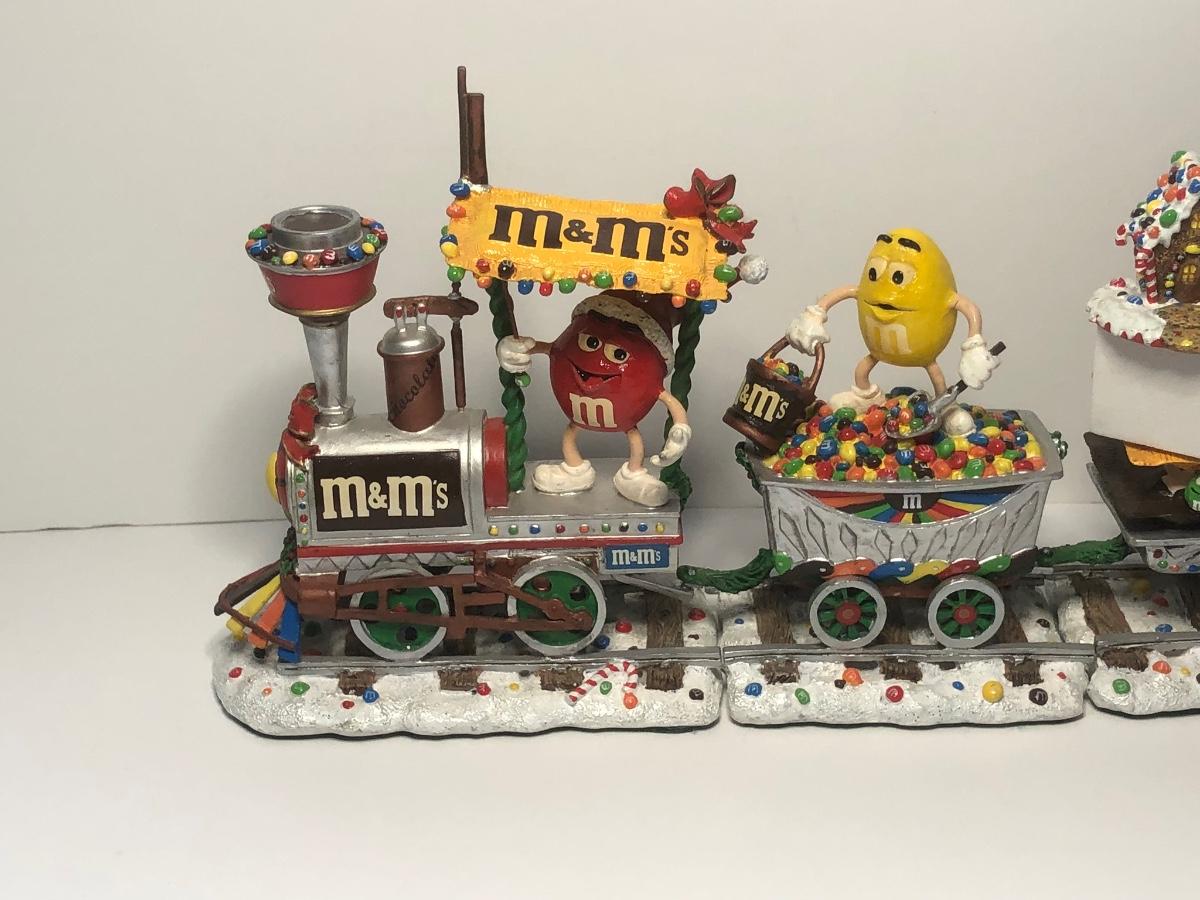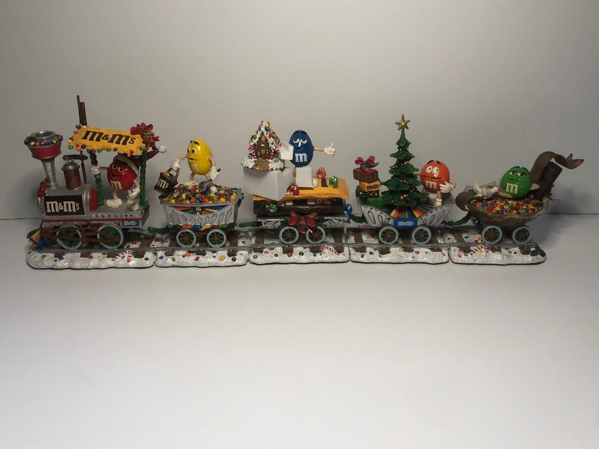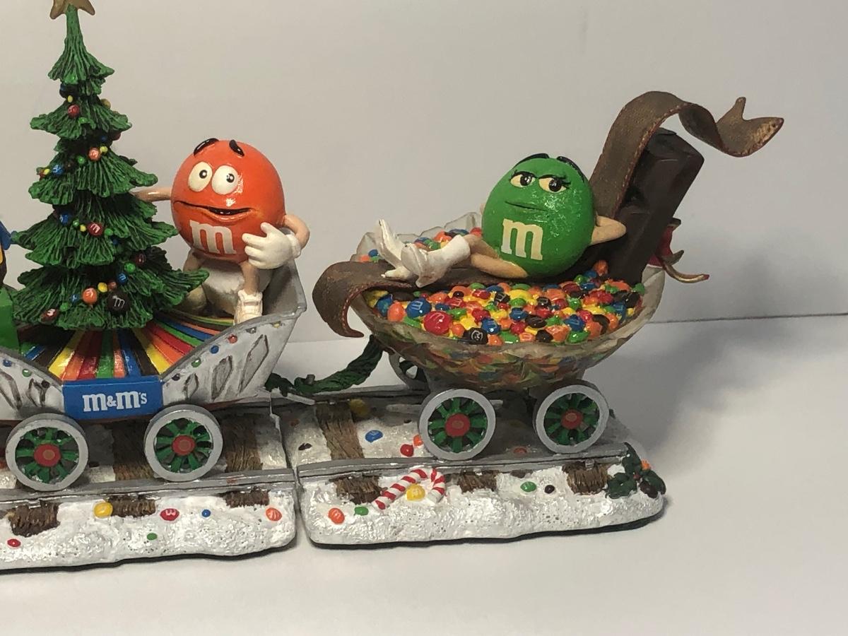 LOT 72M: Danbury Mint M&M's Christmas Train, Motorcycle w/ M&M's in Sidecar, M&M Transformers Ornaments, Tiger & Panda Plastic Containers