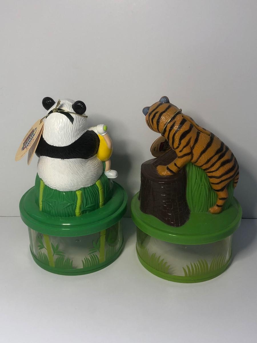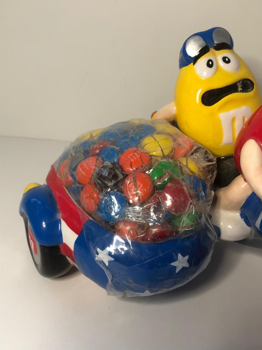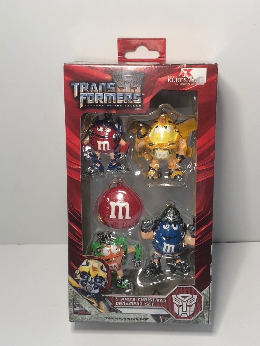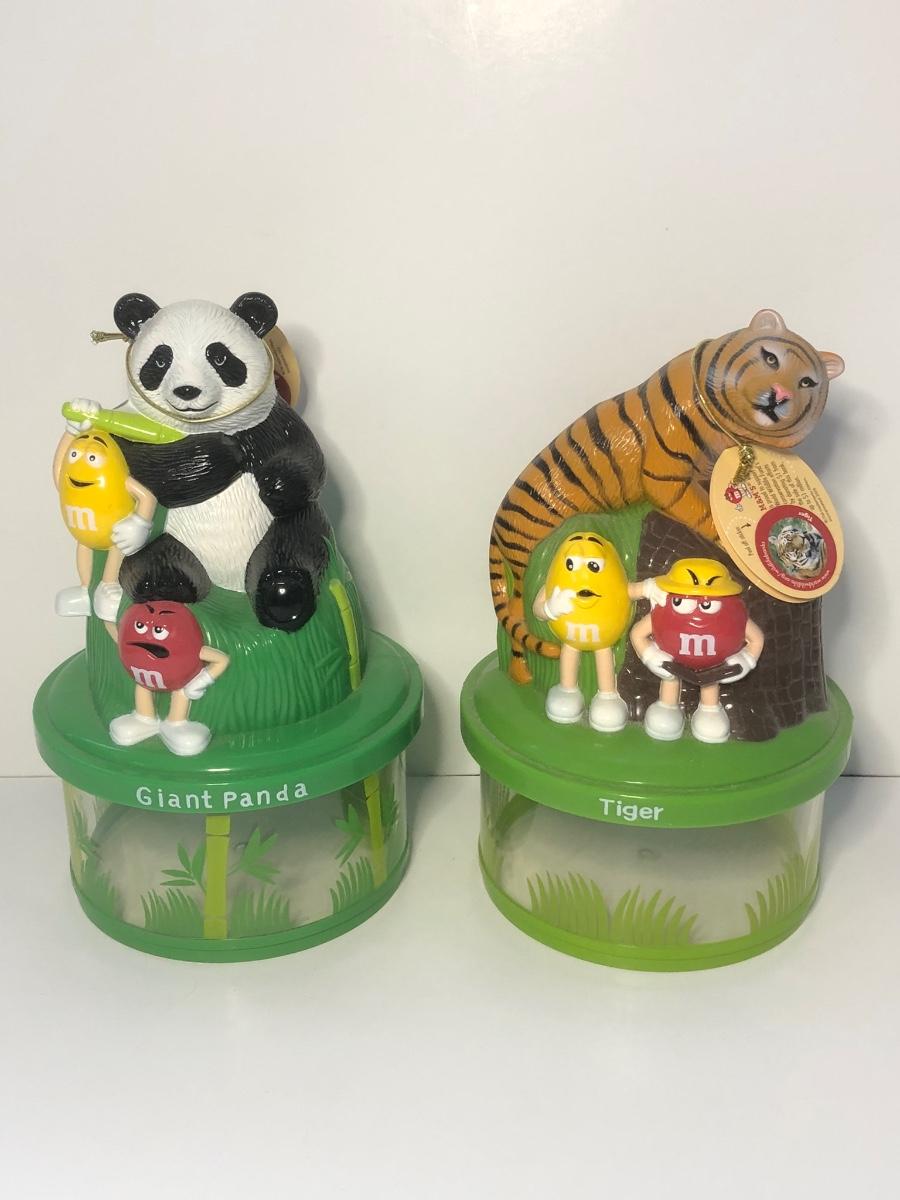 LOT 72M: Danbury Mint M&M's Christmas Train, Motorcycle w/ M&M's in Sidecar, M&M Transformers Ornaments, Tiger & Panda Plastic Containers