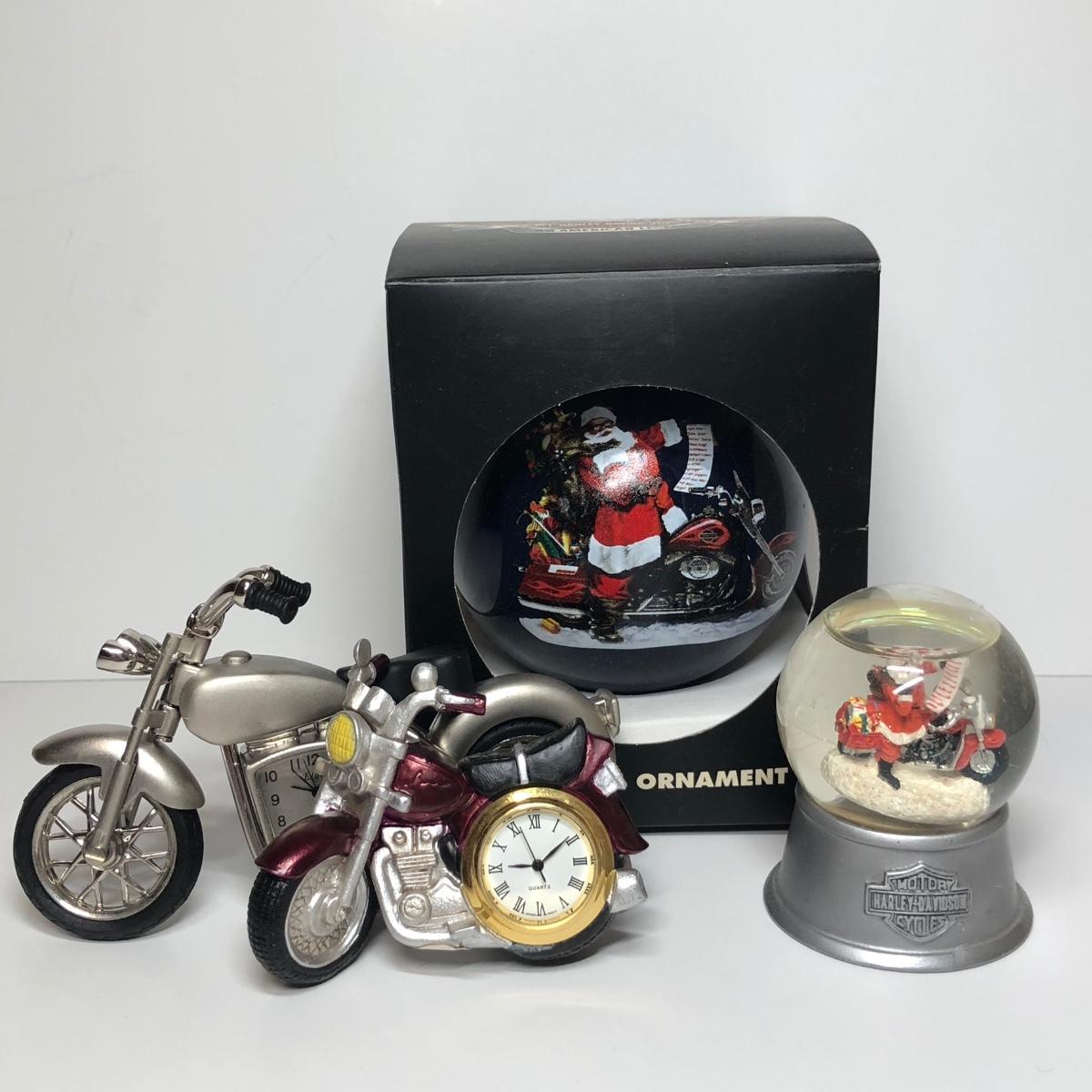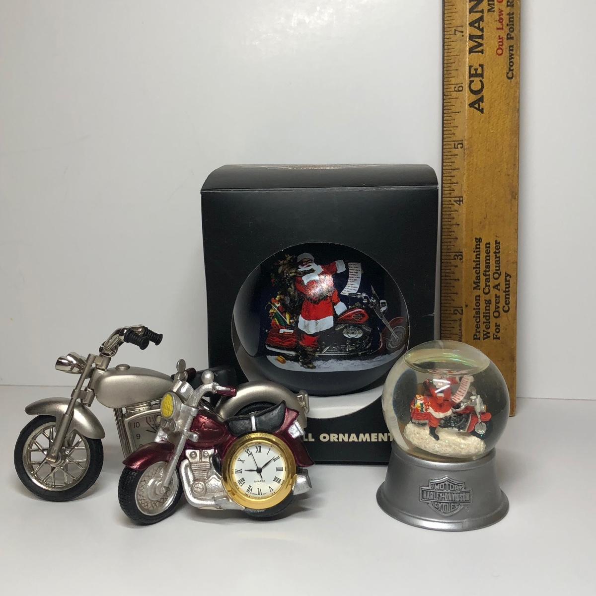 LOT 79M: Harley-Davidson Santa Water Globe, Santa Christmas Ornament, Miniature Motorcycle Clocks